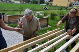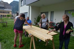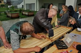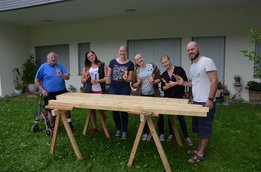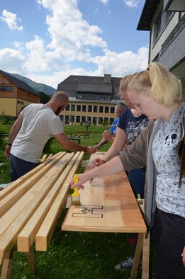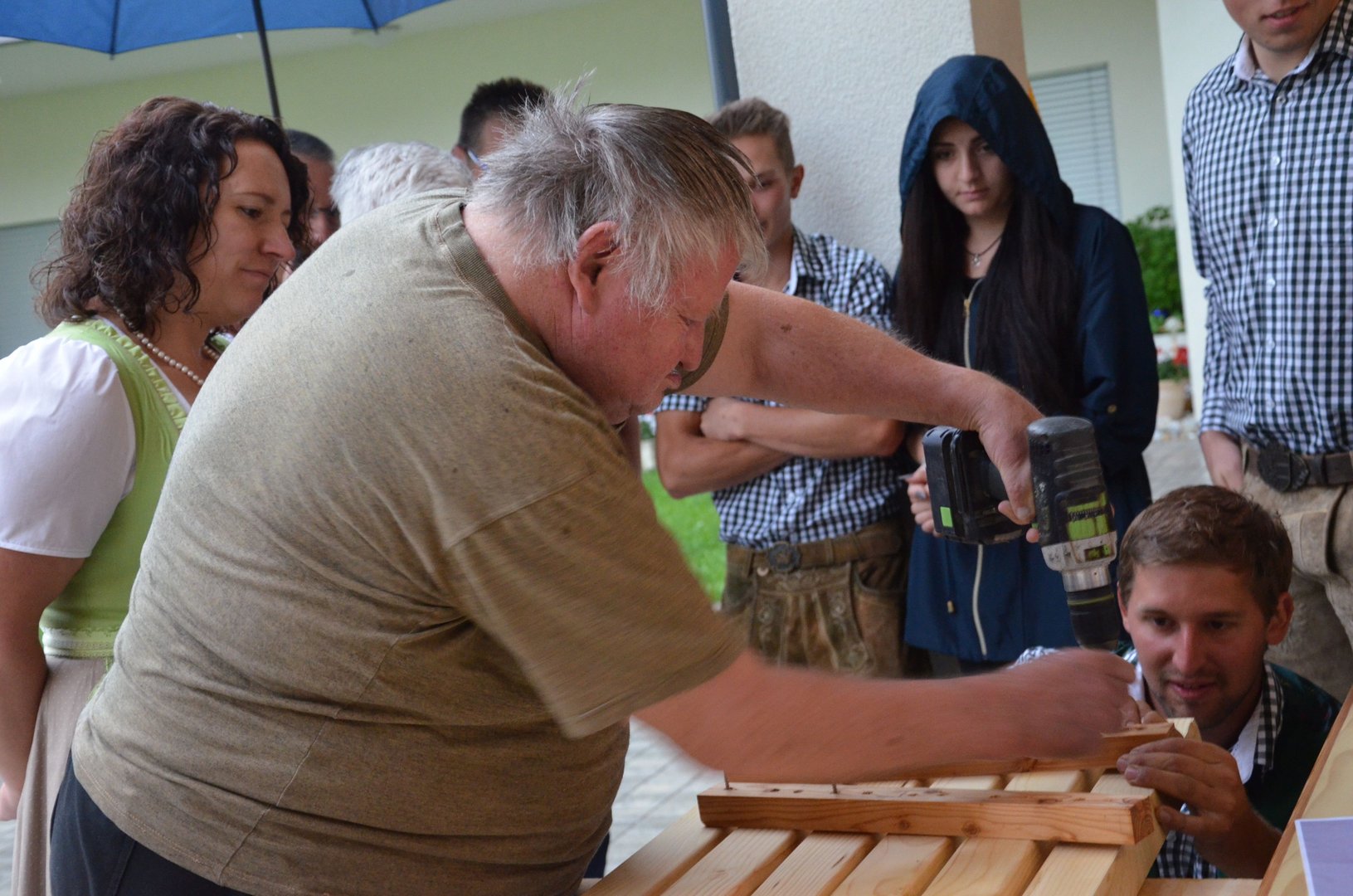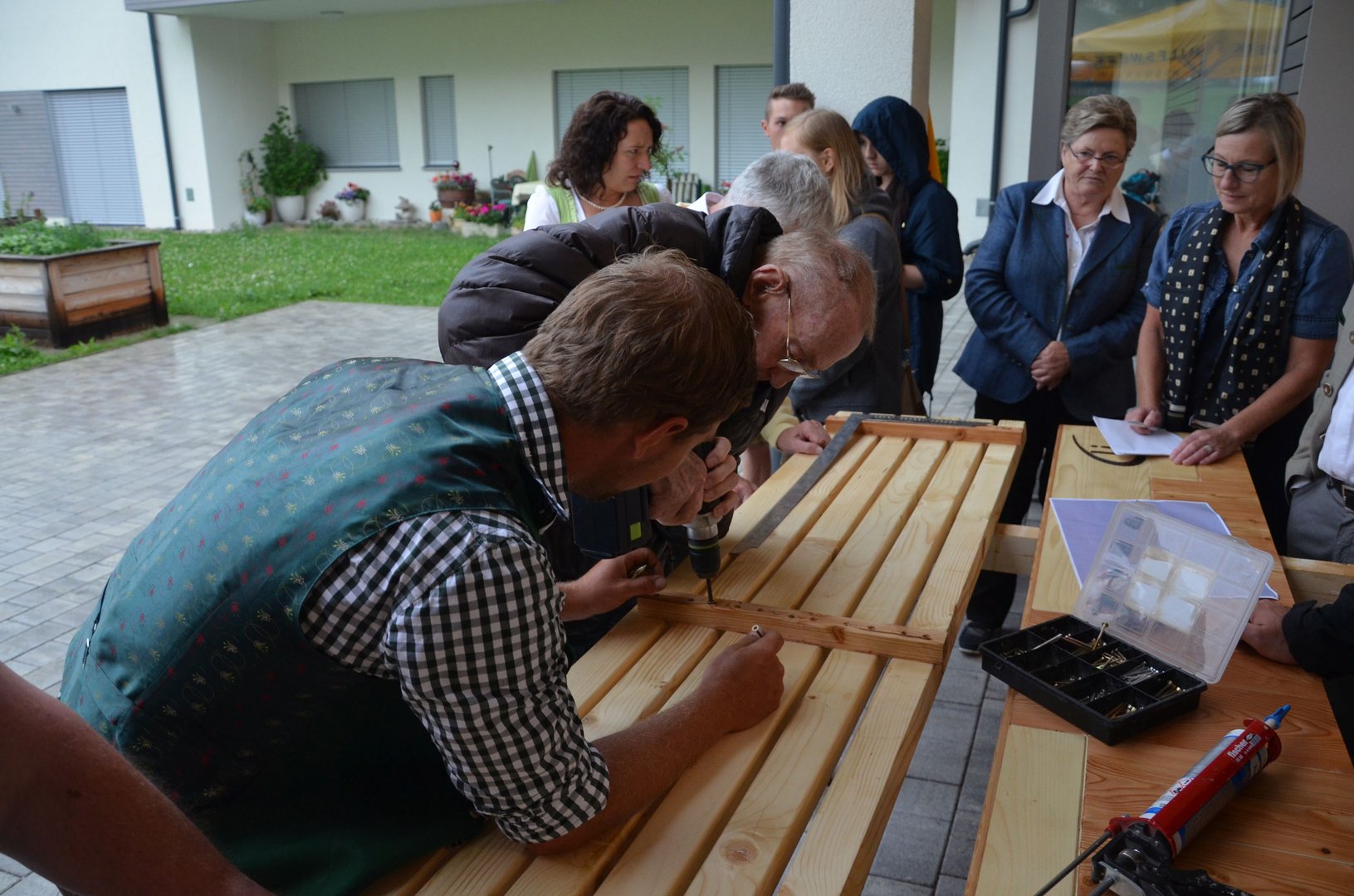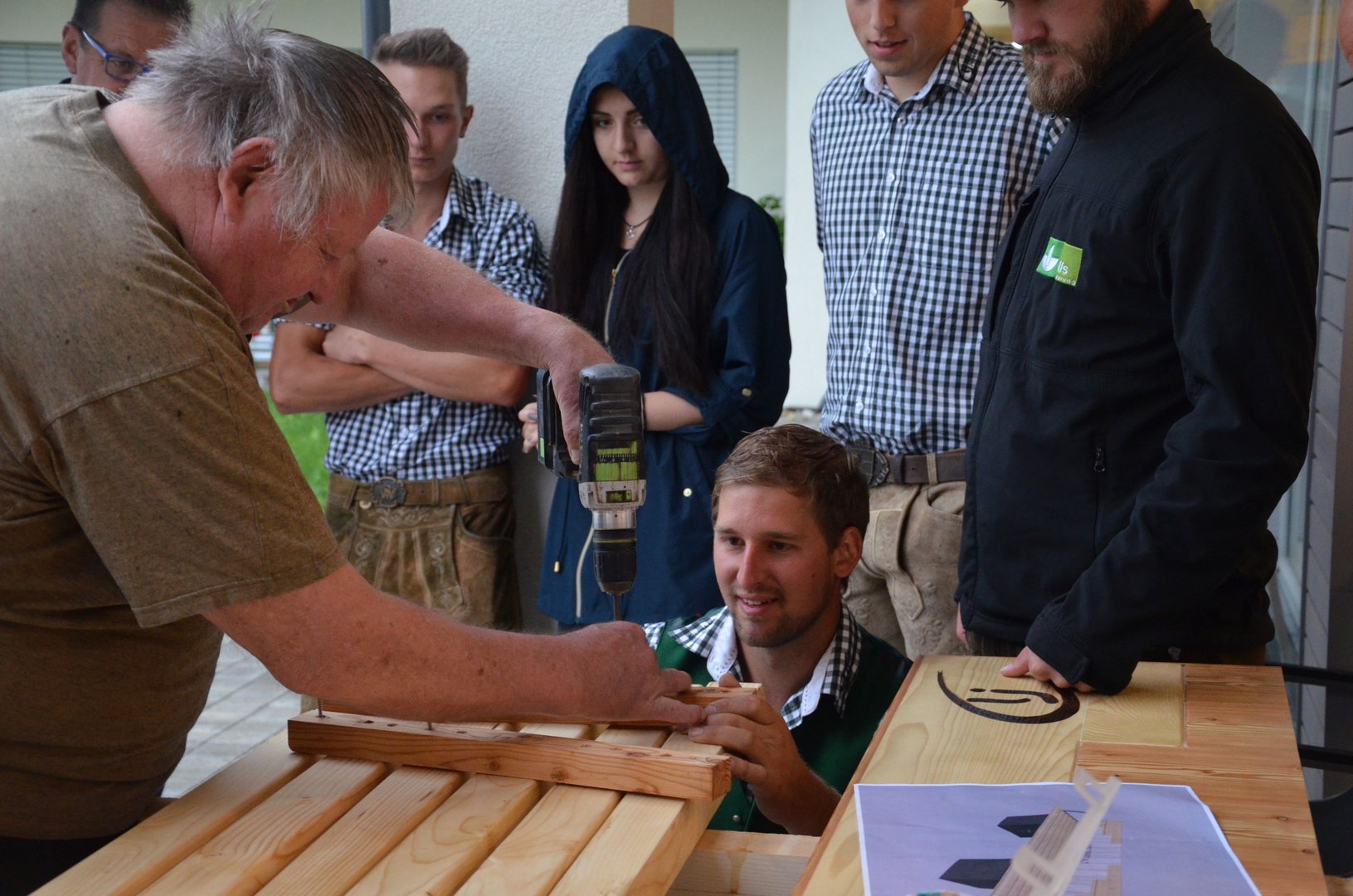 Den Startschuss zum Bezirksprojekt machte am vergangenen Samstag die Landjugend Mauterndorf-Tweng. Gemeinsam mit dem Salzburger Hilfswerk und den Bewohnern der Hausgemeinschaft wurde das Bankerl vor dem Dr.-Eugen-Bruning-Haus aufgestellt. Nach einem Lokalaugenschein planten die Mauterndorfer Landjugendmitglieder unter der Leitung von Christoph Gruber und Maria Schitter ihr Bankerl und setzten ihre Ideen sofort in die Tat um. Unterstützt wurden sie in der Ausführungsphase durch örtliche Firmen Tischlerei Norbert Pirker, Fliesengruber und Jacklbauer, welche das Material sponserten und Holzbau Mauterndorf, welche die Räumlichkeiten zur Bearbeitung zur Verfügung stellten. Am 25. Juni wurde die Bank zusammen mit den Bewohnern des Dr.-Eugen-Bruning-Hauses, Vizebürgermeister Ing. Herbert Eßl, Matthias Wind, Bezirksleiter der Landjugend Lungau, Mitwirkenden des Hilfswerkes und der Landjugend Mauterndorf-Tweng zusammengebaut und eingeweiht.