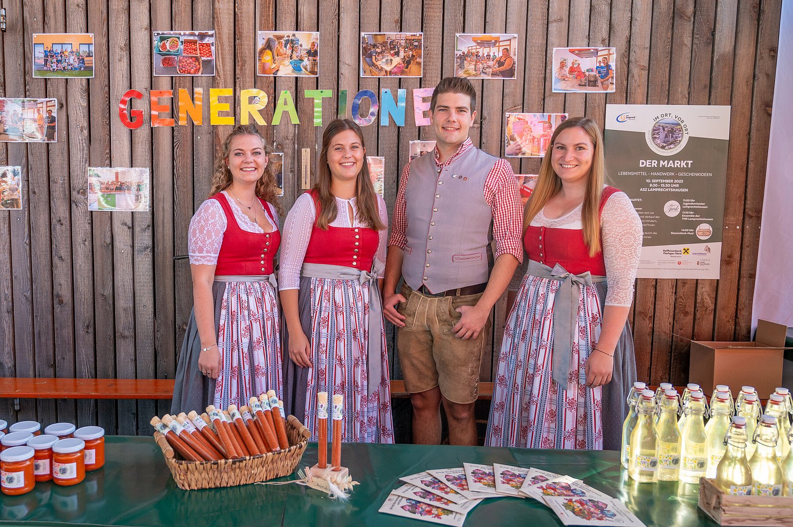 Die hergestellten Produkte konnte man beim Markt am 10. September 2023 gegen freiwillige Spenden erwerben. Der Markt bildete einen krönenden Abschluss des Projekts. Er bot den Lamprechtshausener Produzent*innen die Gelegenheit, ihre Produkte zu zeigen und anzubieten. Zwanzig verschiedene Aussteller*innen nutzen so die Chance, das Interesse neuer Kund*innen zu wecken. Der Landjugend Lamprechtshausen war es wichtig, eine Veranstaltung zu organisieren, die die Gäste zum Zusammenkommen, Ratschen und Gustieren einlädt. Musikalisch umrahmt wurde das Ganze vom Jugendorchester, einem Ensemble der TMK Lamprechtshausen, sowie der Stammtisch-Musi. Ohne der Mithilfe aller Landjugendmitglieder, sowie der Bäuerinnen, welche die Besucher*innen mit Krapfen und Pofesen versorgten, wäre die Verköstigung natürlich auch nicht möglich gewesen.