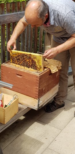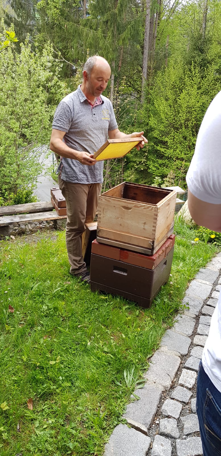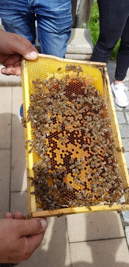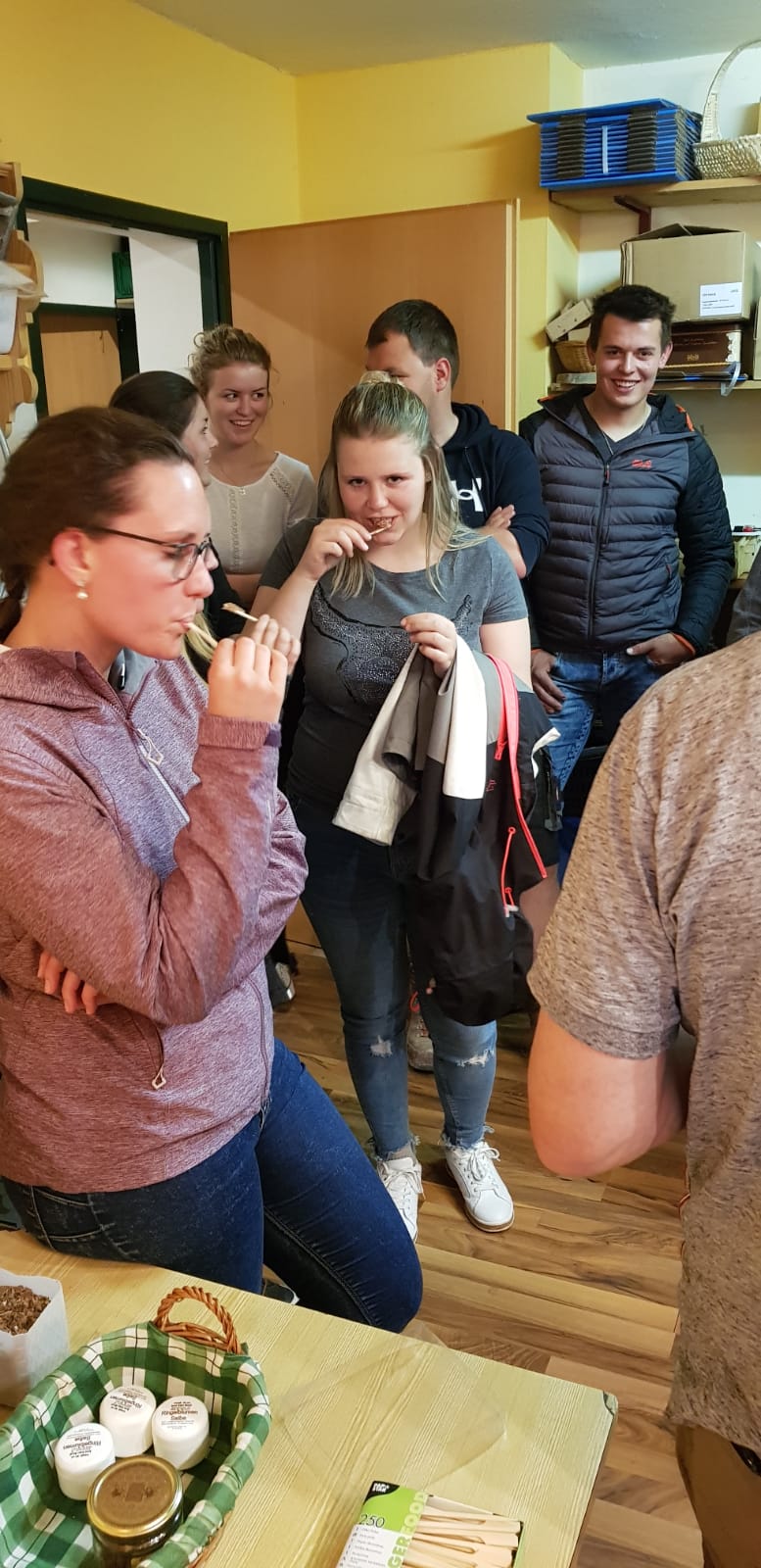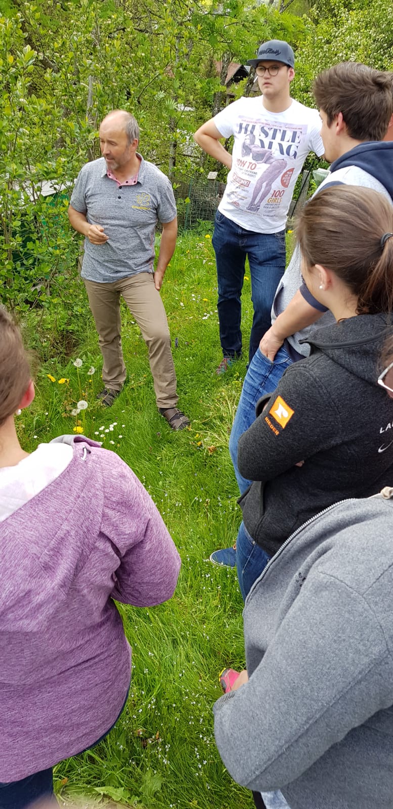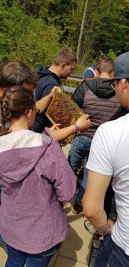 Am Samstag, den 11. Mai 2019 haben sich 20 interessierte Jugendliche der Landjugend Bezirk Pinzgau auf den Weg nach St. Georgen/Pzg. gemacht. Ziel waren die Bienenstöcke des Sunnseitimkers Franz Eder. St. Georgen/Pzg. Der als Sunnseitimker bekannte Franz Eder, beschäftigt sich schon seit rund 40 Jahren mit Bienen. Er besitzt 40 Stöcke mit Carnica Bienen, aufgeteilt auf drei Standorte. Sein Wissen gibt er im Unterricht an der Landwirtschaftlichen Fachschule Bruck weiter sowie bei verschiedenen Kursen. Da der Trend zur Haltung von Bienen derzeit ein Hoch erlebt, hat sich auch die Landjugend Bezirk Pinzgau für einen Kurs entschieden. Der Einladung sind zahlreiche Mitglieder gefolgt. „Ich habe erst vor kurzem mit dem Imkern begonnen und habe bereits ein paar Bienenstöcke. Von erfahrenen Imkern wie Franz Eder kann man einiges lernen und sich viele Tipps und Tricks holen“, erzählt Landesobmann-Stv. und begeisterter Imker Michael Egger. Um einen Bienenstock optimal versorgen zu können ist es wichtig, die grundlegenden Abläufe zu verstehen. Das Bienenvolk unterliegt einem ständigen Wandel. Eine Sommer-Arbeitsbiene erreicht durchschnittlich ein Alter von 35 Tagen. In den „Hauptarbeitszeiten“, im Sommer, tummeln sich ca. 40.000 Bienen in einem Stock. Die Arbeiterinnen die im Bienenstock überwintern, leben dagegen um einiges länger. Sie werden erst im Spätsommer geboren und überwintern bis ins Frühjahr. Zu dieser Zeit ist es im Bienenstock mit nur rund 8.000 Bienen verhältnismäßig ruhig. Das Volk ist in dieser Jahreszeit anzahlmäßig am schwächsten. Eine zentrale Frage, die die Teilnehmer beschäftigte war, wie viel der heurige Winter den Bienen abverlangt hat. „Die Bienen haben den strengen Winter heuer überraschend gut überstanden. Sie haben nur sehr wenig vom angebotenen Futter gebraucht. Ein langer schöner Herbst und genügend selbstgesammelten Honig der ihnen zur Verfügung steht hat die Bienen unterstützt“, erklärt Eder. Auch die Veredelungen des „Sunnseitimkers“ wurden unter die Lupe genommen. Das vielfältige Sortiment lässt keine Wünsche offen. Diverse Honigsorten wie der bekannte Waldhonig oder Cremehonig sind neben speziellen Variationen mit Haselnüssen, Aroniaberen oder Salbei zu finden. Auch verschiedene Metsorten, Lippenpflege, Bienenwachswickel und Propolistropfen werden aus den Urprodukten der Bienen hergestellt. Ein besonderer Tipp vom Fachmann gegen Bienenstiche: Nie den Stachel gerade aus der Haut ziehen. Besser mit dem Fingernagel zur Seite „wischen“. So gelangt viel weniger Bienengift in die Wunde und es schwillt nicht so sehr an.