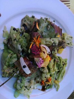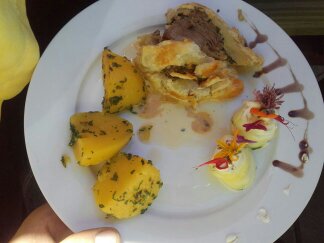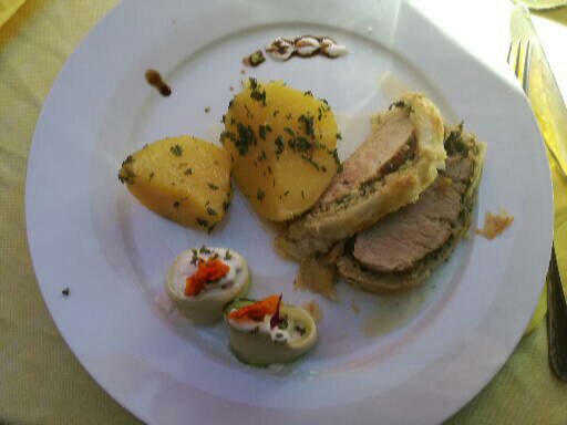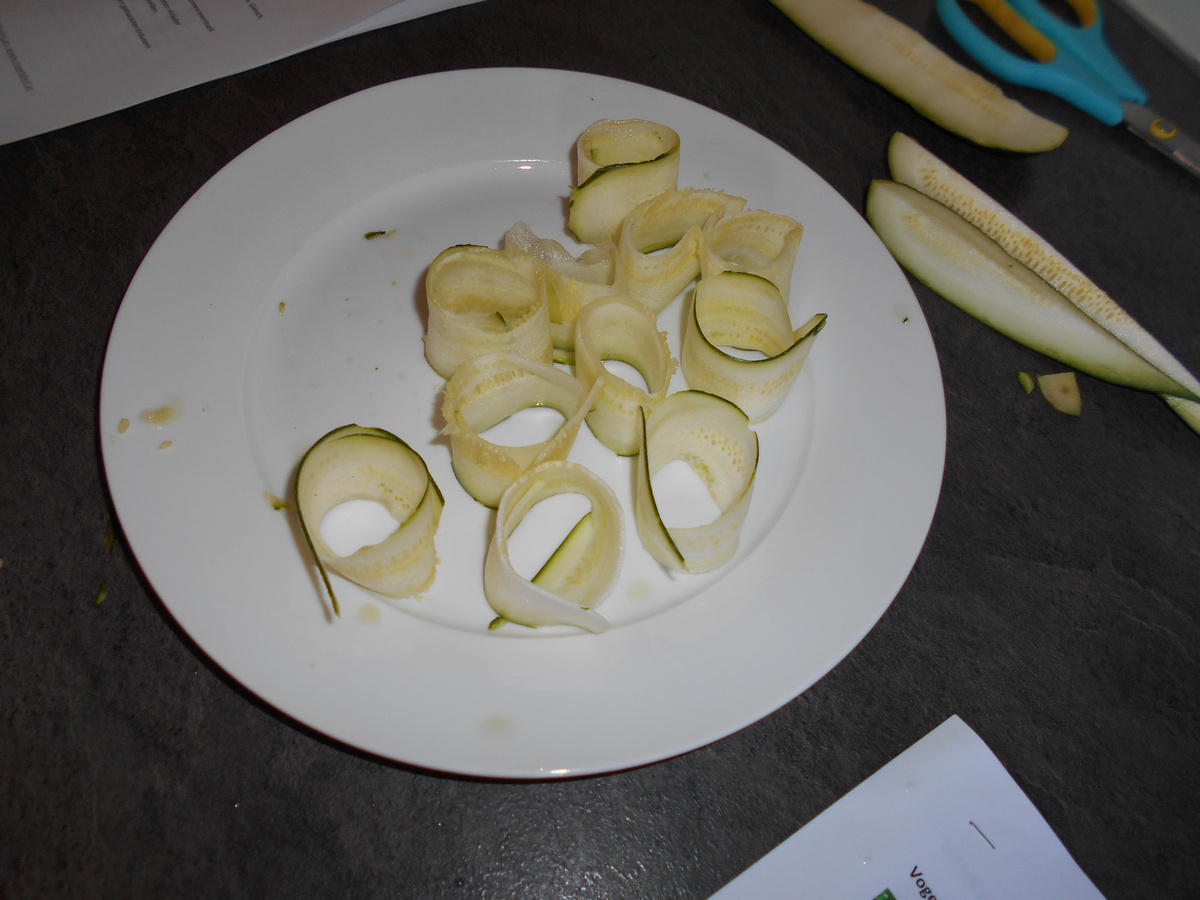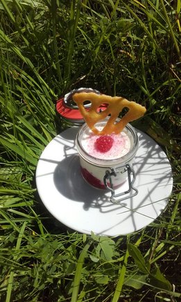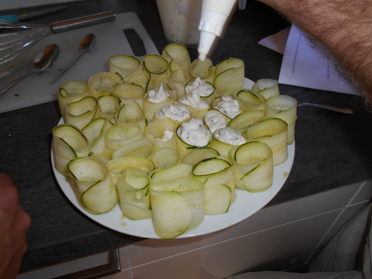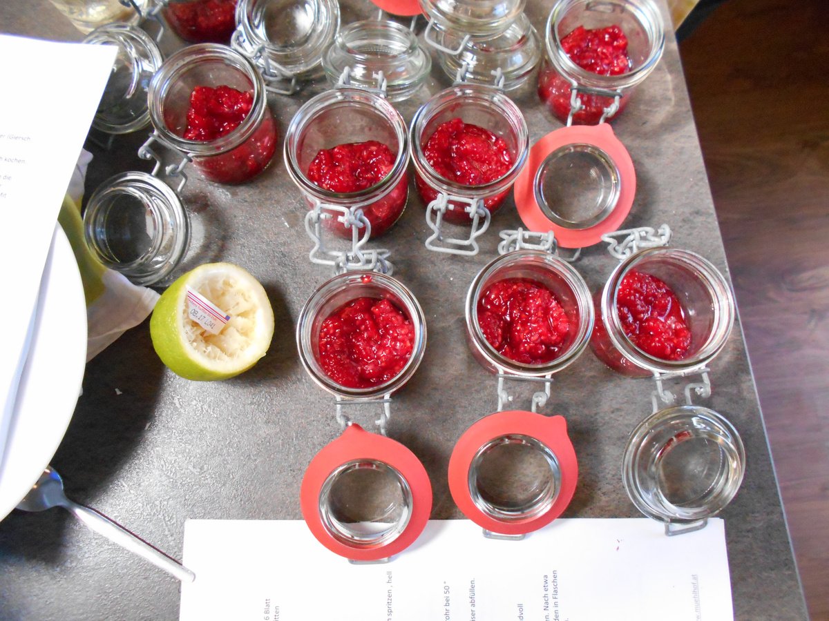 Als Hauptspeise wurde ein Schweinefilet mit Kräuterhaube in Blätterteig aufgetischt, dazu gab es Zuchiniröllchen mit Frischkäsefüllung und Kartoffeln. Den krönenden Abschluss machte ein Buttermilchmousse mit Rosenblüten und marinierten Himbeeren, dazu gab es Biskuithippen. Weiters wurde ein Mädesüßblütenlikor und Rosenblütenzucker zubereitet, welche als Belohnung mit nach Hause genommen werden durfte.