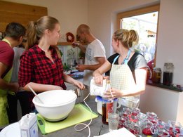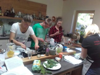 „Es grünt und blüht in unseren Wiesen und wir werden heute diese kostbaren Pflanzen zu einem köstlichen Menü verarbeiten – nicht nur gesund, sondern auch geschmacklich ein Erlebnis.“ Mit diesen Satz begrüßte Heidi Huber am 13. August 2016 neun TeilnehmerInnen zum Kräuterkochkurs auf ihrem Kräuter- und Genussbauernhof Mühlhof in Gastein. Zunächst wurde mit einer kleinen Kräuter-Entdeckungstour rund um den Hof gestartet. Die Landjugendmitglieder lernten dabei verschiedenste Wildkräuter, insbesondere jene, welche anschließend verkocht wurden. Geschmacklich wurden die TeilnehmerInnen ebenfalls sofort auf die Probe gestellt.