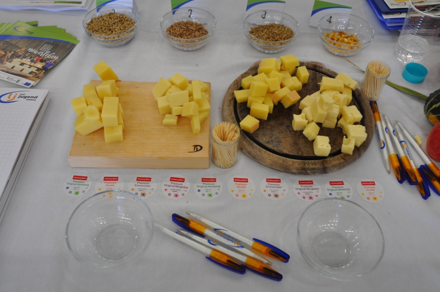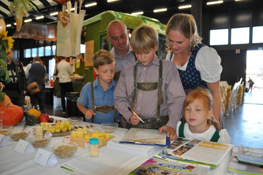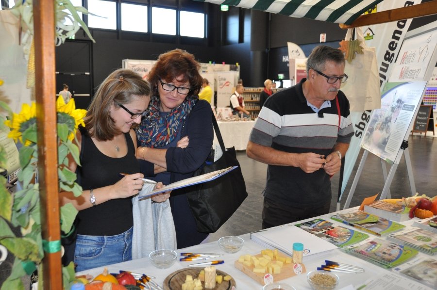 Vom 30. September bis 1. Oktober 2017 fand im Messezentrum Salzburg zeitgleich mit der Sportmesse die neue Genussmesse – die Kulinarik – statt. Unter den rund 200 Ausstellern fand ebenso die Landjugend Salzburg ihren Platz. Neben wichtigen Infos zur größten Jugendorganisation Salzburgs konnten die Besucher auch ihr landwirtschaftliches Wissen unter Beweis stellen. Salzburg. „Bewegen. Genießen. Verweilen.“, unter diesem Motto stand die heurige Sport- und Kulinarikmesse Salzburg. Den Besuchern wurde dabei einiges geboten: Neben den zahlreichen Angeboten von Direktvermarkten, Kochshows und kulinarischen Genüssen aus aller Welt konnte in der Halle nebenan in neue Sportarten geschnuppert und an Workshops teilgenommen werden. „Wir haben die Chance, bei der Kulinarikmesse mitzumachen, sofort genutzt. Wir möchten den großen und kleinen BesucherInnen die Landjugend Salzburg vorstellen und spielerisch näher bringen“, so Landesleiterin-Stv. Sandra Bann. Neben wichtigem Infomaterial zur Organisation und dem vielfältigen Angebot, konnten die BesucherInnen auch im Rahmen eines „Landjugend-Quiz“ die größte Jugendorganisation Salzburgs besser kennen lernen. „Das Landjugend-Quiz ist auf zwei Teile aufgebaut. Zunächst mussten die MessebesucherInnen wichtige Eckdaten zur Landjugend Salzburg beantworten. Danach ging’s ans Praktische. Neben dem Verkosten von verschiedenen Käsesorten der SalzburgMilch GmbH wurde auch das Wissen über verschiedene Getreidekörner abgefragt“, erklärte Landesleiterin Karin Asen.