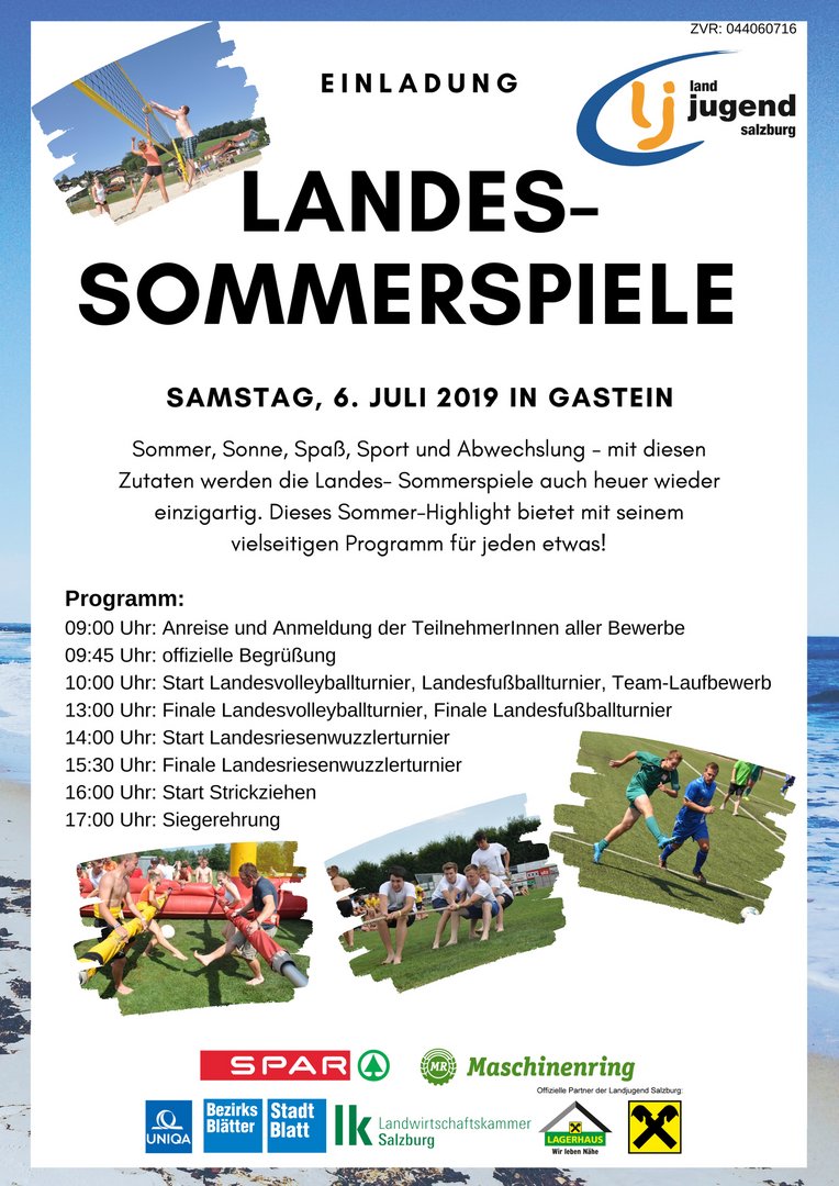 - Die heurigen Landes-Sommerspiele finden im Rahmen des 70-jährigen Jubiläumsfestes der Landjugend Gastein statt. Alle TeilnehmerInnen der Sommerspiele bekommen einen Eintritt für das Festzelt am Samstagabend.
