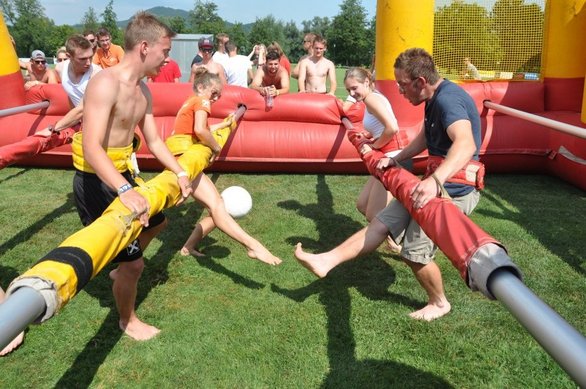 Riesenwuzzler Der Riesenspaß für alle Wuzzelfans! Bereits zum dritten Mal wird es bei den heurigen Sommerspielen ein Riesenwuzzlerturnier geben! Eine Mannschaft besteht aus 5 Spielern (4 Feldspieler, 1 Torwart) – Damen und Herren gemischt. Jede Mannschaft kann zusätzlich 1 Auswechselspieler nominieren. Eine Vorqualifikation durch Bezirksentscheide ist nicht nötig, allerdings ist eine Voranmeldung verpflichtend. Strickziehen Kräftemessen ist angesagt! Eine Mannschaft besteht aus 5 Mitgliedern. Eine Vorqualifikation über einen Bezirksentscheid ist nicht erforderlich. Die Anmeldung erfolgt vor Ort. Damen und Herren werden getrennt bewertet. Es darf nur barfuß gezogen werden! Team-Laufbewerb Bei den heurigen Sommerspielen steht ein neuer Bewerb auf dem Programm. Ein Team besteht aus 2 Personen. Diese werden Fuß an Fuß zusammengebunden und müssen einen ca. 1 km Lauf mit 3 Stationen bewältigen. Wie beim Paarrodeln bei den Winterspielen wird nicht das schnellste Team gewinnen sondern, die Mittelzeit wird entscheiden.