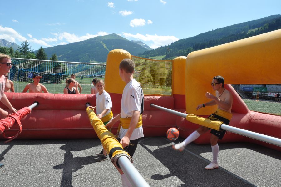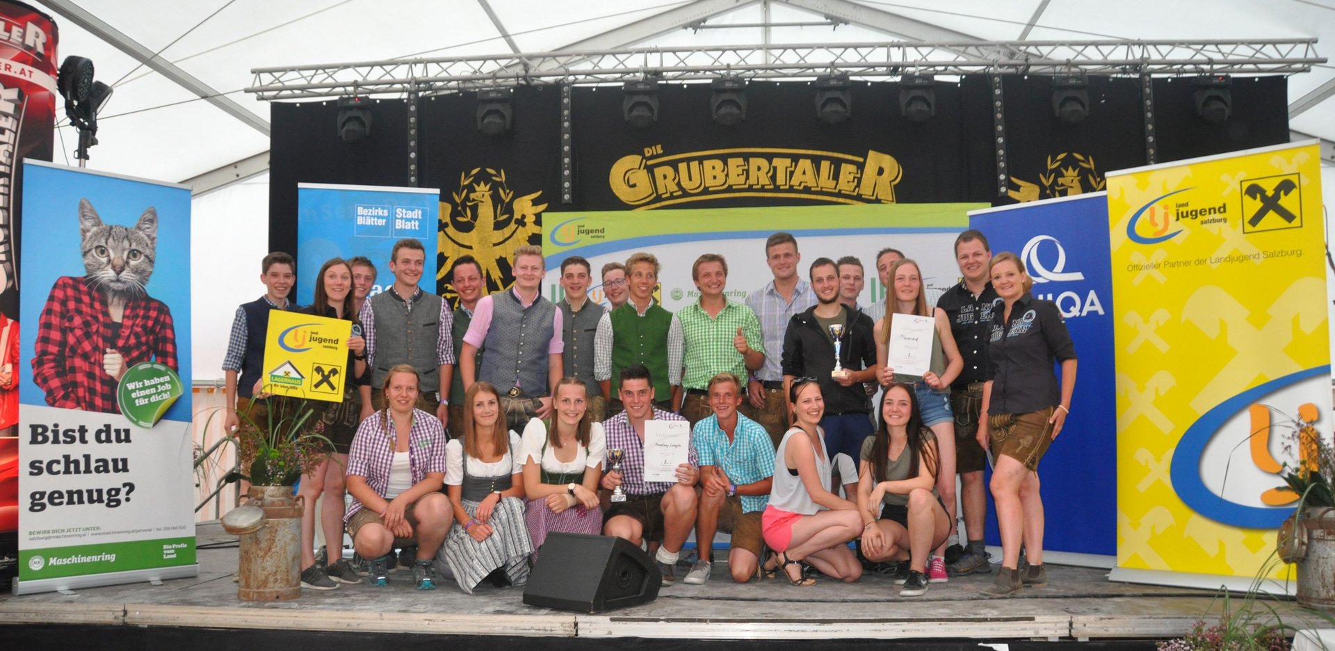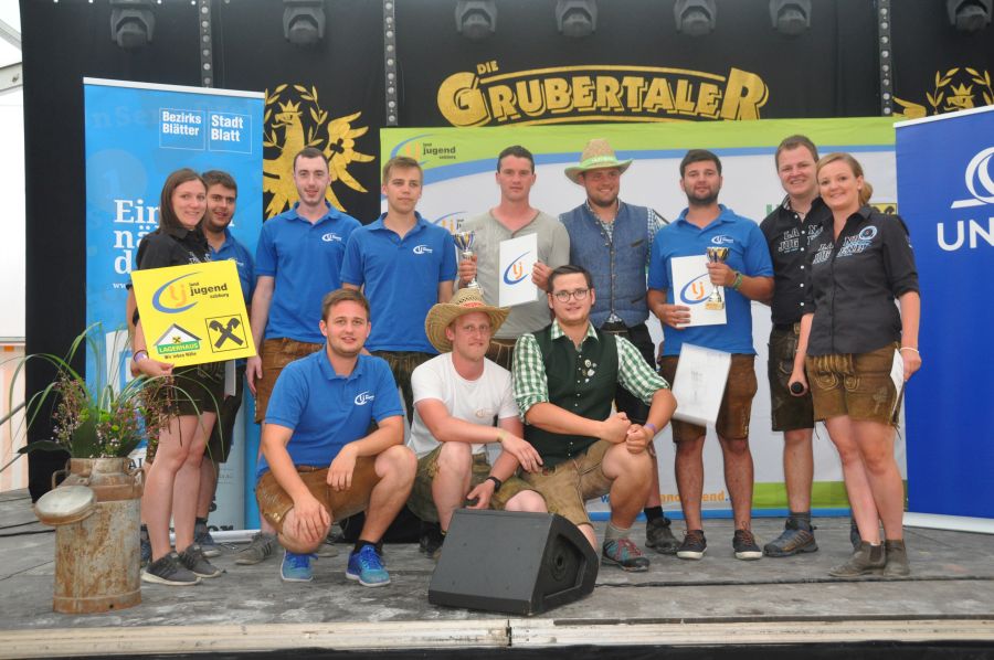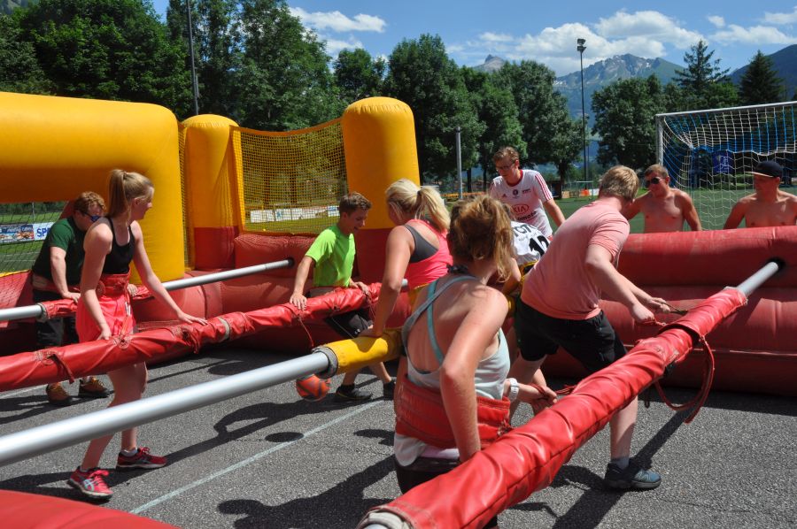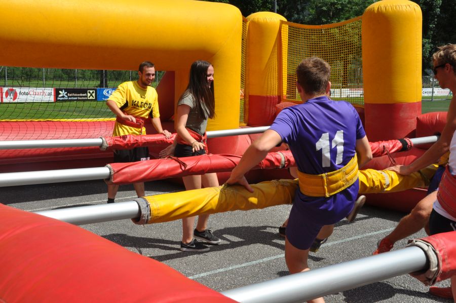 Team-Laufbewerb Erstmals wurde heuer ein Team-Laufbewerb durchgeführt. Bei diesem Lauf wurde das teilnehmende Paar an den Füßen zusammengebunden. So aneinander gekettet musste die Strecke zurückgelegt werden. Zwischendurch gab es verschiedene Geschicklichkeitsaufgaben zu lösen, die für eine zusätzliche Herausforderung sorgten. Gewertet wurde die Mittelzeit. Das Team der Landjugend Annaberg-Lungötz mit Valentina Leidinger und Anna Quehenberger schlug sich eindeutig am besten und sicherte sich den ersten Platz. Sie verwiesen das Team der Landjugend Maishofen 1 auf Platz 2 und die Landjugend Seekirchen folgte auf Platz 3. Riesenwuzzlerturnier Nachdem die ersten Landestitel vergeben waren, startete das 4. Landesriesenwuzzlerturnier. Die Spielregeln waren einfach: Ähnlich eines Wuzzlertisches sind die Spieler an ihrem Platz fest gebunden und können sich nur entlang der Stange bewegen. Dabei kam der Spaß natürlich nicht zu kurz. Die Landjugend Neumarkt blieb unschlagbar und siegte im Finale gegen das Team der Landjugend Annaberg-Lungötz 1. Den dritten Platz erreichte das Team der Landjugend Köstendorf 1.