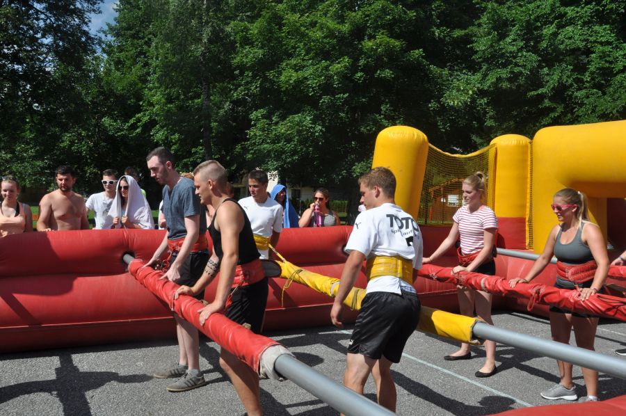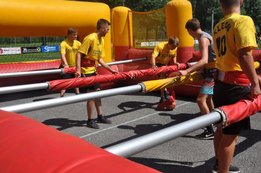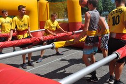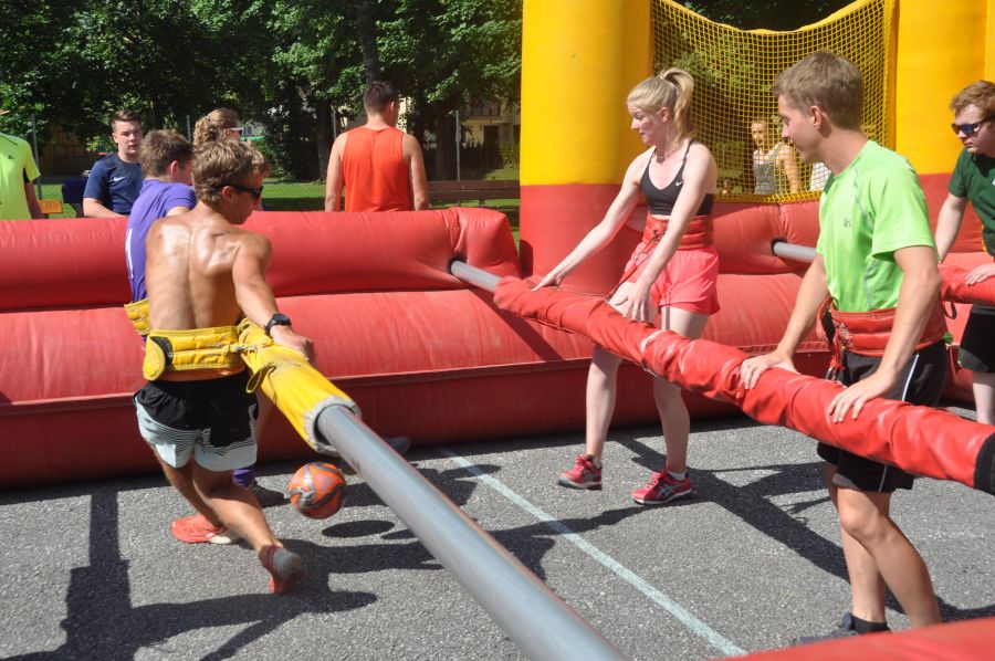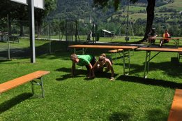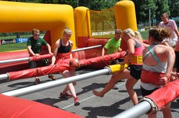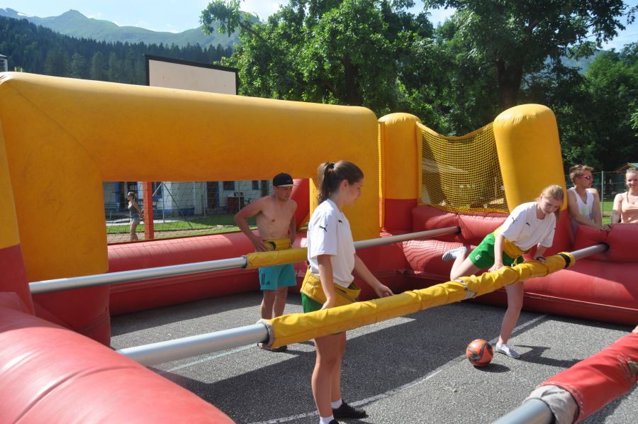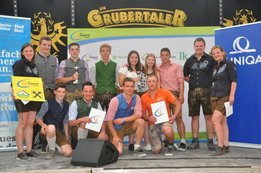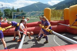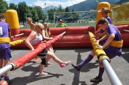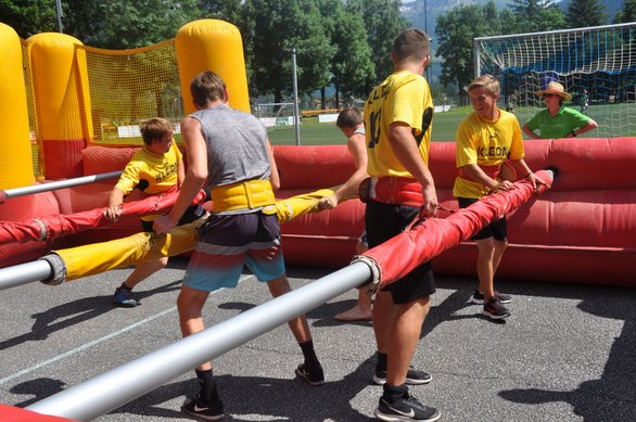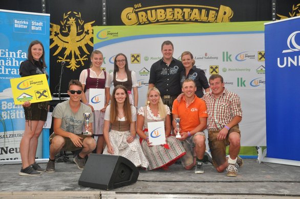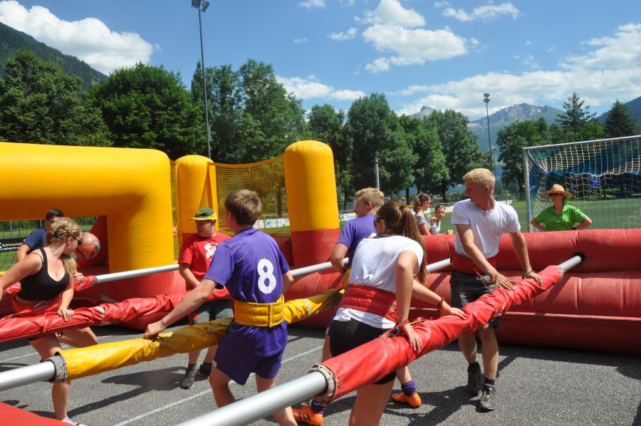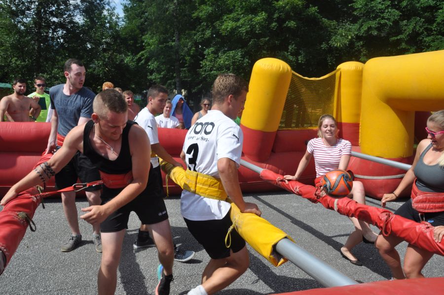 Team-Laufbewerb Erstmals wurde heuer ein Team-Laufbewerb durchgeführt. Bei diesem Lauf wurde das teilnehmende Paar an den Füßen zusammengebunden. So aneinander gekettet musste die Strecke zurückgelegt werden. Zwischendurch gab es verschiedene Geschicklichkeitsaufgaben zu lösen, die für eine zusätzliche Herausforderung sorgten. Gewertet wurde die Mittelzeit. Das Team der Landjugend Annaberg-Lungötz mit Valentina Leidinger und Anna Quehenberger schlug sich eindeutig am besten und sicherte sich den ersten Platz. Sie verwiesen das Team der Landjugend Maishofen 1 auf Platz 2 und die Landjugend Seekirchen folgte auf Platz 3. Riesenwuzzlerturnier Nachdem die ersten Landestitel vergeben waren, startete das 4. Landesriesenwuzzlerturnier. Die Spielregeln waren einfach: Ähnlich eines Wuzzlertisches sind die Spieler an ihrem Platz fest gebunden und können sich nur entlang der Stange bewegen. Dabei kam der Spaß natürlich nicht zu kurz. Die Landjugend Neumarkt blieb unschlagbar und siegte im Finale gegen das Team der Landjugend Annaberg-Lungötz 1. Den dritten Platz erreichte das Team der Landjugend Köstendorf 1.