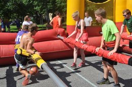 Über 200 Landjugendmitglieder nahmen am Samstag, den 6. Juli 2019 bei den diesjährigen Sommerspielen der Landjugend Salzburg in Gastein teil. In den Disziplinen Fußball, Volleyball, Team-Laufbewerb, Riesenwuzzler und Strickziehen wurde um jeden Punkt gekämpft. Gastein. Um 10:00 Uhr ertönte das Startsignal zu den diesjährigen Landes-Sommerspielen. Landesleiterin Johanna Schafflinger eröffnete die Wettkämpfe bei sommerlich heißen Temperaturen. Die TeilnehmerInnen liefen dabei zu Höchstformen auf und kämpften bis zum Schluss. Zum Durchatmen blieb da wenig Zeit. Volleyball Vier Personen pro Team spielten beim Landesvolleyballturnier. Die Teams überzeugten mit einem hohen spielerischen Niveau und spannende Ballwechsel. Die Ausdauer der SpielerInnen war besonders gefordert, kämpften doch 16 Teams um den Landestitel. Zum diesjährigen Landesmeister kürte sich das Team der Landjugend Neumarkt. Den zweiten Platz erreichte die Landjugend Seekirchen. Im Duell um den dritten Platz matchten sich die Teams der Landjugend Köstendorf und Unternberg 1. Die Landjugend Köstendorf behielt die Oberhand und holte sich somit den dritten Stockerlplatz.