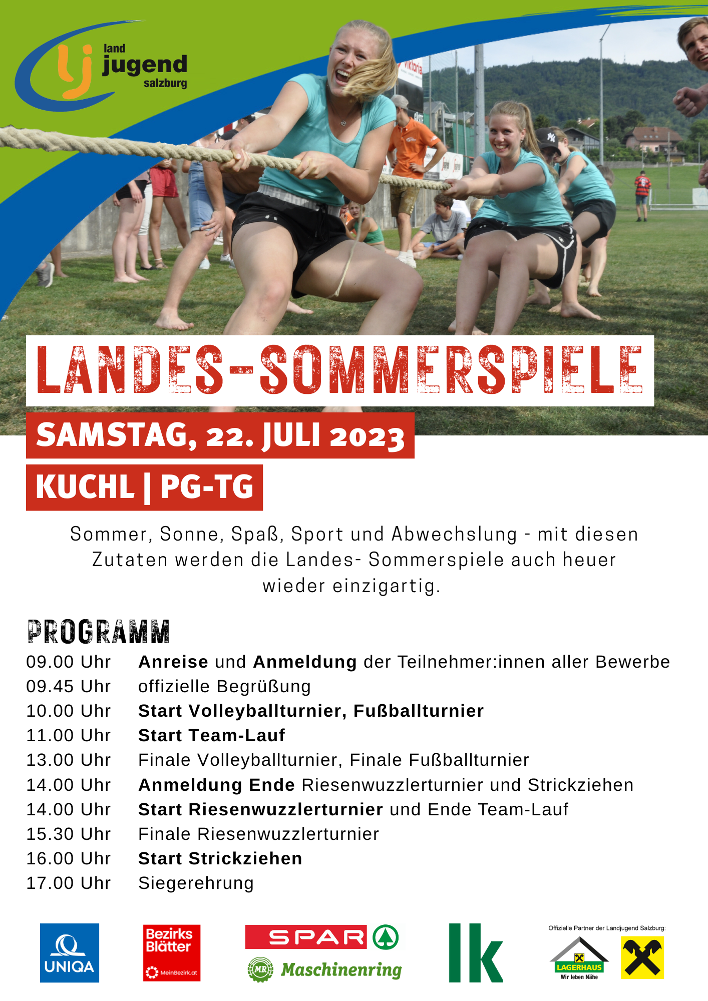 Die diesjährigen Sommerspiele sind am 22. Juli 2023 beim Sportplatz/Badesee in Kuchl.