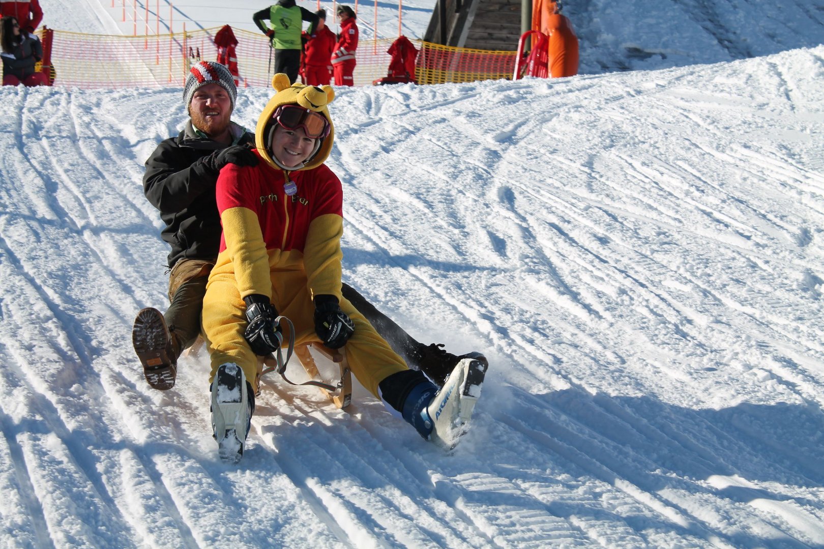 Paarrodeln Jeweils ein Mädl und ein Bursche bilden das Team beim Paarrodeln. Gewertet wurde nicht die schnellste Rodel, sondern die Mittelzeit aller TeilnehmerInnen. Claudia Bann und Peter Webersdorfer von der Landjugend Köstendorf sind mit nur 10s Abstand der Mittelzeit sehr nahe gekommen. Dicht gefolgt wurde das Siegerteam von den Goldeggern Lisa Katsch und Stefan Moser sowie Monika Lichtsmannsperger und Florian Nußbaumer der Landjugend Thalgau.