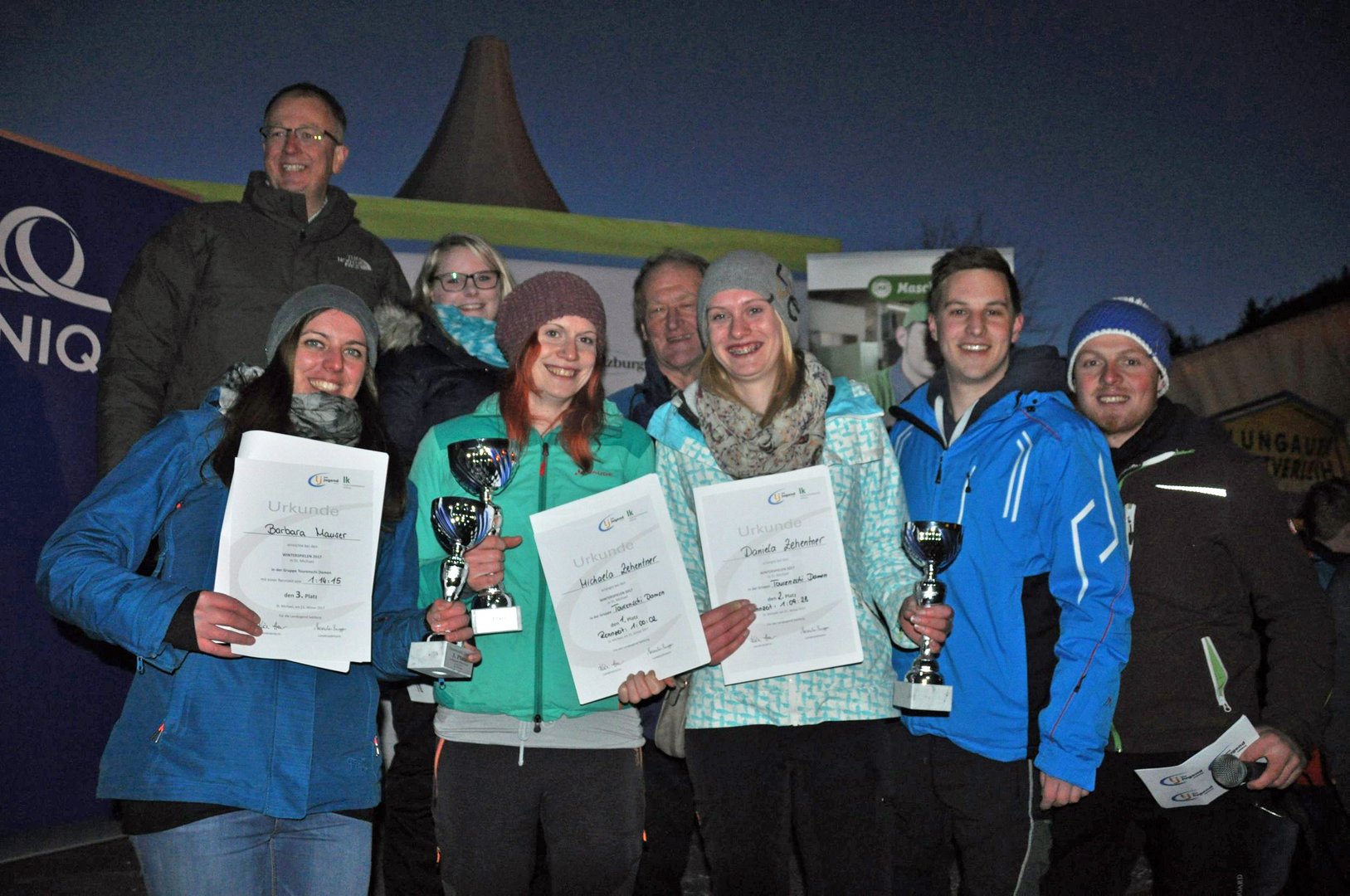 Bei strahlendem Sonnenschein und idealen Verhältnissen verzeichneten die 38. Landeswinterspiele der Landjugend Salzburg einen neuen Teilnehmerrekord. 44 Ortsvereine fanden sich am Samstag, den 21. Jänner in St. Michael ein, um die Landessieger in den Disziplinen Ski, Snowboard, Tourenski, Eisstockschießen, Paarrodeln und beim Nagelstockturnier zu küren. Tourenskirennen Knapp 20 sportbegeisterte Damen und Herren folgten der Einladung zum insgesamt dritten Tourenskirennen der Landjugend Salzburg. 800 Höhenmeter auf 3,5 km Länge waren zu meistern. Als zusätzliche Challenge wurden beim Aufstieg zwei Stationen eingebaut: eine Laser-Biathlon-Station und der „heißen Draht“. „Bei so einem schnelle Aufstieg Zielschießen und eine ruhige Hand beim heißen Draht zu beweisen, ist ziemlich fordernd, wenn man bedenkt, dass man mit einem Puls von über 180 läuft“, so Hannes Bogensperger von der Landjugend Mariapfarr-Weißpriach. Für die Stationen gab es entweder Zeitzuschläge oder Abzüge bei guten Leistungen. Die Gewinner sind der Landessieger vom Vorjahr Rupert Mairhofer der Landjugend Bischofshofen und Michaela Zehentner der Landjugend Saalfelden.