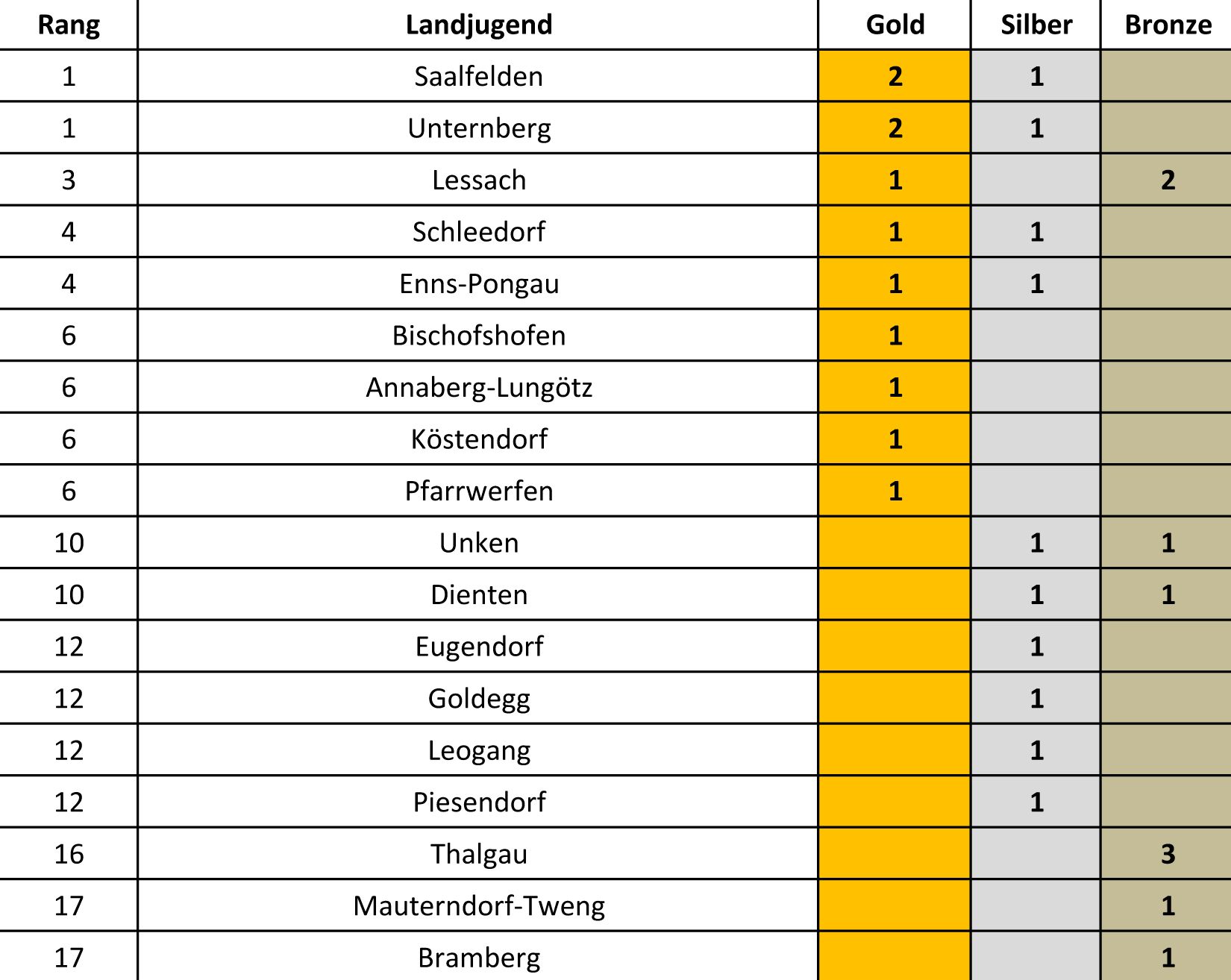 Landesnagelstockturnier Spannend verlief das diesjährige Nagelstockturnier. Christian Schmiderer von der Landjugend Saalfelden distanzierte seine Kollegen im Finale des Turniers und krönte sich damit zum heurigen „Nagelstock-König“. Im Medaillenspiegel setzten sich sowohl die Landjugend Saalfelden als auch die Landjugend Unternberg mit 2 Goldmedaillen und 1 Silbermedaille an die Spitze der diesjährigen Winterspiele.
