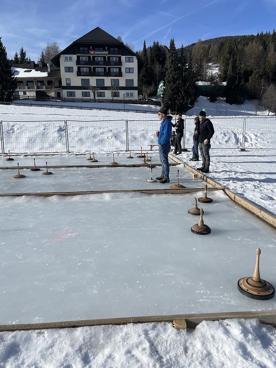 Nach der kurzfristigen Verlegung auf Asphalt im vergangenen Jahr, kehrte das traditionelle Eisstockschießen heuer wieder auf die drei Eisbahnen zurück. Die Schützen lieferten sich spannende Duelle und zeigten ihr Können auf dem glatten Untergrund. Die Eisschützen der Landjugend Annaberg-Lungötz zeigten auch heuer wieder, dass diese Disziplin ihre Lieblingsdisziplin ist und sicherten sich den hervorragenden 1. Platz. Die Mitglieder der Ortsgruppe siegten vor den Teams der Landjugend Obertrum und der Landjugend Mittersill-Hollersbach, die den 3. Platz belegten.