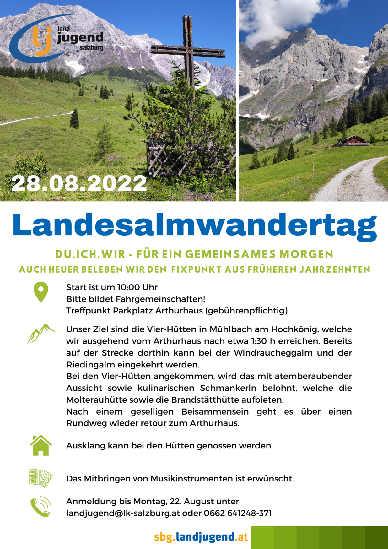 Die genauen Infos zum Landesalmwandertag können der Einladung entnommen werden. Wir freuen uns auf deine Teilnahme!