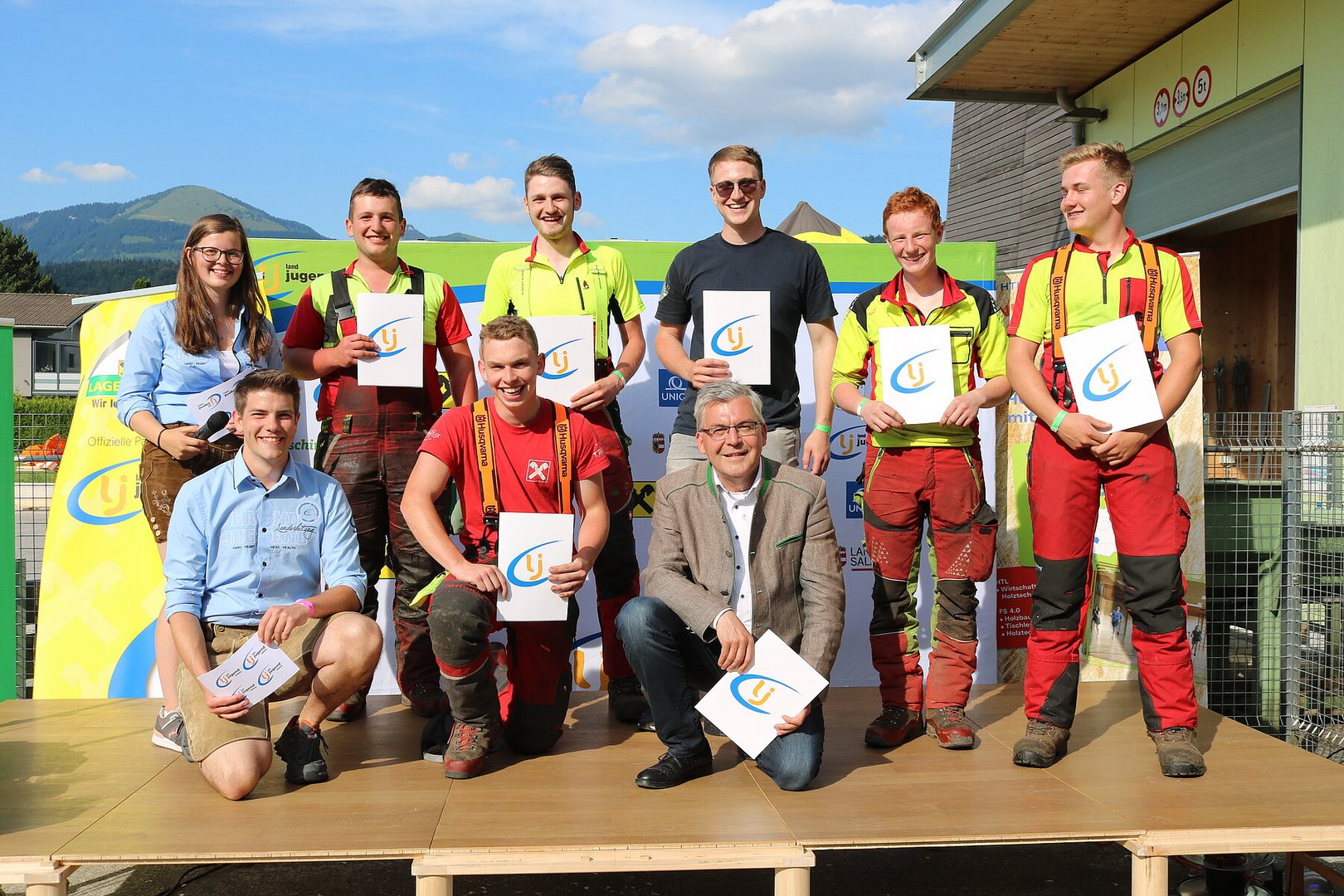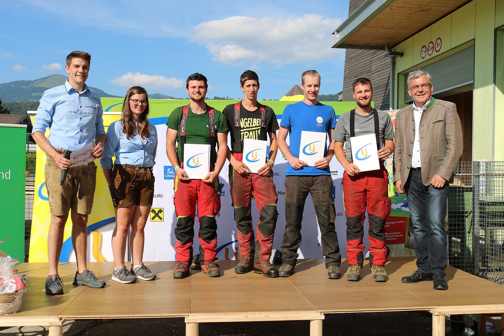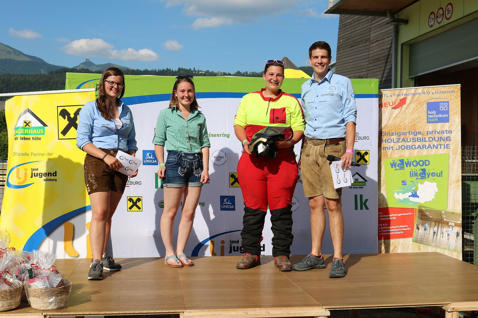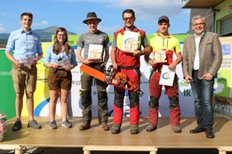 „Das direkte Duell beim Entasten gestaltete sich als besonders spannend. Sowohl Eva Hirscher und Lukas Klampfer überzeugten durch Schnelligkeit, Präzision und die richtige Schrittfolge. Die drei haben sich den Sieg wirklich verdient“, so Landesleiterin-Stv. Magdalena Löcker. Als Preisgeld winkten den Siegern eine Profi 550XP MarkII Motorsäge von Husqvarna, eine 261C-M Motorsäge von Stihl und ein 500,00 € Gutschein für ein Forstschutzset von Grube-Forst.