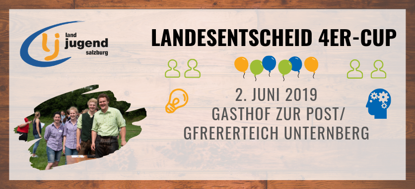 Beim 4er-Cup treten jeweils zwei Mädchen und zwei Burschen als Team an. Jeweils drei Gruppen werden durch die Bezirksqualifikation von den einzelnen Bezirken nominiert. Ihr Fachwissen rund um das aktuelle Zeitgeschehen, Landwirtschaft & ländlicher Raum, Englisch & Geografie uvm. wird bei sechs Stationen unter Beweis gestellt. Um auch die Geschicklichkeit der Landjugendmitglieder zu testen, gibt es auch heuer wieder einen Actionparcours, bei dem viel Spaß garantiert ist. Die Landjugend Salzburg lädt alle Interessierten recht herzlich ein, sich ein Bild vom Landesentscheid 4er-Cup zu machen und freut sich auf die Teilnehmer! Die genauen Infos findest du hier!