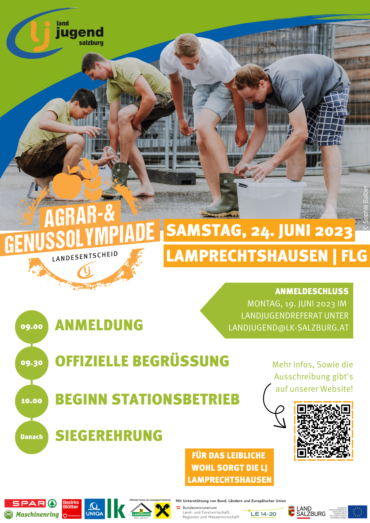 Fachliches Wissen sowie Geschicklichkeit und Teamwork sind am Samstag, den 24. Juni 2023 beim Landesentscheid Agrar- & Genussolympiade der Landjugend Salzburg garantiert. Salzburgs schlausten Köpfe im Agrar- und Genussbereich treffen sich um ihr Wissen zu messen.