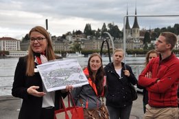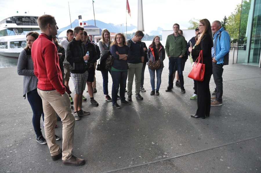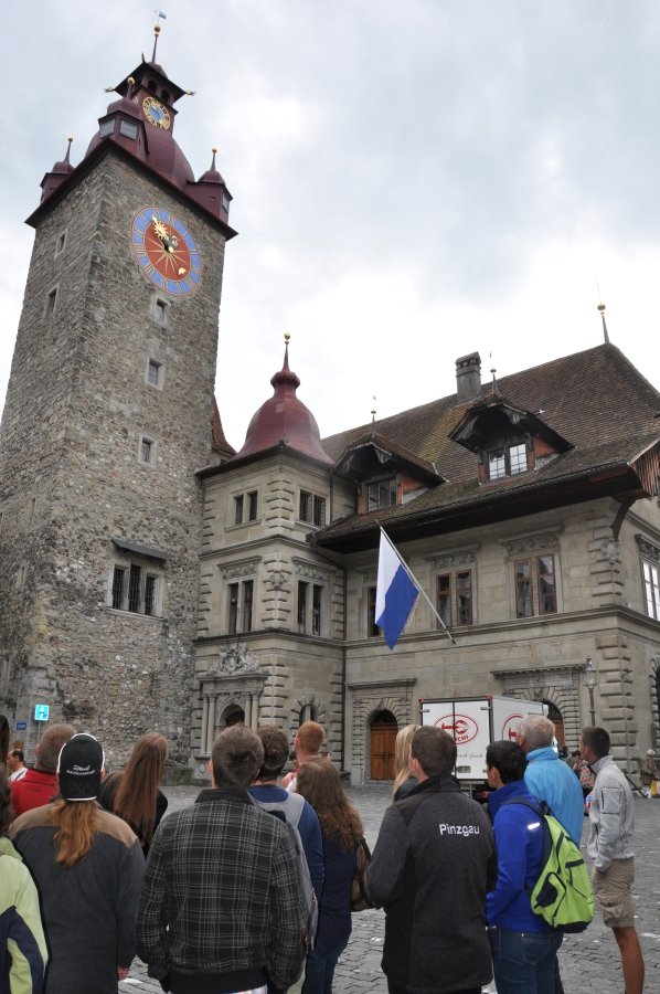 Tag 2 Am zweiten Tag der Landesexkursion wurde die Stadt der Türme – Luzern – besichtigt. Eine Stadtführung durch die ehemalige Handelsstadt bot der 18-köpfigen Gruppe Einblick in die Geschichte und Entwicklung dieser Schweizer Stadt. Ein besonderes Highlight folgte am Nachmittag: die Fahrt mit der steilsten Zahnradbahn der Welt auf dem Pilatus Kulm. Die Zahnradbahn wurde 1889 erstmals in Betrieb genommen. Von da an erklimmt sie nun mit einer Steigung von bis zu 48 Prozent Meter für Meter den Weg von Alpnachstadt auf den Pilatus Kulm, vorbei an blühenden Alpenwiesen und markanten Felsformationen. Am Abend folgten der Einzug der Mäher-Nationen und die Auslosung der Wettbewerbsparzellen.