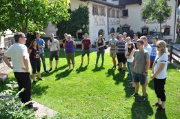 Im Rahmen der Europameisterschaft im Handmähen veranstaltete die Landjugend Salzburg eine viertägige Landesexkursion in die Schweiz. Eine 18-köpfige Gruppe mit TeilnehmerInnen aus allen Bezirken Salzburgs feuerte die EM-TeilnehmerInnen nicht nur am Wettbewerbstag an, sondern lernte auch die Schweiz in ihrer vielfältigen Seite kennen. Am Programm standen Besichtigungen regionaler Betriebe, eines Arche Hofes und Stadtbesichtigungen. Das Highlight bildete das Programm rund um die Europameisterschaft im Handmähen. Tag 1 Bereits zu Sonnenaufgang startete die Reise in die Schweiz. Auf dem Weg dorthin besichtigten die TeilnehmerInnen den Arche Hof von Familie Mair in Ellbögen, nahe Innsbruck. Als eingetragener Arche Hof züchten sie alte, gefährdete Nutztiere der Rassen Pustertaler Sprinzen und Tuxer Rinder sowie Haflinger Pferde, Walliser Schwarznasenschafe, Blobe Ziegen und verschiedene Schweine- & Hühnergattungen. Bei der abendlichen Eröffnung der Europameisterschaft knüpfte die Gruppe erste Kontakte mit den KollegInnen aus den teilnehmenden Nationen.