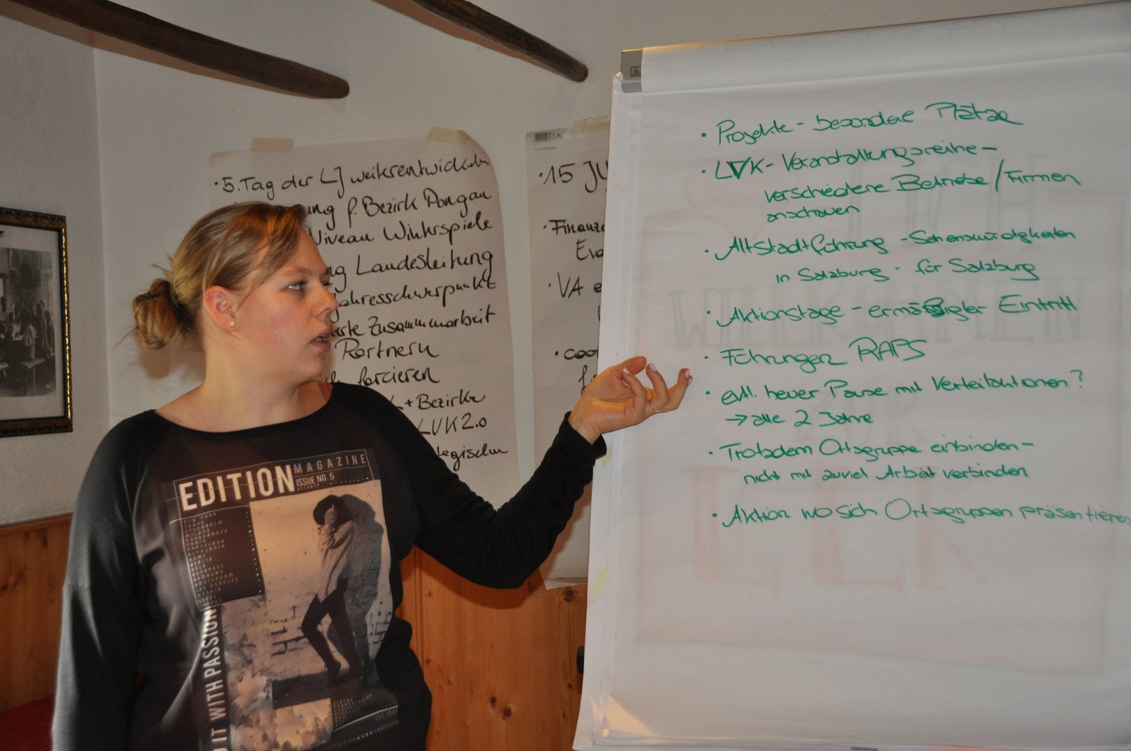 Der Samstagabend stand ganz im Zeichen des 5. Tag der Landjugend Salzburg, welcher am 13. Jänner 2018 im Kongresshaus St. Johann über die Bühne geht. „Eine genau Planung, die Reflektion der letzten vier Jahre und das Einbringen von neuen Ideen ist für einen erfolgreichen Tag der Landjugend Salzburg essenziell“, so Geschäftsführerin Elisabeth Weilbuchner. Und weiter im Gespräch: „Wir freuen uns, auch im kommenden Jahr wieder für ein unvergessliches Event für unsere Ortsgruppen mit unzählig schönen Landjugendmomenten sorgen zu können“. Der Sonntag wurde nochmals intensiv für weitere Planungen genutzt! Landjugend Salzburg 2022 – der Fahrplan für die nächsten fünf Jahre! So wurden die Entwicklung und der Weg dorthin betrachtet sowie erste Schritte dafür gesetzt. Dazu zählte auch das Brainstorming für die Jahresschwerpunkaktion 2018 im Rahmen des Jahresschwerpunktthemas „Vielfalt Regionalität – Salzburg & seine Qualität“. „Wir haben bereits bei der Sommer-Landesvorstandsklausur mit den BezirksfunktionärInnen viele Ideen gesammelt. Diese haben wir nun nochmals aufgegriffen und daran weitergearbeitet“, so Maximilian Brugger.