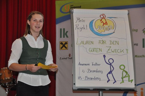 Fünf Seminartage, ein Projektcoachingtreffen, eine Präsentationsschulung und die Durchführung eines eigenen Projektes samt Öffentlichkeitsarbeit und Planungsarbeit. Mit diesen bereits erfüllten Kriterien traten 15 Personen des Lehrgangs A des neuen Lehrganges für Persönlichkeitsbildung zur Abschlusspräsentation an. "Anhand der Präsentation werden die erlernten Fähigkeiten in Bezug auf Rhetorik, Projektmanagement und die praktische Umsetzung des Projektes geprüft. Unser Ziel ist es, dass die TeilnehmerInnen möglichst viel aus unserem Lehrgang für die ehrenamtliche Arbeit, sowie Schule und Beruf mitnehmen, " erklärt die Initiatorin und Bildungsbeauftragte Landesleitern-Stv. Christine Gruber. Neben der Planung & Ausführung des Projektes mussten die TeilnehmerInnen die Zieldefinition, Finanzierung und Zusammensetzung des Projektteams vortragen. Im Rahmen des Interviews wurden zudem die spontanen Fähigkeiten der Damen und Herren geprüft. "Die Qualität der Präsentationen überzeugte die Jury. Besonders in der Gestaltung haben sich die TeilnehmerInnen ausgezeichnet, " brachte Projektkoordinatorin Elisabeth Weilbuchner die Eindrücke auf den Punkt. Neben der Präsentation zählen noch das Projekthandbuch und der Nachweis der erfolgten Öffentlichkeitsarbeit in Form von Presseartikeln zum erfolgreichen Abschluss. Nun heißt es auswerten und den Erfolg der einzelnen TeilnehmerInnen bewerten. Beim Tag der Landjugend Salzburg am 17. Jänner 2015 erfolgt die Zertifikatsübergabe für den, auf jeden Fall, größten Teil der TeilnehmerInnen. Auch nächstes Jahr startet wieder ein JUMP Lehrgang! Anmeldeschluss ist der 02.02.2015. Nährer Informationen zu den Inhalten des Lehrganges und der Anmeldung findest du unter dem Punkt Bildungsangebot/JUMP.