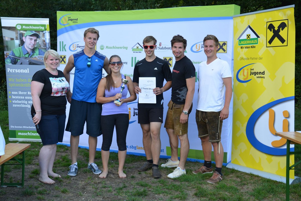 Vier Personen spielten pro Team beim Landesvolleyballturnier. Das Niveau war durch die Bank recht ordentlich und der eine oder andere Ballwechsel sorgte für Begeisterung bei den Zuschauern und Fans. Speziell die Kondition der TeilnehmerInnen war gefragt, standen doch insgesamt sieben Partien am Programm. Zum neuerlichen Landesmeister kürte sich das Team der Landjugend Mattsee. Sie blieben während des gesamten Turnieres ungeschlagen und konnten so ihren Titel erfolgreich verteidigen. Im Duell um den zweiten Platz matchte sich das Team der Landjugend Köstendorf und das Team der Landjugend Mariapfarr-Weißpriach. Drei Sätze waren notwendig um sich den zweiten Platz auszuspielen. Nach einem knappen 15:14 Gewinn im zweiten Satz (ein Satz wird nach 10min abgebrochen) rettete sich Köstendorf in den alles entscheidenden dritten Satz. Dort behielt das Team klar die Oberhand und sicherte sich den Vize-Landesmeistertitel.