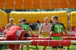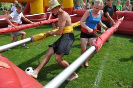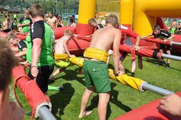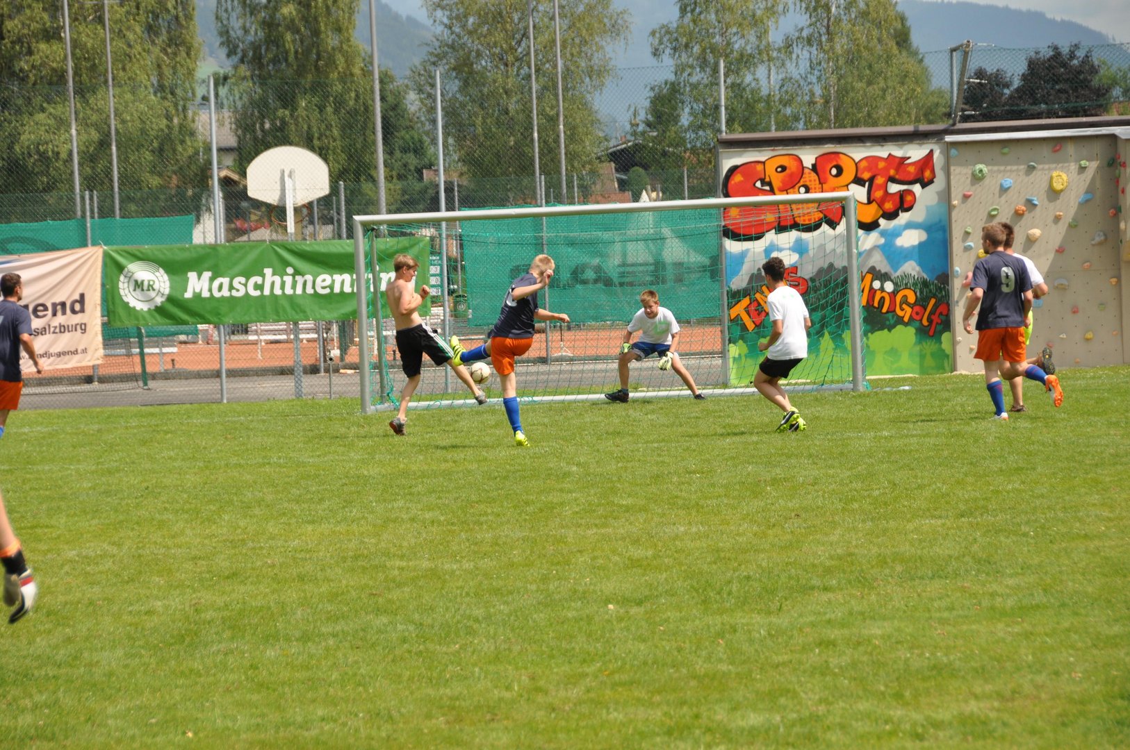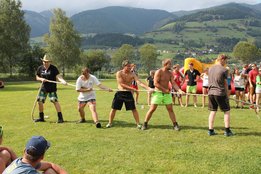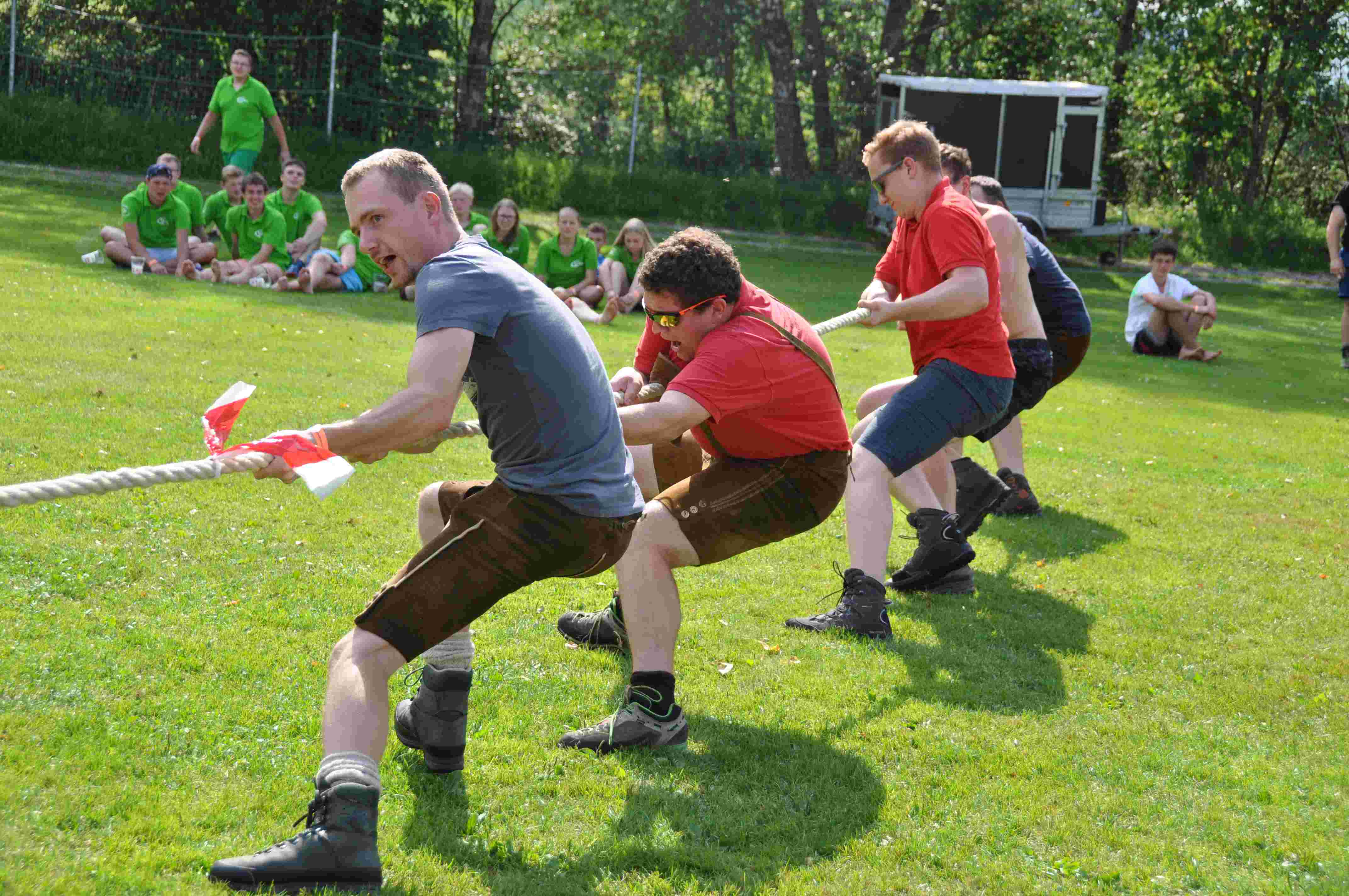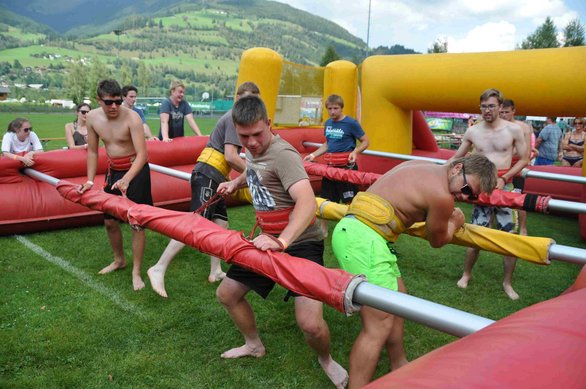 Riesenwuzzlerturnier Nachdem die ersten Landestitel vergeben waren, startete das 2. Landesriesenwuzzlerturnier der Landjugend Salzburg. Die Spielregeln waren einfach: Ähnlich eines Wuzzlertisches sind die Spieler an ihrem Platz fixiert und können sich nur entlang der Stange bewegen. Dabei kam der Spaß natürlich nicht zu kurz. Die Landjugend Niedernsill blieb unschlagbar und siegte im Finale mit 2:1 gegen die Landjugend Köstendorf. Den dritten Platz erreichte die Landjugend Pfarrwerfen. Strickziehen Beim Strickziehen treten fünf Personen pro Team gegeneinander an. Sobald die erste Person der gegnerischen Mannschaft mit der Mitte des Seiles über eine Markierung gezogen wird, ist der Zug vorbei. Das meiste „Schmoiz“ legten die Burschen der Landjugend Unken an den Tag. Das Team siegte nach dem spannenden Wettkampf gegen die Landjugend Mattsee. Den dritten Rang erreichte die Landjugend Niedernsill. Bei den Damen siegte das Team der Landjugend Saalfelden vor der Landjugend Niedernsill und der Landjugend Hallwang.