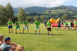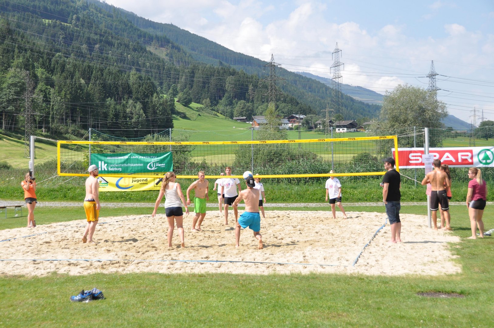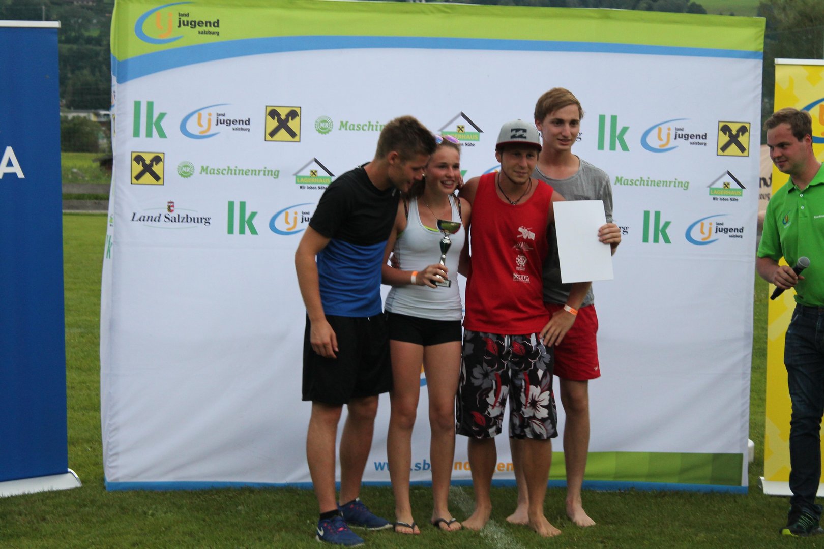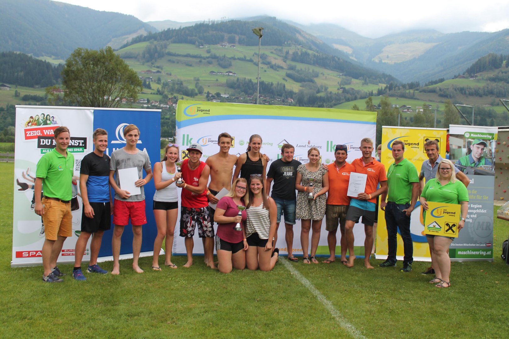 Über 150 Landjugendmitglieder nahmen am Samstag, den 5. August 2017 bei den diesjährigen Sommerspielen der Landjugend Salzburg im Badeseeareal in Niedernsill teil. In den Disziplinen Fußball, Volleyball, Berglauf, Riesenwuzzler und Strickziehen wurde um jeden Punkt gekämpft. Mit 2x Gold und je 1x Silber und Bronze war die Landjugend Niedernsill die erfolgreichste Ortsgruppe im Medaillenspiegel. Niedernsill. Um 10:00 Uhr ertönte das Startsignal zu den diesjährigen Landes-Sommerspielen. Die Landesleitung Karin Asen und Maximilian Brugger eröffneten die Wettkämpfe bei sommerlichen 30° C. Die Disziplinen Volleyball, Fußball und Berglauf wurden parallel ausgetragen. Im Anschluss folgten das Riesenwuzzler- und Strickziehturnier. Die TeilnehmerInnen liefen dabei zu Höchstformen auf und kämpften bis zum Schluss. Zum Durchatmen blieb da wenig Zeit. Volleyball Vier Personen spielten pro Team beim Landesvolleyballturnier. Die Teams überzeugten mit einem hohen spielerischen Niveau und spannende Ballwechsel und sorgten für Begeisterung bei den Zuschauern und Fans. Die Ausdauer der Spieler und Spielerinnen war besonders gefordert, kämpften doch 18 Teams um den Landestitel. Zum diesjährigen Landesmeister kürte sich das Team der Landjugend Seekirchen. Den zweiten Platz erreichte die Landjugend Köstendorf. Im Duell um den dritten Platz matchten sich die Teams der Landjugend Göming und ein weiteres Team der Landjugend Köstendorf. Die Landjugend Göming behielt – speziell im zweiten Satz – die Oberhand und holte sich den Stockerlplatz.