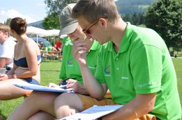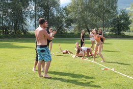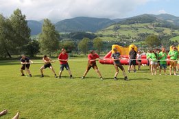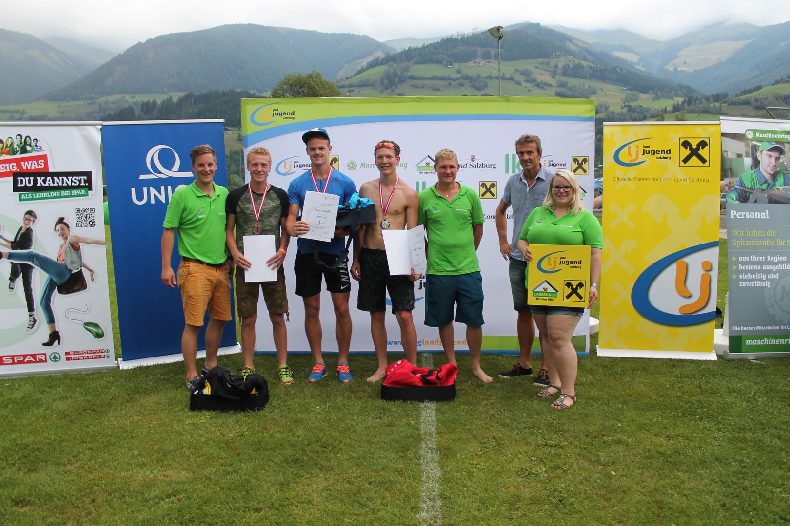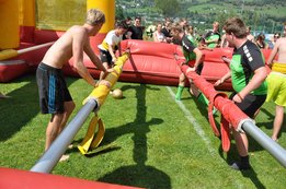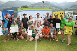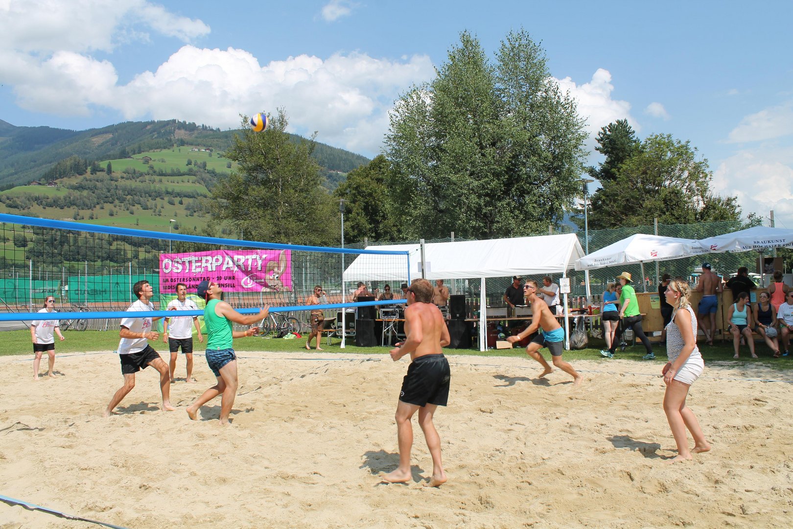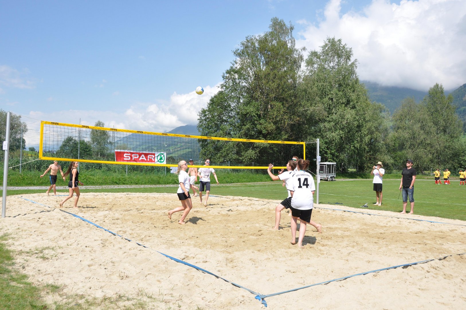 Über 150 Landjugendmitglieder nahmen am Samstag, den 5. August 2017 bei den diesjährigen Sommerspielen der Landjugend Salzburg im Badeseeareal in Niedernsill teil. In den Disziplinen Fußball, Volleyball, Berglauf, Riesenwuzzler und Strickziehen wurde um jeden Punkt gekämpft. Mit 2x Gold und je 1x Silber und Bronze war die Landjugend Niedernsill die erfolgreichste Ortsgruppe im Medaillenspiegel. Niedernsill. Um 10:00 Uhr ertönte das Startsignal zu den diesjährigen Landes-Sommerspielen. Die Landesleitung Karin Asen und Maximilian Brugger eröffneten die Wettkämpfe bei sommerlichen 30° C. Die Disziplinen Volleyball, Fußball und Berglauf wurden parallel ausgetragen. Im Anschluss folgten das Riesenwuzzler- und Strickziehturnier. Die TeilnehmerInnen liefen dabei zu Höchstformen auf und kämpften bis zum Schluss. Zum Durchatmen blieb da wenig Zeit. Volleyball Vier Personen spielten pro Team beim Landesvolleyballturnier. Die Teams überzeugten mit einem hohen spielerischen Niveau und spannende Ballwechsel und sorgten für Begeisterung bei den Zuschauern und Fans. Die Ausdauer der Spieler und Spielerinnen war besonders gefordert, kämpften doch 18 Teams um den Landestitel. Zum diesjährigen Landesmeister kürte sich das Team der Landjugend Seekirchen. Den zweiten Platz erreichte die Landjugend Köstendorf. Im Duell um den dritten Platz matchten sich die Teams der Landjugend Göming und ein weiteres Team der Landjugend Köstendorf. Die Landjugend Göming behielt – speziell im zweiten Satz – die Oberhand und holte sich den Stockerlplatz.