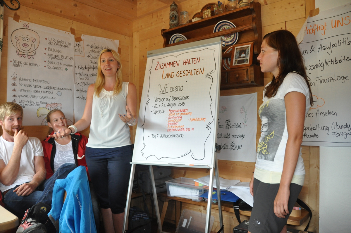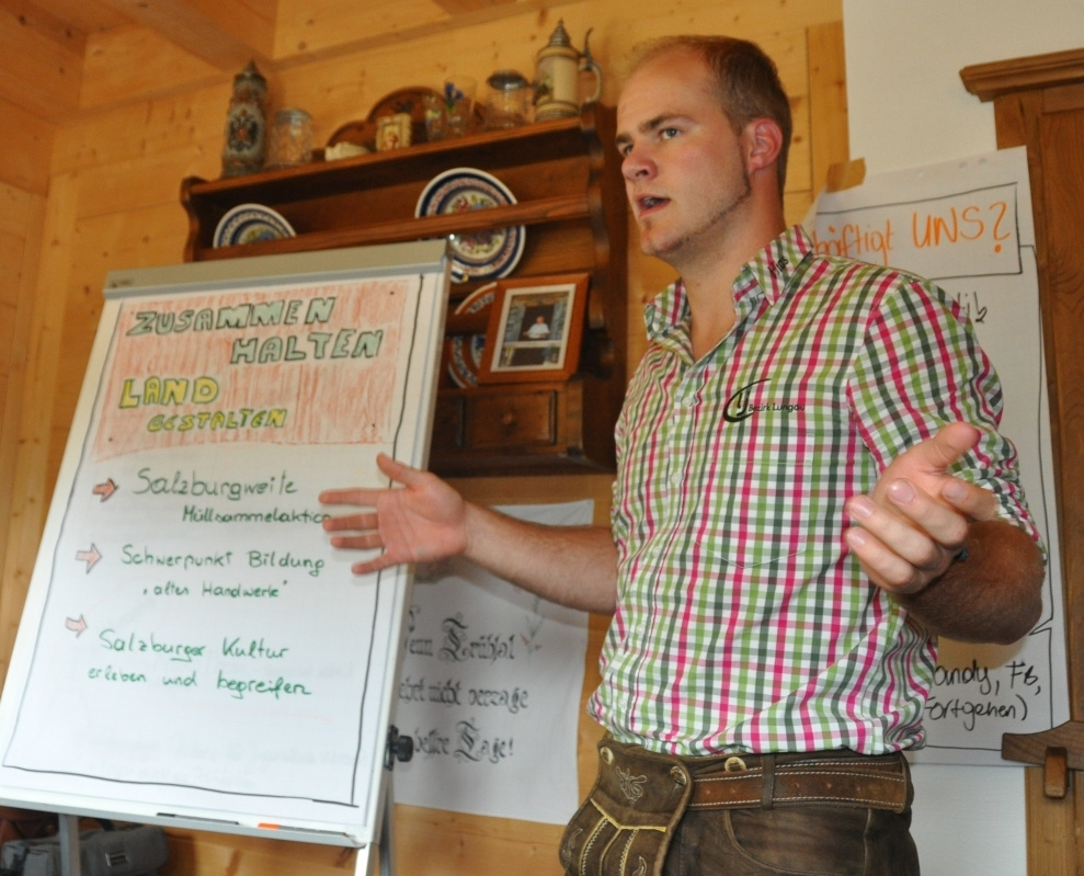 Heuer fand die Klausur in der Kögerlalm in Dorfgastein statt. 21 Funktionäre und Mitarbeiter des Landjugendbüros erarbeiteten richtungsweisende Themen für das kommende Vereinsjahr. Nach dem sehr erfolgreichen Vereinsjahr 2014/2015 wurde auch der Gemütlichkeit ein eigener Tagesordnungspunkt gewidmet. Mit flotter Musik (Harmonikaspieler und Gesangstalente sind im Landesvorstand zur Genüge vorhanden) ließen die TeilnehmerInnen am Freitag, nach einem kurzen offiziellen Teil zur Einstimmung, den Abend gemütlich ausklingen. Am Samstag wurde u.a. die Termine für das Jahr 2016 fixiert und der Bundesentscheid Agrar- und Genussolympiade, der 2016 in Salzburg stattfindet, besprochen. Nachdem wir uns mit dem Thema „Das beschäftigt die Jugend!“ intensiv auseinandergesetzt haben, schmiedeten wir in Verbindung mit diesen Punkten und dem Jahresschwerpunkt „Zusammenhalten – Land gestalten“, das österreichweit behandelt wird, kreative Pläne für Aktionen im Jahr 2016. Mit dem guten Gefühl, für das kommende Landjugendjahr gewappnet zu sein, beendeten wir am Samstagnachmittag motiviert die Sommer-Landesvorstandsklausur 2015!