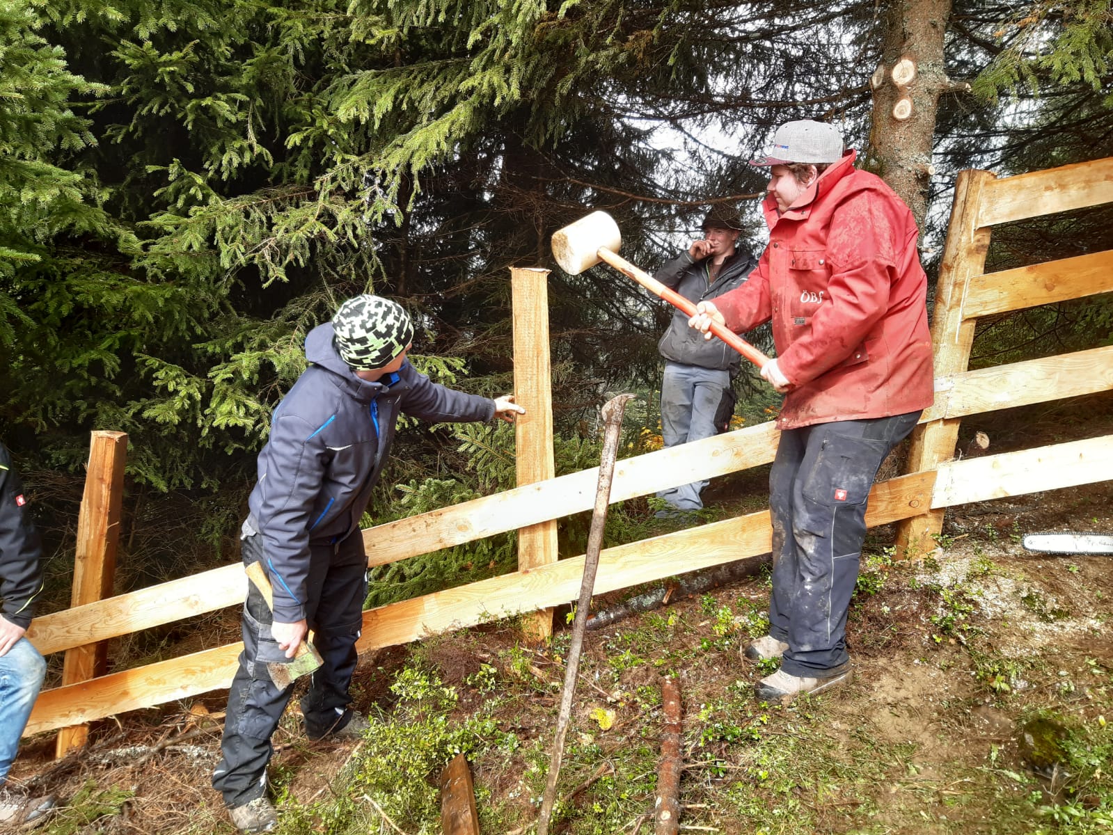 Die Mitglieder aus den Ortsgruppen der Landjugend Bezirk Pongau-Tennengau sind allesamt engagiert und tatkräftig. Das bewiesen sie wieder einmal vergangenen Samstag, den 5. Oktober, wo sie die Nonnen des Klosters „Maria im Paradies“ bei der Reparatur von Winterschäden unterstützten. St. Veit. Auf rund 1.300 m, in der Nähe des Tennengebirges und des Hochkönigs, liegt die Kinderalm. Früher diente sie als Heilstätte für erholungsbedürftige Kinder, bevor das Gebäude 1985 zu einem Kloster geworden ist. Rund dreißig Nonnen leben auf diesem Stück Land sehr zurückgezogen. Der letzte Winter hinterließ auch bei ihnen Schäden und zerstörte einen ca. 700 m langen Holzzaun, der zum Kloster gehört. Nicht zuletzt aufgrund der zurückgezogenen Lebensweise der Nonnen, haben diese nicht die Möglichkeit den Zaun selbst auszubessern. Alsbald fanden sich einige Mitglieder aus den Ortsgruppen im Pongau-Tennengau und machten sich daran, einen Teil des Zaunes zu reparieren bzw. zu ersetzen.