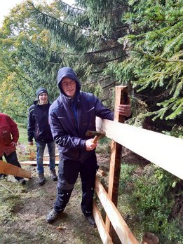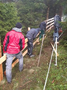 „Die Arbeit im steilen Gelände ist sehr schwierig. Auch die Tatsache, dass der Zaun schon sehr verwachsen ist stellte uns vor Herausforderungen. Zuerst galt es den kaputten Zaun frei zu schneiden. Im zweiten Schritt wurde dieser entfernt und erst dann konnten wir den neuen Zaun machen“, erklärte Marcel Gainschnigg, Bezirksobmann der Landjugend Bezirk Pongau-Tennegau. Trotz des regnerischen Wetters wurde mit voller Motivation ein Teilstück von 100 m erneuert. Andere Vereine und Organisationen haben sich an diesem Projekt ebenfalls beteiligt und Teilstücke des Zauns hergerichtet. Eingeladen von den Nonnen gab es anschließend ein gemeinsames Mittagessen. „Wir haben sehr nette Gespräche geführt und viel über das Leben im Kloster erfahren. Zum Beispiel produzieren sie Handwerksstücke aus Keramik und verkaufen diese dann. Ich war erstaunt was sie alles machen“, erzählt Marlene Gruber, Bezirksleiterin der Landjugend Bezirk Pongau-Tennengau. Und weiter im Gespräch: „Für die Zukunft haben wir vereinbart, dass wir sie auch weiterhin unterstützen und ihnen die Landjugend gerne behilflich ist.“ „Seit Jahren initiieren die Funktionäre und Mitglieder der Landjugend Salzburg verschiedenste Projekte. Wie bei diesem Projekt knüpfen sie dabei oft Kontakte zu verschiedensten Menschen, Organisationen und anderen Vereinen. Es ist erstaunlich, wie kreativ und ideenreich die Orts- und Bezirksgruppen sind“, weiß Landesleiterin Johanna Schafflinger. Und weiter im Gespräch: „Im Bildungsprogramm legen wir einen großen Fokus auf die Planung und Durchführung von Projekten. Vor einigen Jahren haben wir gemeinsam mit dem LFI Salzburg den Zertifikatslehrgang JUMP entwickelt, in dem das dazu benötigte Wissen vermittelt wird.“