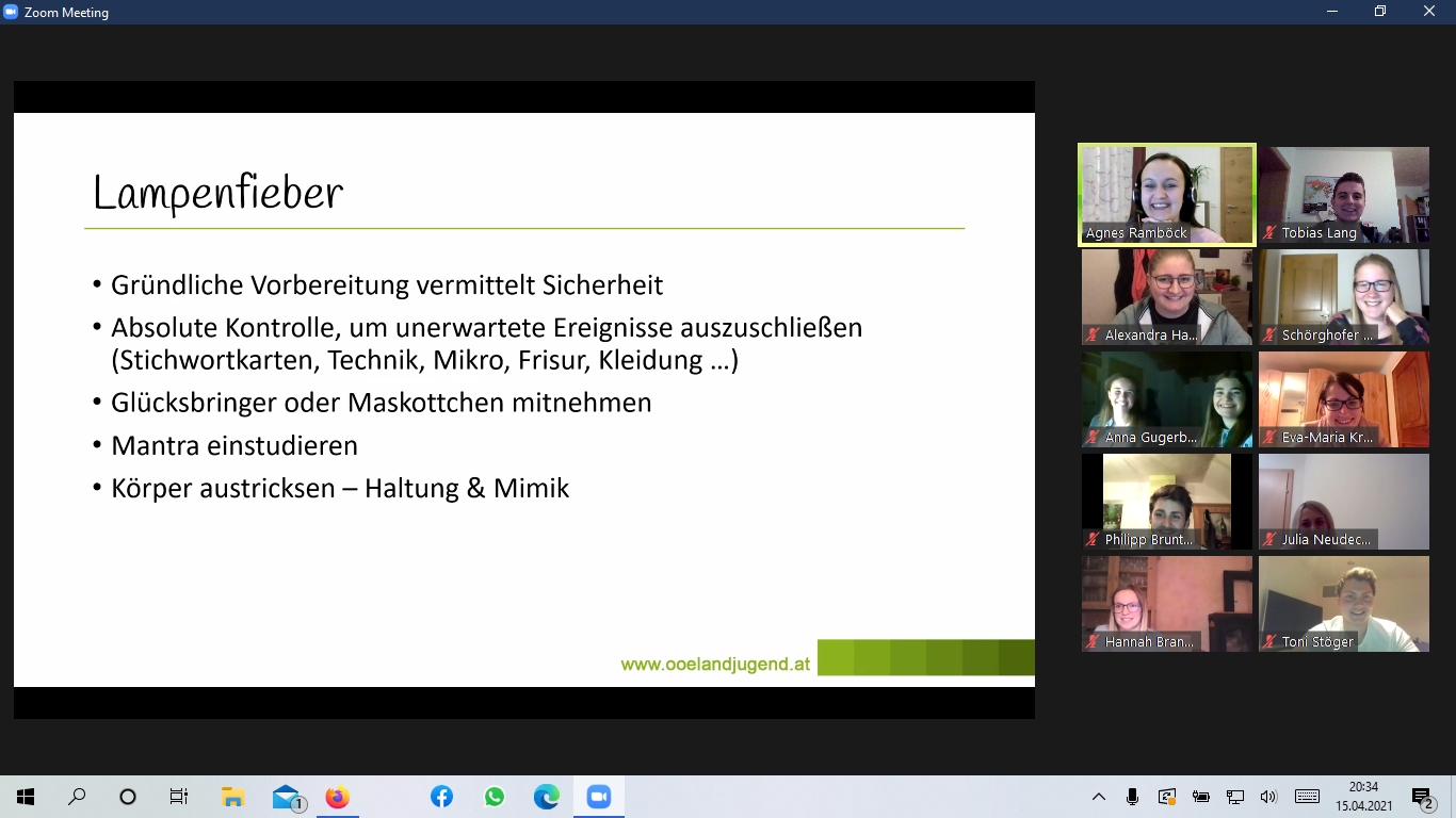 Um die Landjugendmitglieder im Flachgau auch in Zeiten wie diesen bei Laune zu halten, hat sich der Bezirksvorstand dazu entschieden, Online-Kurswochen durchzuführen. Die Kurse „Erster Eindruck und Körpersprache, Teamkommunikation, Veranstaltungsplanung, sowie eine Rhetorik- und eine Medienschulung luden zum virtuellen Mitmachen ein. Insgesamt 86 Mitglieder nutzten die Chance und bildeten sich weiter. „Es ist eine sinnvolle und lustige Beschäftigung für die sonst eher langweiligen Abende im Lockdown“, so Anna Aichriedler, Leiterin der Landjugend Göming. Sie hat sich jedoch nicht nur angemeldet, um die Zeit tot zu schlagen. „Die Kursinhalte helfen nicht nur für die Arbeit im Verein, sondern können immer wieder gebraucht und angewandt werden.“ Für einige waren jedoch nicht nur die Kursinhalte ausschlaggebend für die Anmeldung, sondern auch das virtuelle Treffen und der Austausch mit Kollegen und Freunden. „Jeder Verein, so auch die Landjugend, lebt von der Gemeinschaft und vom Beisammensein. Da dies aus gegebenem Anlass nicht möglich ist, müssen Alternativen geschaffen werden“, so Tobias Lang, Referent der Landjugend im Bezirk Flachgau. „Nichts desto trotz freuen wir uns auf die angekündigten Lockerungen und hoffen, uns zumindest im kleinen Kreise unter Einhaltung der geltenden Regeln wieder treffen und anpacken zu können.“