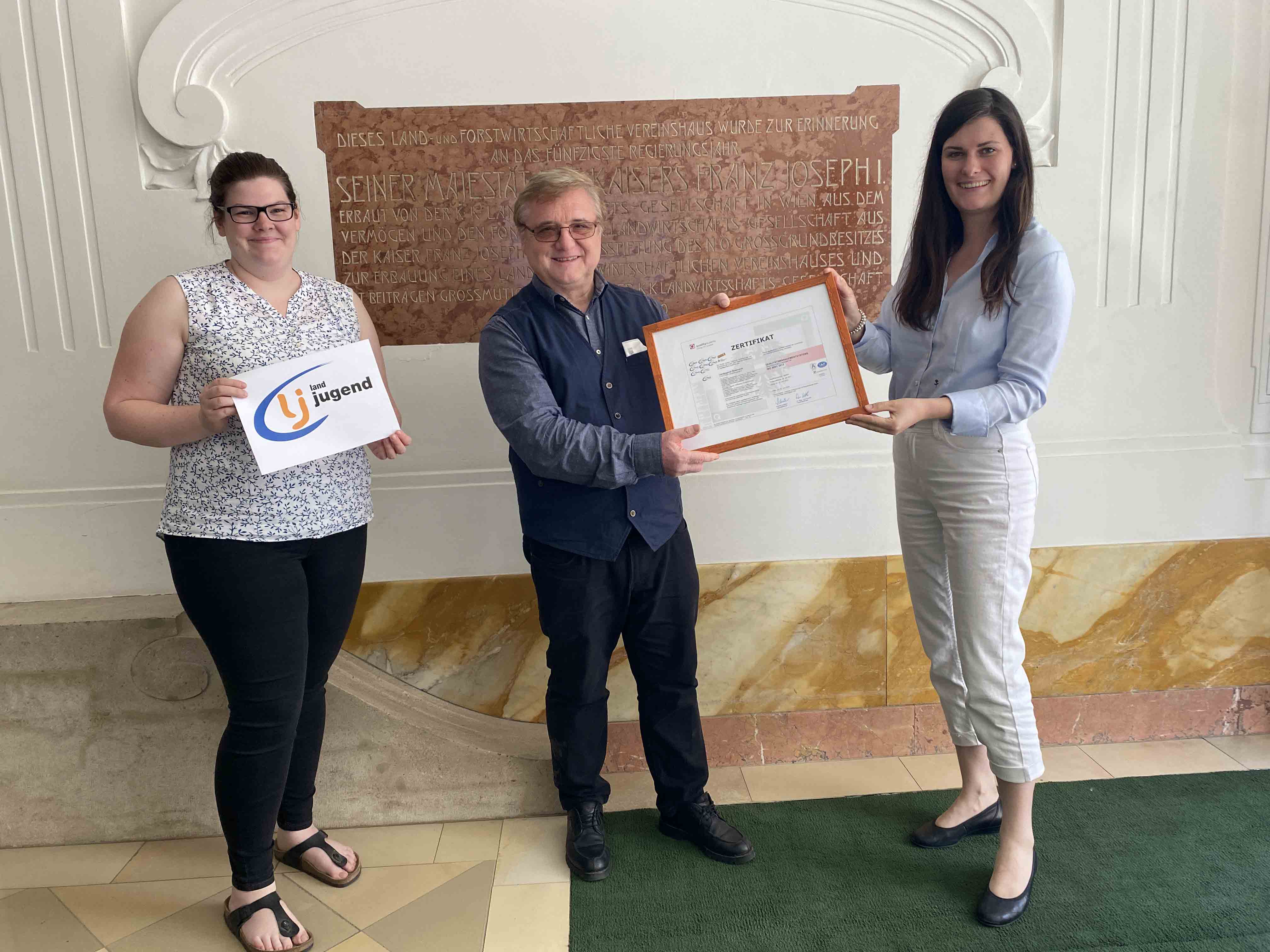 Gleichzeitig wurde auch die Zertifizierung für das "Austria Gütezeichen als österreichischer Musterbetrieb" erfolgreich geprüft. Die Landjugend dokumentiert mit dieser besonderen Auszeichnung, dass sie sich durch ein außerordentliches Leistungsniveau hervorhebt.
