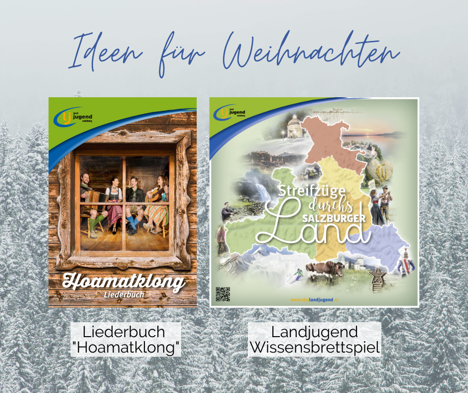 Wer noch auf der Suche nach einem originellen Weihnachtsgeschenk ist, für den ist das Landjugend-Wissensbrettspiel (29,50 Euro) oder das Volksliederbuch (8,00 Euro) genau richtig. Es ist im Landjugendreferat zuzüglich Porto laut Posttarif erhältlich (landjugend@lk-salzburg.at, 0662/641248-371 oder online unter www.sbglandjugend.at). Nach dem Eingang der Bestellung wird das Paktet so bald als möglich verpackt und gemeinsam mit der Rechnung versendet.