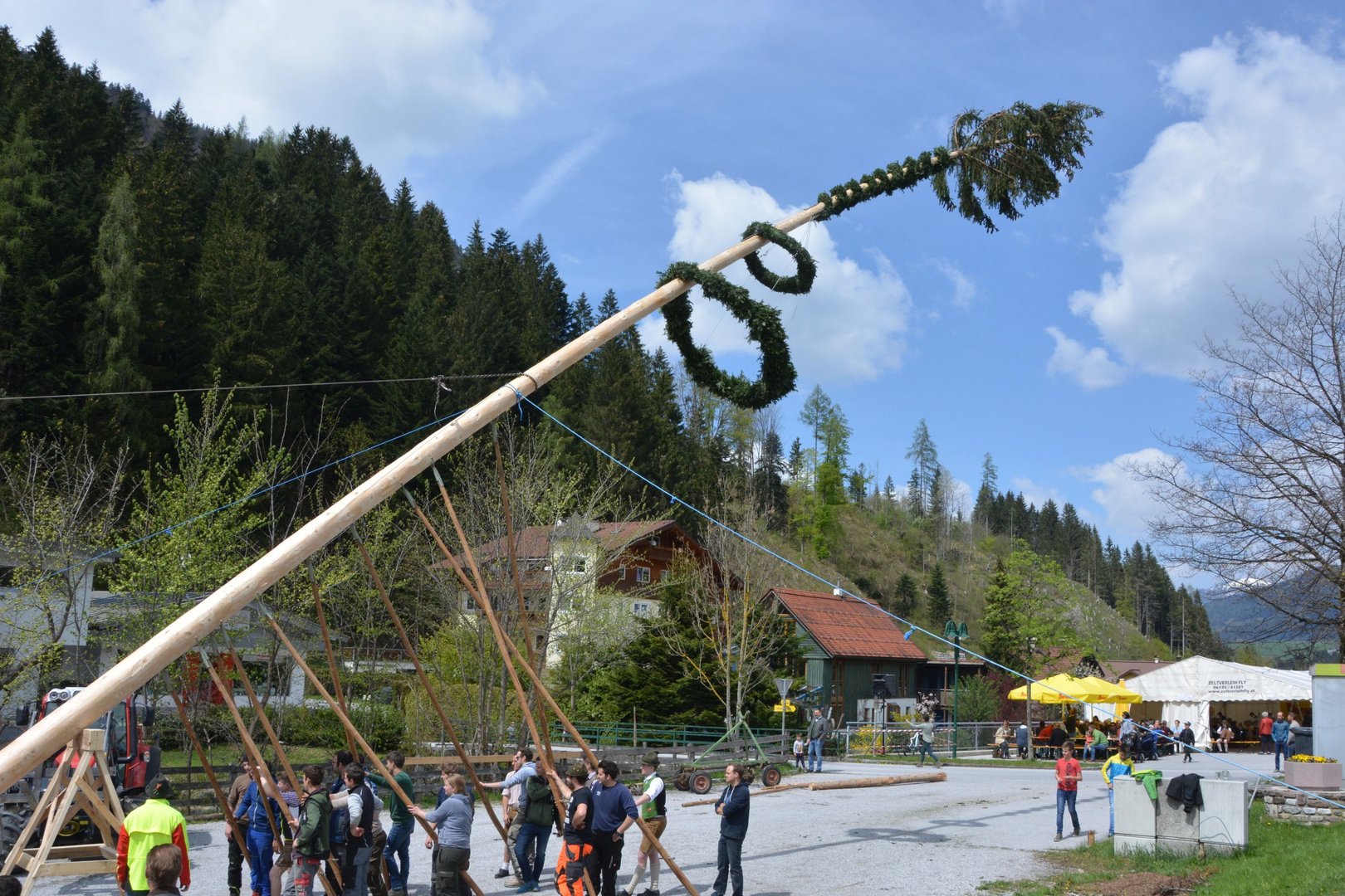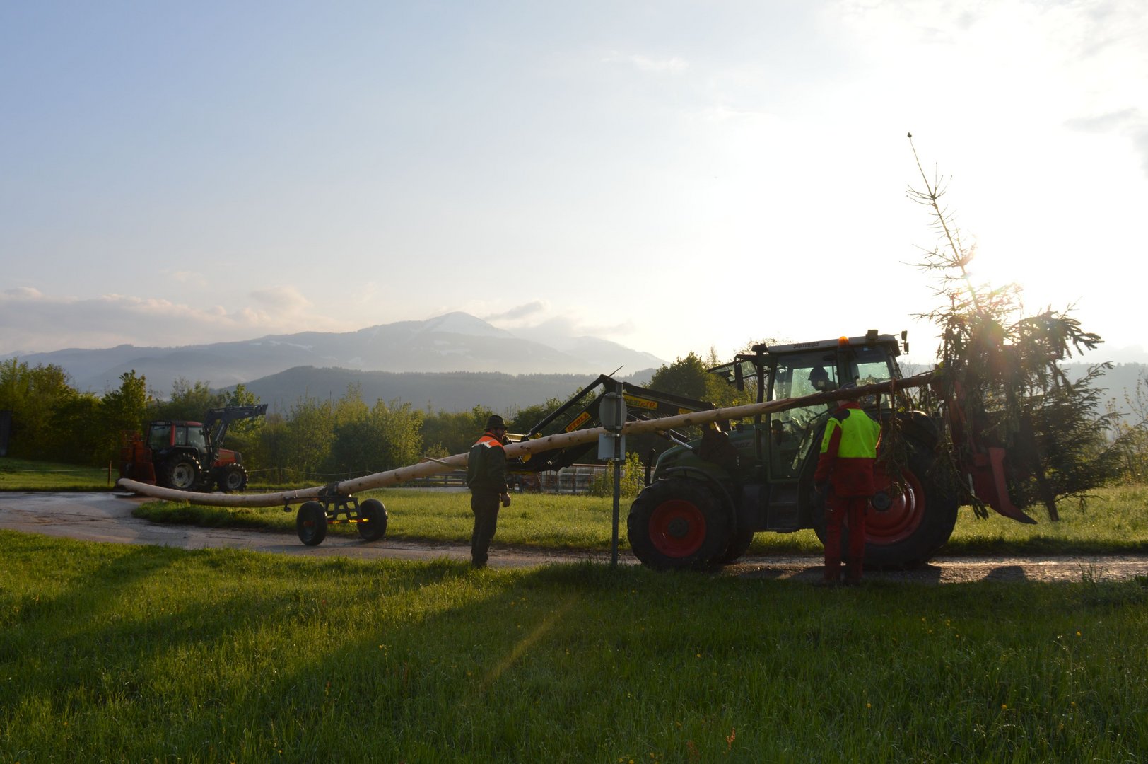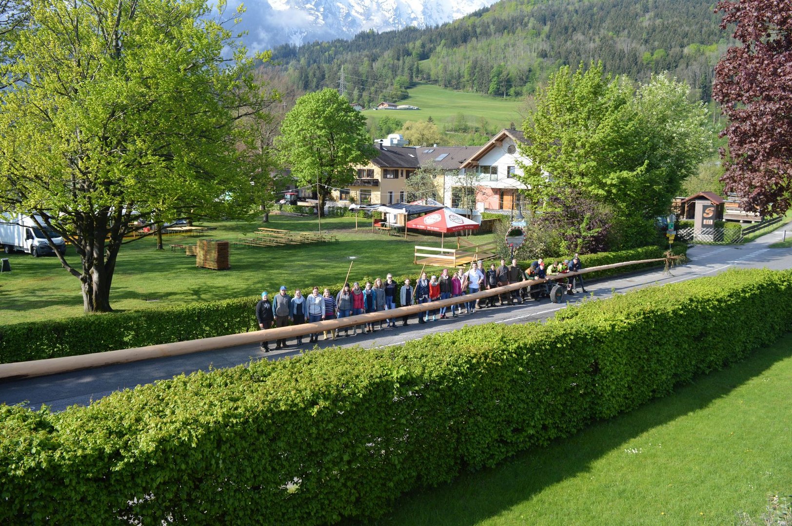 Ein Fest und Spektakel für Jedermann – das Maibaumaufstellen. Vielerorts zeigt sich dafür die Landjugend verantwortlich. Das Aufstellen des geschmückten Baumes hat eine lange Tradition und soll sichtbares Sinnbild für Liebe, Fruchtbarkeit, Leben und Wachstum sein. Die Geschichte des Maibaums geht lange in die Vergangenheit zurück. Historisch gesehen bedeutete früher das Aufstellen des Maibaums ein Betretungsverbot auf landwirtschaftliche Flächen. Ab diesen Zeitpunkt durfte das Wachstum auf Feldern und Wiesen nicht mehr gestört und die Flächen somit auch nicht mehr betreten werden. Das Fest, so wie wir es heute kennen, ist höchstwahrscheinlich im 19. Jahrhundert entstanden. Seither wird der Maibaum fast überall als Symbol des Wachstums und des Frühlings verstanden. Er soll anzeigen, dass die fruchtbare Zeit des Jahres angebrochen ist. Ist ein geeigneter Baum, meist eine Fichte, als Maibaum gefunden, wird dieser gefällt und entrindet. Kränze werden gebunden, Girlanden am Baumwipfel befestigt und der Stamm oftmals auch bemalt. Direkt vor dem Aufstellen wir der Baum je nach Region in einer Prozession zum vorgesehenen Platz gefahren. Dort beginnt das eigentliche Spektakel. Mit Hilfe langer Stangen und Muskelkraft wird der Baum Etappe für Etappe in die Höhe gestemmt. Die Stangen sind am oberen Ende mit einem Seil zusammengebunden, in dem der Stamm eingekeilt wird. „Das händische Aufstellen eines Maibaumes erfordert viel Kraft, Fingerspitzengefühl und Ausdauer. Das Kommando gibt der Maibaum-Moar. Er hat Erfahrung mit Holz, ist oftmals von Beruf Zimmermann und hat den Überblick über das Geschehen“, weiß Maria Kreuzer, Gruppenleiterin der Landjugend Hallwang. „Wichtig dabei ist, dass alle Helfer genau auf die Anordnungen des Maibaum-Moars achten, gleichzeitig stemmen und eine Seite nicht mehr als die andere schiebt, damit der Baum nicht schief kommt“, erklärt Maibaum-Moar der Landjugend Annaberg-Lungötz Christian Eder.