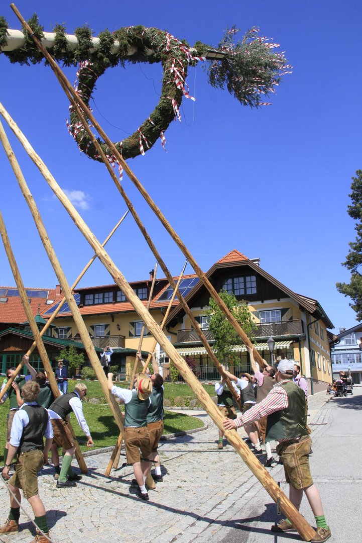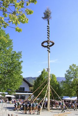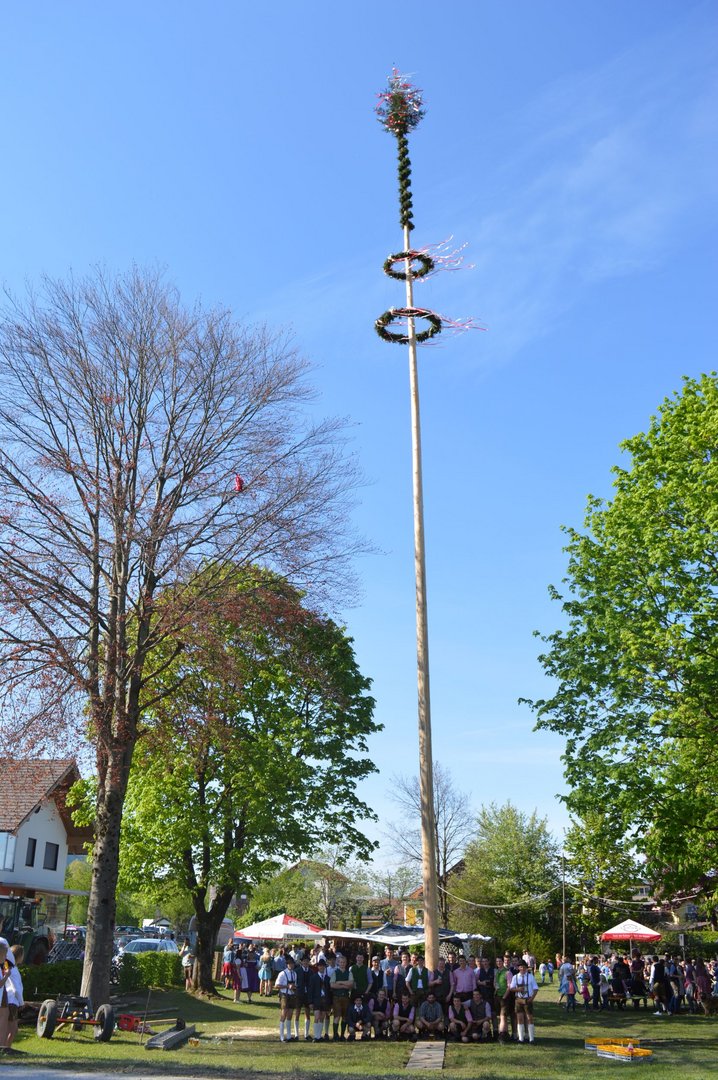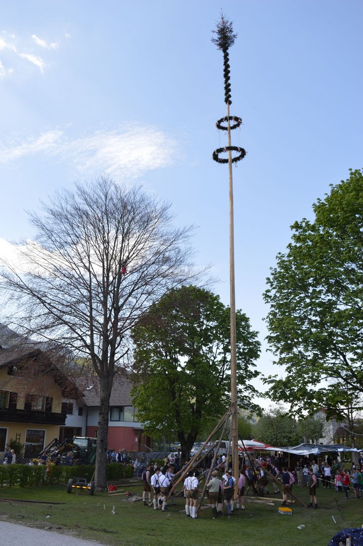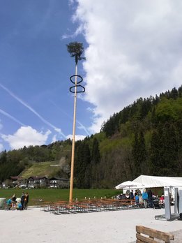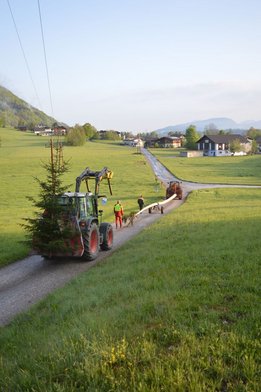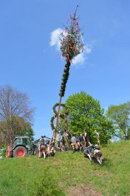 Ein Fest und Spektakel für Jedermann – das Maibaumaufstellen. Vielerorts zeigt sich dafür die Landjugend verantwortlich. Das Aufstellen des geschmückten Baumes hat eine lange Tradition und soll sichtbares Sinnbild für Liebe, Fruchtbarkeit, Leben und Wachstum sein. Die Geschichte des Maibaums geht lange in die Vergangenheit zurück. Historisch gesehen bedeutete früher das Aufstellen des Maibaums ein Betretungsverbot auf landwirtschaftliche Flächen. Ab diesen Zeitpunkt durfte das Wachstum auf Feldern und Wiesen nicht mehr gestört und die Flächen somit auch nicht mehr betreten werden. Das Fest, so wie wir es heute kennen, ist höchstwahrscheinlich im 19. Jahrhundert entstanden. Seither wird der Maibaum fast überall als Symbol des Wachstums und des Frühlings verstanden. Er soll anzeigen, dass die fruchtbare Zeit des Jahres angebrochen ist. Ist ein geeigneter Baum, meist eine Fichte, als Maibaum gefunden, wird dieser gefällt und entrindet. Kränze werden gebunden, Girlanden am Baumwipfel befestigt und der Stamm oftmals auch bemalt. Direkt vor dem Aufstellen wir der Baum je nach Region in einer Prozession zum vorgesehenen Platz gefahren. Dort beginnt das eigentliche Spektakel. Mit Hilfe langer Stangen und Muskelkraft wird der Baum Etappe für Etappe in die Höhe gestemmt. Die Stangen sind am oberen Ende mit einem Seil zusammengebunden, in dem der Stamm eingekeilt wird. „Das händische Aufstellen eines Maibaumes erfordert viel Kraft, Fingerspitzengefühl und Ausdauer. Das Kommando gibt der Maibaum-Moar. Er hat Erfahrung mit Holz, ist oftmals von Beruf Zimmermann und hat den Überblick über das Geschehen“, weiß Maria Kreuzer, Gruppenleiterin der Landjugend Hallwang. „Wichtig dabei ist, dass alle Helfer genau auf die Anordnungen des Maibaum-Moars achten, gleichzeitig stemmen und eine Seite nicht mehr als die andere schiebt, damit der Baum nicht schief kommt“, erklärt Maibaum-Moar der Landjugend Annaberg-Lungötz Christian Eder.