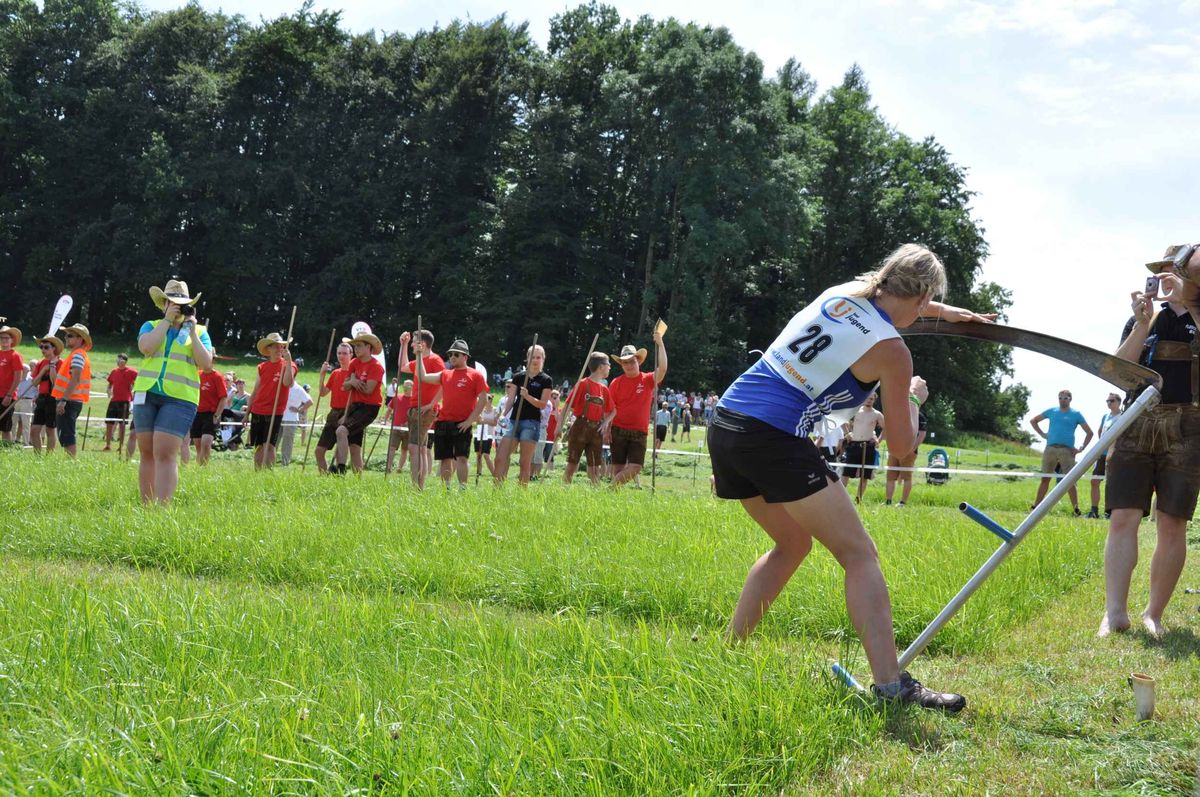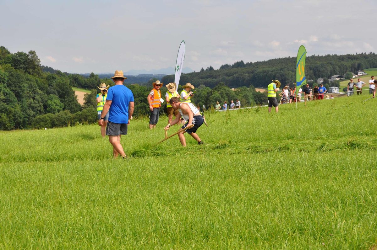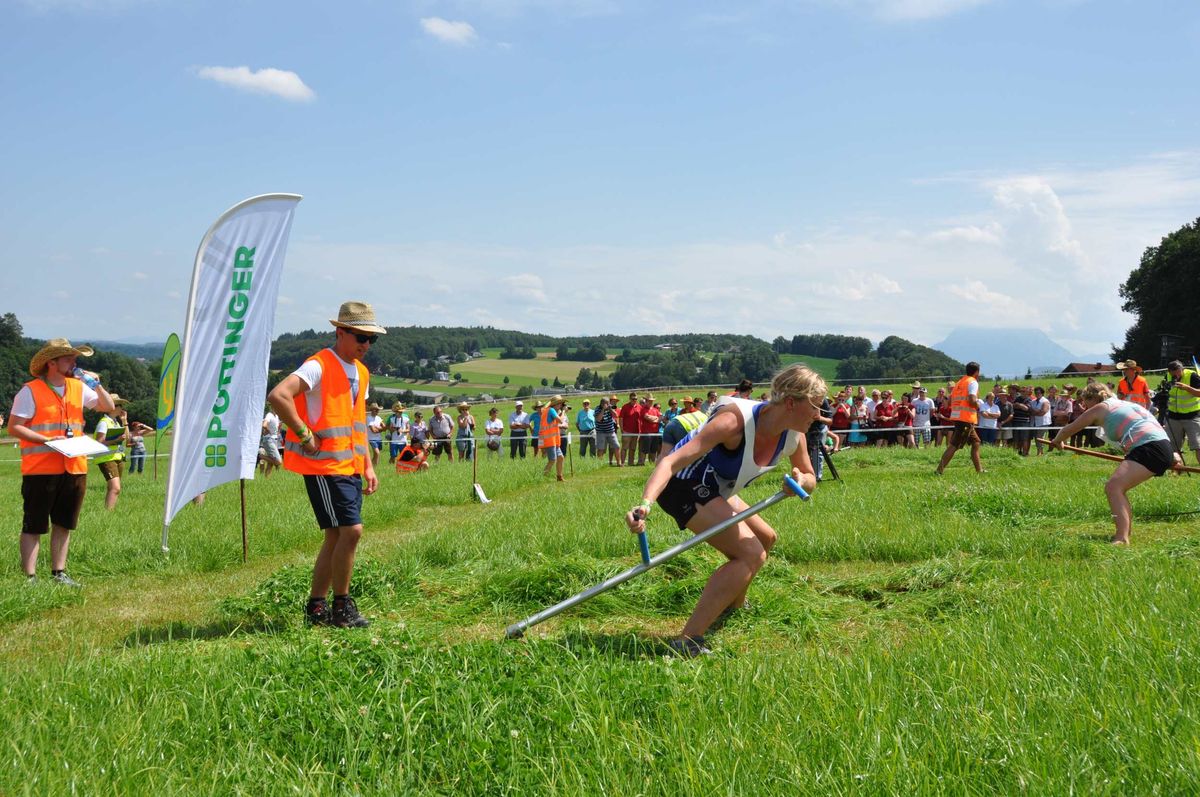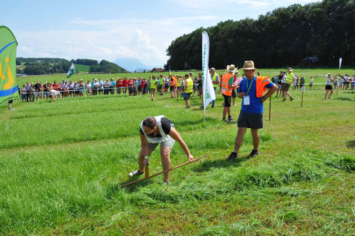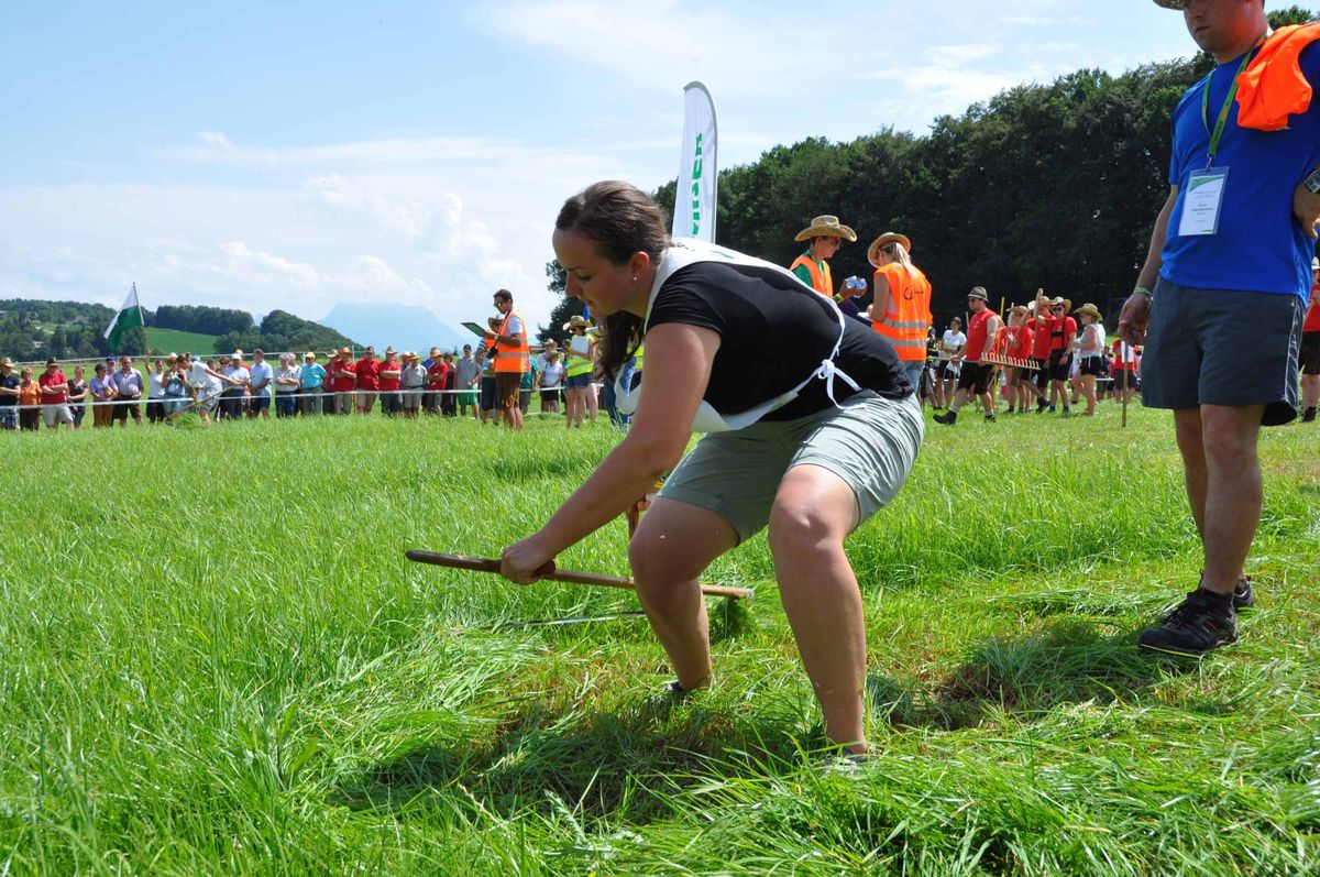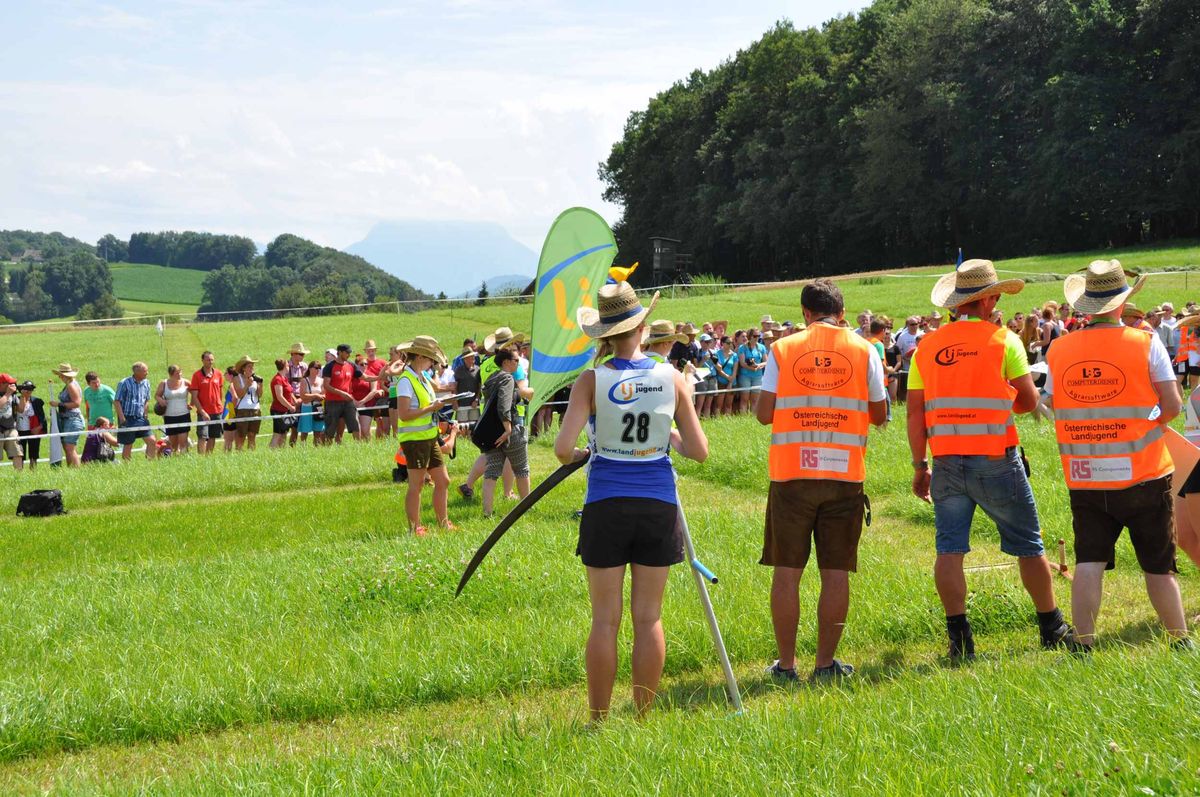 Von 22. – 23. Juli 2016 fand der Bundeswettbewerb im Handmähen in Vöcklabruck in Oberösterreich statt. Das Salzburger Mäherteam konnte dabei mit zwei Bronzemedaillen und dem Vizebundesmeistertitel in der Profi-Damenklasse aufzeigen. Über 70 TeilnehmerInnen aus ganz Österreich kämpften in sechs Kategorien um Edelmetall. Das Team Salzburg belegte in der Teamwertung hinter Oberösterreich den zweiten Rang. Silber für Elisabeth Schilcher aus Köstendorf Vöcklabruck. Über 30 Grad und hohe Luftfeuchtigkeit machten die Bedingungen für die TeilnehmerInnen des diesjährigen Bundesentscheides nicht gerade einfach. „Wenn es so warm ist und der Bewuchs komplett trocken ist, dann ist es richtig schwer zu mähen. Da braucht man eine extra gute Schneid“, so Elisabeth Schilcher aus Köstendorf. Aus Salzburger Sicht kam sie mit den Bedingungen am besten zu recht. In eindrucksvoller Manier und einer Zeit von einer Minute und sieben Sekunden für 35 Quadratmeter eroberte sie den Vizebundesmeistertitel in der Kategorie Profiklasse. In dieser Klasse kann die Sensenblattlänge frei gewählt werden. Bei Schilcher beträgt diese 125 cm. Den Sieg holte sich Viktoria Fritz aus der Steiermark.