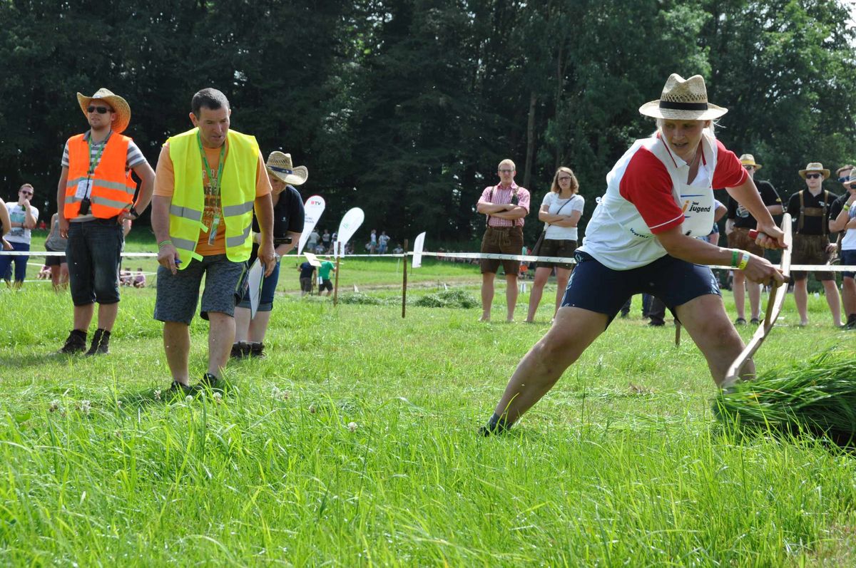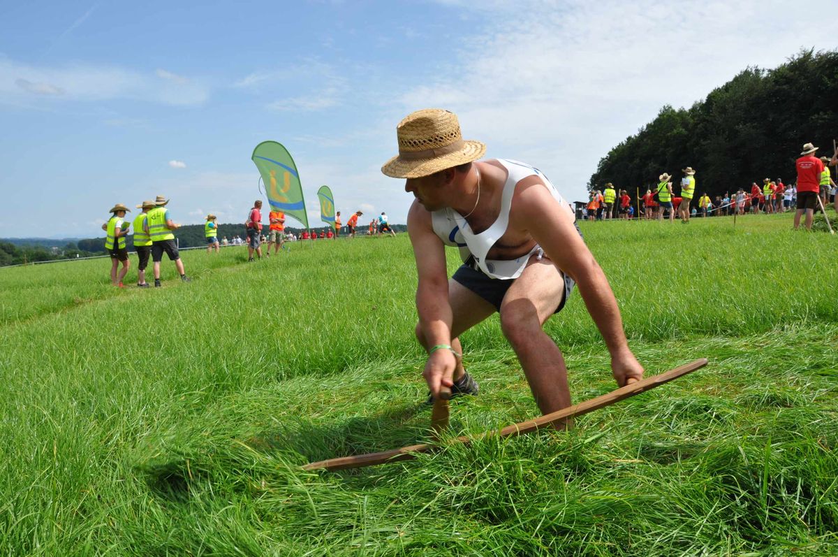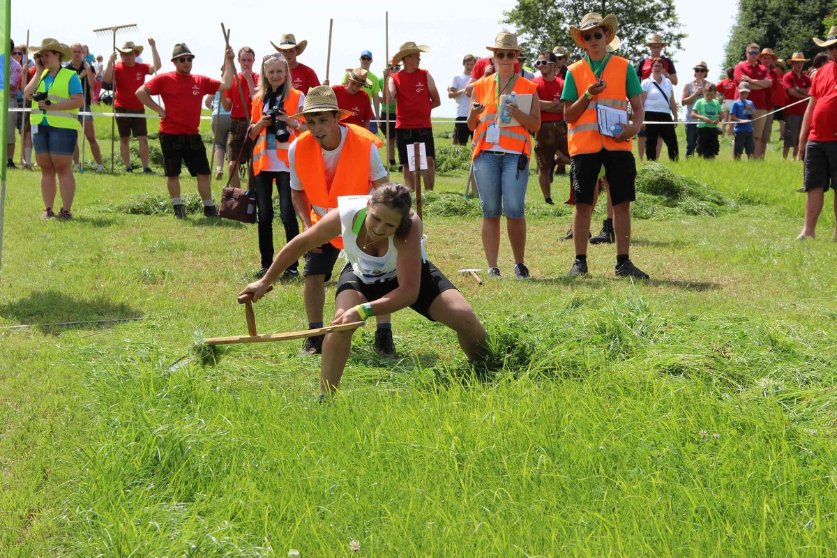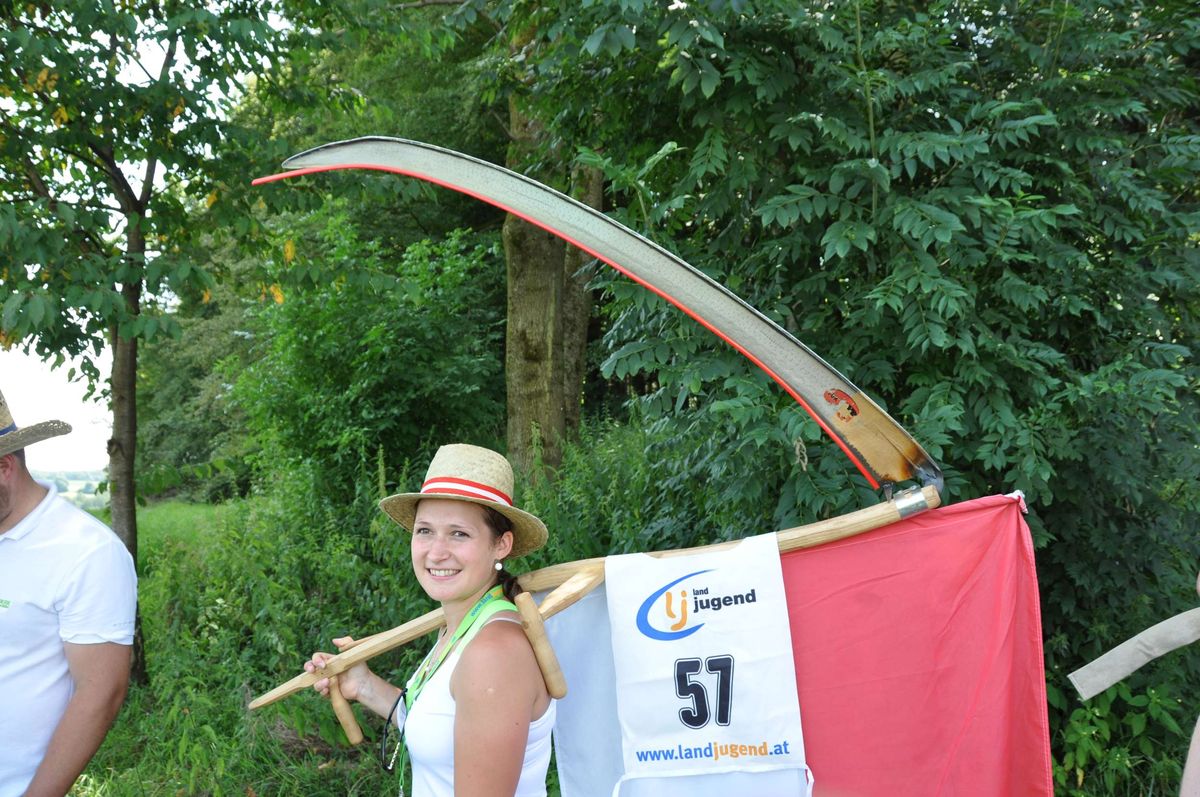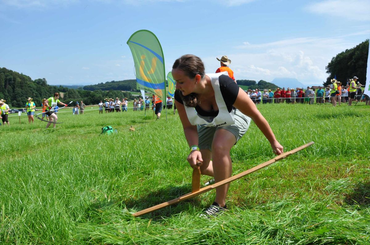 Von 22. – 23. Juli 2016 fand der Bundeswettbewerb im Handmähen in Vöcklabruck in Oberösterreich statt. Das Salzburger Mäherteam konnte dabei mit zwei Bronzemedaillen und dem Vizebundesmeistertitel in der Profi-Damenklasse aufzeigen. Über 70 TeilnehmerInnen aus ganz Österreich kämpften in sechs Kategorien um Edelmetall. Das Team Salzburg belegte in der Teamwertung hinter Oberösterreich den zweiten Rang. Silber für Elisabeth Schilcher aus Köstendorf Vöcklabruck. Über 30 Grad und hohe Luftfeuchtigkeit machten die Bedingungen für die TeilnehmerInnen des diesjährigen Bundesentscheides nicht gerade einfach. „Wenn es so warm ist und der Bewuchs komplett trocken ist, dann ist es richtig schwer zu mähen. Da braucht man eine extra gute Schneid“, so Elisabeth Schilcher aus Köstendorf. Aus Salzburger Sicht kam sie mit den Bedingungen am besten zu recht. In eindrucksvoller Manier und einer Zeit von einer Minute und sieben Sekunden für 35 Quadratmeter eroberte sie den Vizebundesmeistertitel in der Kategorie Profiklasse. In dieser Klasse kann die Sensenblattlänge frei gewählt werden. Bei Schilcher beträgt diese 125 cm. Den Sieg holte sich Viktoria Fritz aus der Steiermark.