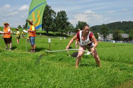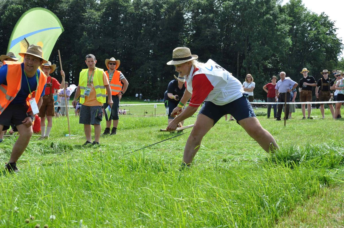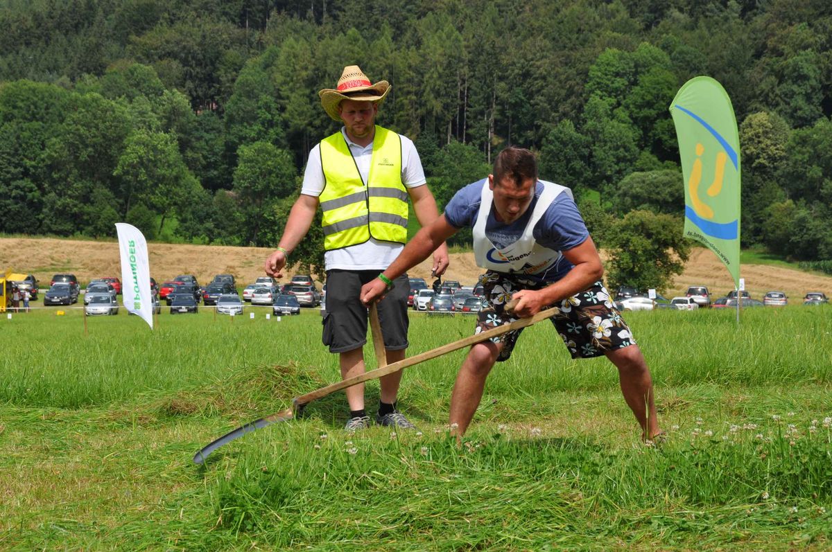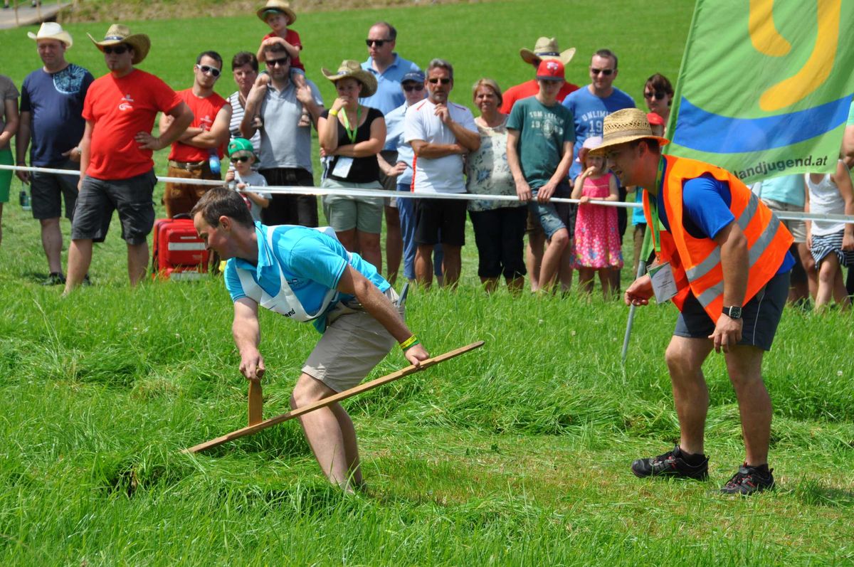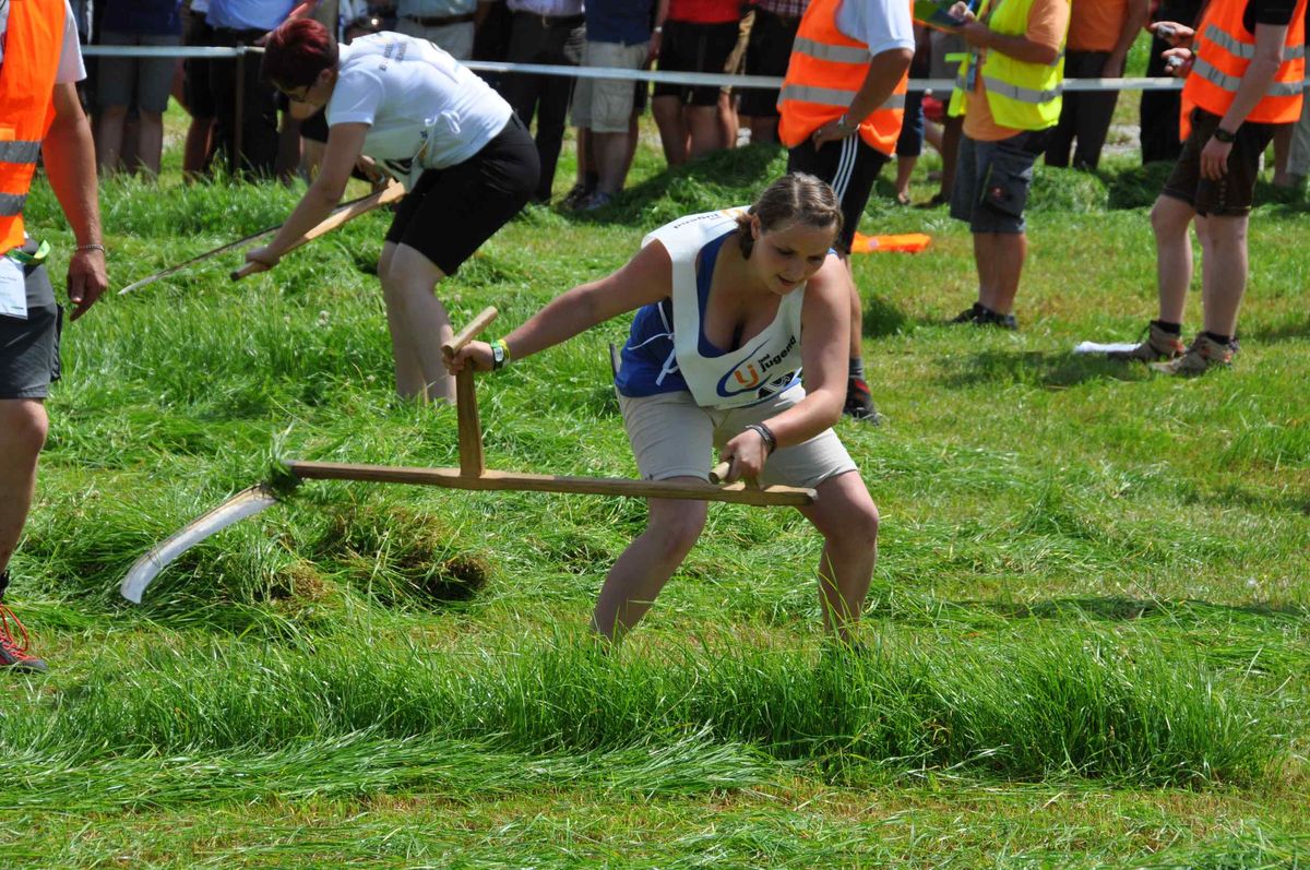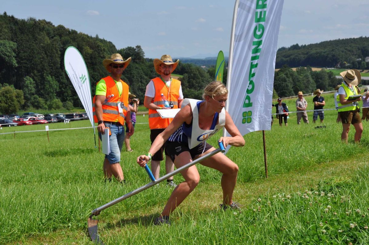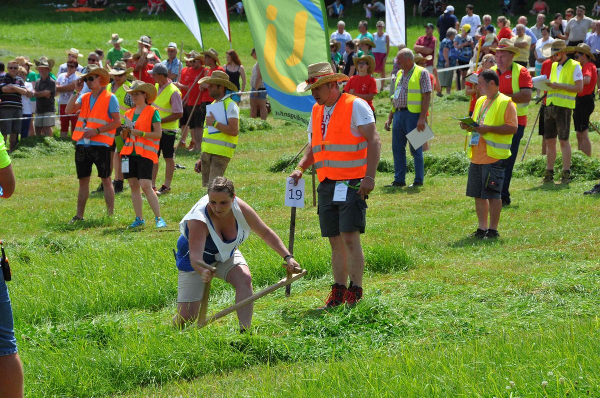 Von 22. – 23. Juli 2016 fand der Bundeswettbewerb im Handmähen in Vöcklabruck in Oberösterreich statt. Das Salzburger Mäherteam konnte dabei mit zwei Bronzemedaillen und dem Vizebundesmeistertitel in der Profi-Damenklasse aufzeigen. Über 70 TeilnehmerInnen aus ganz Österreich kämpften in sechs Kategorien um Edelmetall. Das Team Salzburg belegte in der Teamwertung hinter Oberösterreich den zweiten Rang. Silber für Elisabeth Schilcher aus Köstendorf Vöcklabruck. Über 30 Grad und hohe Luftfeuchtigkeit machten die Bedingungen für die TeilnehmerInnen des diesjährigen Bundesentscheides nicht gerade einfach. „Wenn es so warm ist und der Bewuchs komplett trocken ist, dann ist es richtig schwer zu mähen. Da braucht man eine extra gute Schneid“, so Elisabeth Schilcher aus Köstendorf. Aus Salzburger Sicht kam sie mit den Bedingungen am besten zu recht. In eindrucksvoller Manier und einer Zeit von einer Minute und sieben Sekunden für 35 Quadratmeter eroberte sie den Vizebundesmeistertitel in der Kategorie Profiklasse. In dieser Klasse kann die Sensenblattlänge frei gewählt werden. Bei Schilcher beträgt diese 125 cm. Den Sieg holte sich Viktoria Fritz aus der Steiermark.