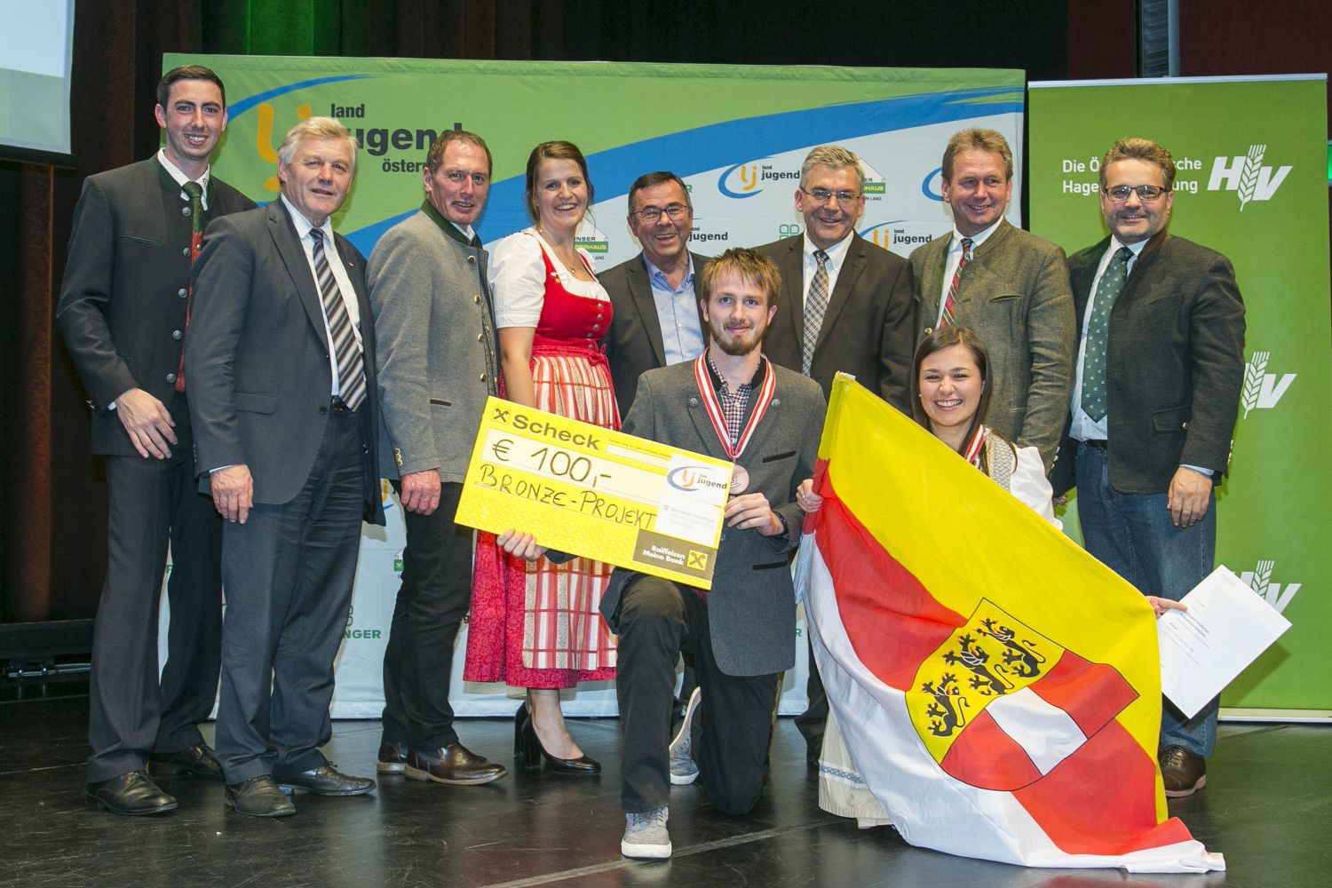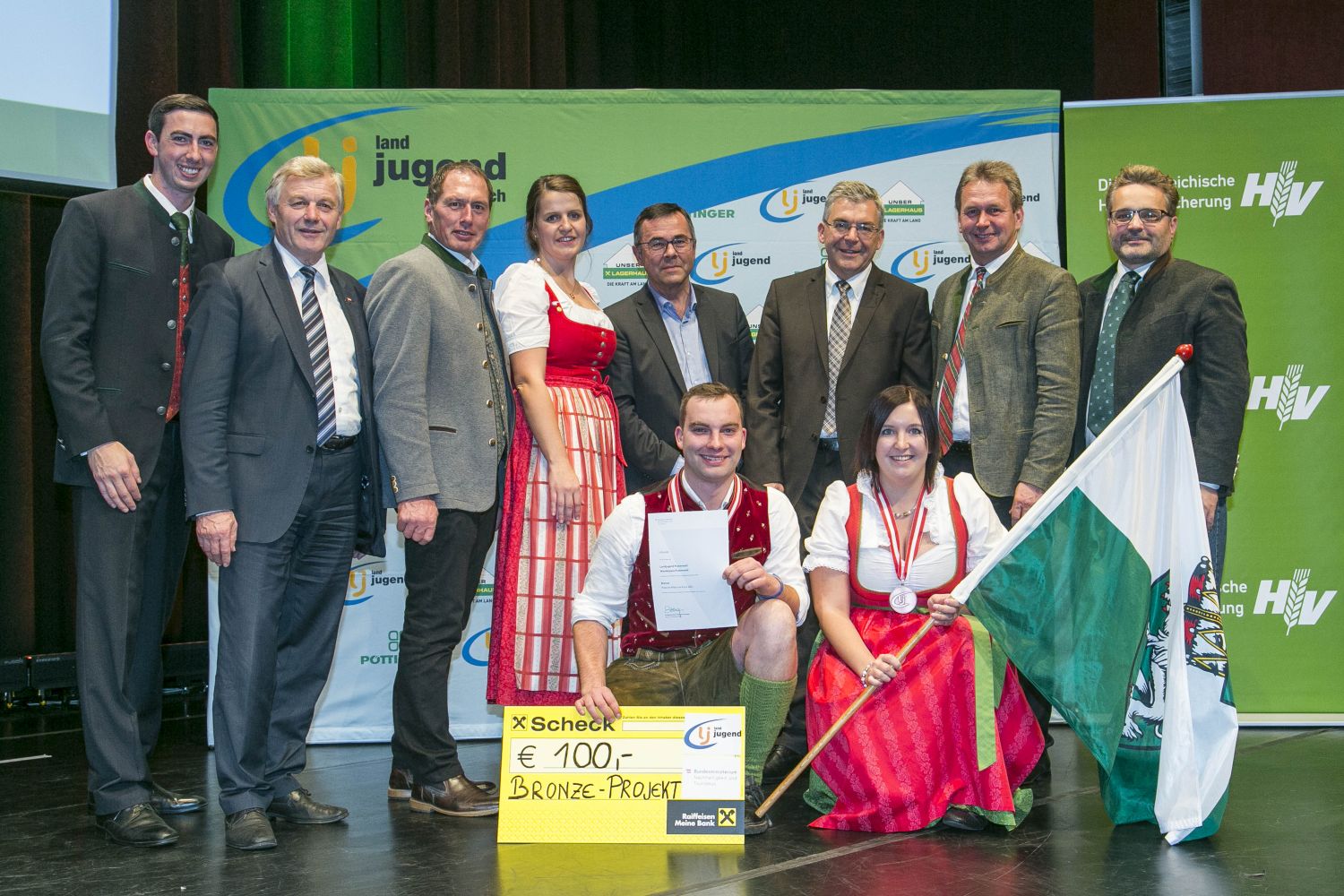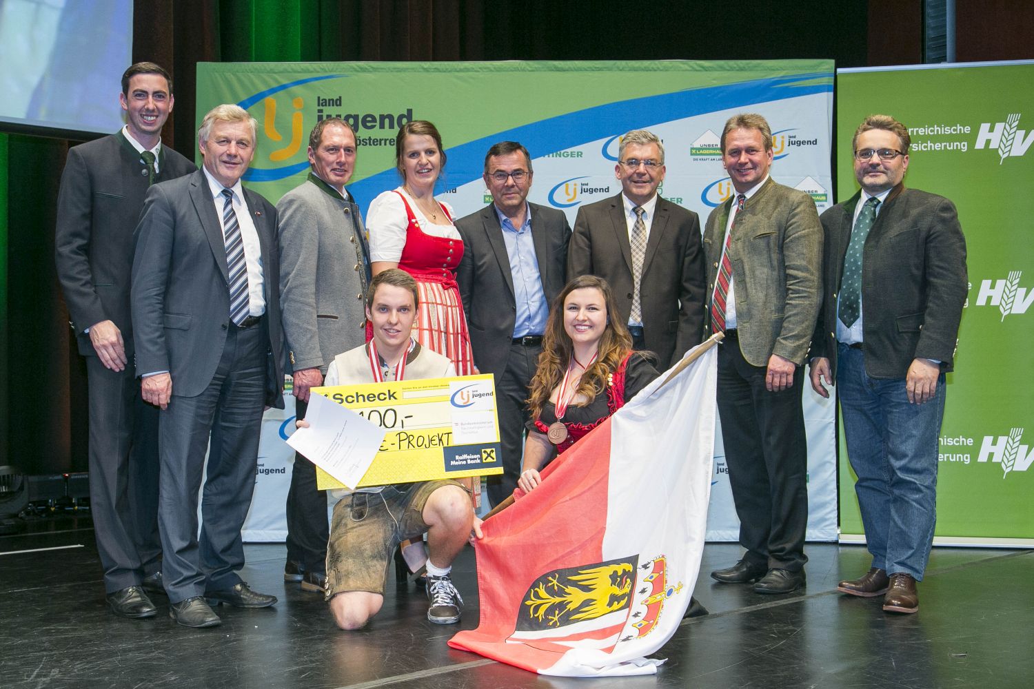 „Wir achteten bei unserem Projekt ‚Auch mit Beeinträchtigung kreativ und hoch zu Ross‘ besonders auf die Sensibilisierung der Grobmotorik, das Einsetzen des Fingerspitzengefühls und auf das Miteinander der Kinder“, erzählt Projektleiterin Selina Schönhart. Die Landjugend Pfarrwerfen veranstaltete im Rahmen des integrativen Feriencamps mit knapp 40 Kindern mit und ohne Beeinträchtigung einen Tag voller Spaß, Action und Freude. „Bauernhöfe im Wandel der Zeit“ – so lautete der Projekttitel der Landjugend Uttendorf. Über 160 Landwirtschaften in Uttendorf und Niedernsill wurden unter die Lupe genommen. Anhand von Textmaterial und Bildern wurde ein Buch über die Veränderungen der Betriebe im Laufe der Zeit konzipiert. „Das Buch dient zum Ideenaustausch, zum Verwirklichen von Plänen mit Hilfe von anderen Blickwinkeln und zum in Erinnerung schwelgen von vergangenen Zeiten“, erzählt Projektleiterin Alexandra Manzl. Der Erlös aus den verkauften Exemplaren kommt bedürftigen Familien zugute. Unter den zahlreichen Ehrengäste folgte auch Landesrat Josef Schwaiger der Einladung zur Bundesprojektprämierung. Die Ergebnisse des Abends sorgten bei dem Agrarlandesrat für große Begeisterung. „Kaum eine Organisation verkörpert Zusammenhalt besser als die Landjugend. Man kann sie durchaus als Herz und Kreislauf der Jugend in den ländlichen Regionen bezeichnen. Wenn ich mir anschaue mit welchem Engagement die Landjungend ihre Mitglieder auf die Herausforderungen des Lebens vorbereitet mache ich mir um die Entwicklung des ländlichen Raumes keine Sorgen. Ihr zeigt, dass der ländliche Raum in Salzburg lebendig ist. Dort wo ihr engagiert seid, lebe ich sehr gerne“, so Schwaiger. „Wir sind wirklich stolz auf unsere 65 Orts- und Bezirksgruppen. Mit den unzähligen Projekten, die jährlich von den Landjugendgruppen umgesetzt werden, zeigen wir, dass die Jugend in den einzelnen Gemeinden Großartiges bewirken kann“, freut sich die Landesleitung Johanna Schafflinger und Maximilian Brugger über die Erfolge.