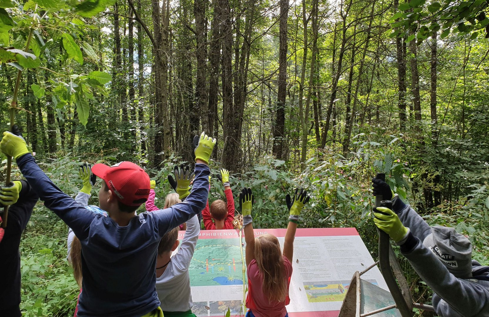 Bronze für Lamprechtshausen, Piesendorf und Rauris Die Landjugend Lamprechtshausen veranstaltete einen Kinder-Radwandertag. Fast 100 TeilnehmerInnen nahmen das kostenlose Angebot mit Begeisterung an. Bei vier Stationen wurde neben Geschicklichkeit und Bewegung auch das Wissen über die eigene Gemeinde verbessert. „Nachhaltigkeit und Umweltschutz an die nächste Generation vermitteln, das war das Ziel unseres Nachmittages in der Nössling-Au“, erzählt Projektleiter Thomas Hofer der Landjugend Piesendorf. Gemeinsam mit Volksschulkindern wurden Flächen vom indischen Springkraut befreit, Müll gesammelt und richtig entsorgt, Nistkästen aufgehängt und bestehende Schilder zum Artenreichtum besprochen. Damit das Gesagte nicht vergessen wird, bekamen die Kinder Unterlagen mit nach Hause.