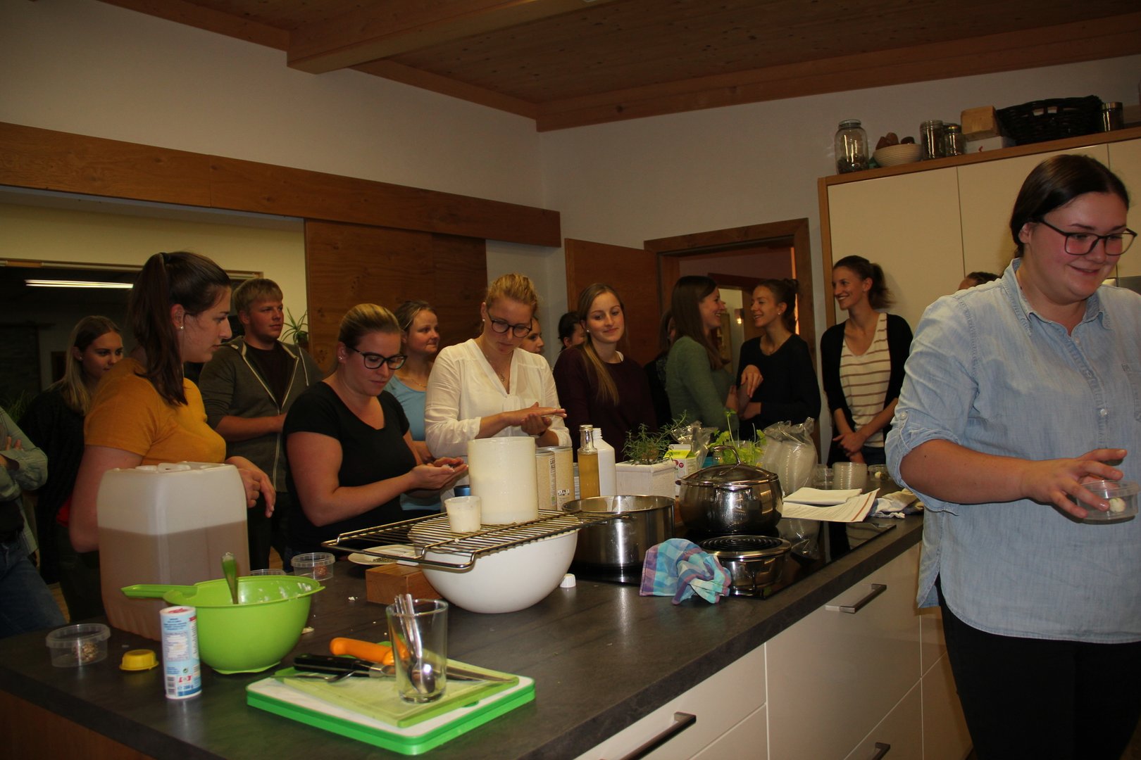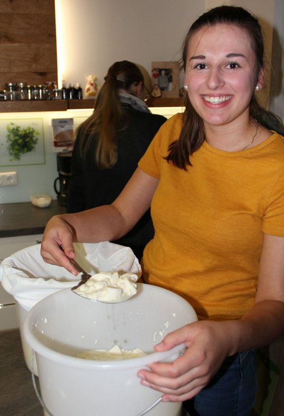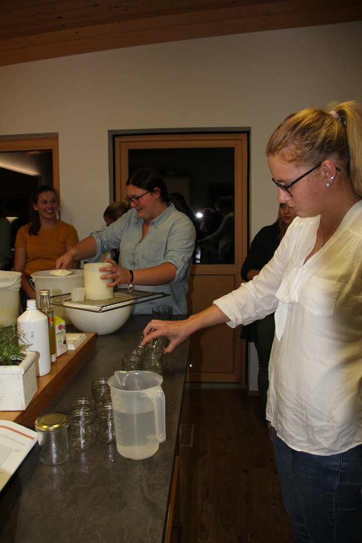 Am Donnerstag dem 17. Oktober 2019 fand am Mühlhof in Bad Hofgastein ein Kurs zur Milchverarbeitung für den Hausgebrauch statt. Bei dem 3-stündigen Kurs lernten die insgesamt 16 Teilnehmer der Landjugend Bezirk Pongau-Tennengau das Nahrungsmittel Milch und dessen vielfältige Verarbeitungsmöglichkeiten genauer kennen. „Milch ist eines der wertvollsten Lebensmittel die auf unseren Bauernhöfen erzeugt werden. Sie ist ein absolut unverzichtbarer Bestandteil in unserer Ernährung und mit ihren wertvollen Inhaltsstoffen eine große Bereicherung für unseren Speiseplan”, eröffnete Referentin und Seminarbäuerin Heidi Huber den Milchverarbeitungskurs. Zu Beginn des Kurses wurden allgemein der Rohstoff Milch und dessen Inhaltsstoffe etwas genauer betrachtet. Das Produkt Milch setzt sich aus Wasser, Milchzucker, Milcheiweiß Milchfett, Vitaminen und Mineralstoffen zusammen. Auch über die Wirkung und Vorteile der einzelnen Inhaltsstoffe wurde kurz gesprochen und - da Milch nicht gleich Milch ist - wurden auch die Begriffe Rohmilch, Frischmilch und ESL Milch geklärt. „Die Herstellung von Milchprodukten für den Hausgebrauch kann nicht mit der Herstellung in Molkereien oder bei Direktvermarktern verglichen werden, dennoch ist es auch bei uns wichtig gewisse Grundsätze zu beachten damit man ein hochwertiges Produkt herstellen kann”, erklärte Heidi Huber.