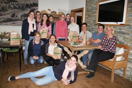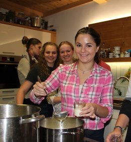 Milch – ein unverzichtbares Lebensmittel seit über 7.500 Jahren Gestartet wurde jeweils mit einer Einführung in die Geschichte der Milchverarbeitung. In Europa wird bereits seit mehr als 7.500 Jahren Milch getrunken. Das Besondere daran ist, dass sich der Mensch erst mit der Zeit angelernt hat, den Milchzucker (Laktose) verdauen zu können. Weiters wurde besprochen, was eigentlich alles aus dem Grundprodukt Milch gemacht werden kann. Nach dem kurzen theoretischen Part starteten die TeilnehmerInnen in den Praxisteil. Grundlage für alle Produkte war Rohmilch, die dann je nach Bedarf pasteurisiert wurde. Möchte man z.B. Topfen herstellen, muss die Milch zunächst auf 22° C bis 26° C erwärmt werden. Zur warmen Milch werden Milchsäurebakterien (Sauermilch) sowie das Lab (Enzym zum Dicken der Milch, ohne dass sie sauer wird) untergemengt. Nach einigen Stunden entstehen eine stichfeste Masse sowie die Molke. „Als nächsten Schritt müssen wir die Molke abschöpfen und die stichfeste Masse (Gallerte) in kleine Stücke schneiden. Die zerkleinerte Gallerte wird nun zum Abtropfen der restlichen Molke in ein Geschirrtuch gegeben. Über Nacht stehen lassen und fertig ist der Topfen“, betonten die Referentinnen die Einfachheit der Milchverarbeitung. Neben dem Topfen wurden auch Butter, Joghurt und Frischkäse zubereitet und zu weiteren Köstlichkeiten wie Frischkäsekugeln im Gewürzmantel verarbeitet. „Es ist sehr spannend, wie vielfältig die Verarbeitungsmöglichkeiten der Milch sind. Wirklich interessant fand ich die Tatsache, dass die Handhabung so einfach ist und sich jeder zu Hause eine Vielzahl von Produkten selbst herstellen kann“, so Stefan Gruber, Bezirksbildungsreferent der Landjugend Bezirk Pinzgau. Als Highlight des Kurses durfte eine kleine Verkostung zum Abschluss nicht fehlen. Auch durfte jede/r Produkte mit nach Hause nehmen. Der Milchverarbeitungskurs ist einer von knapp 100 Kreativkursen der Landjugend Salzburg. In den nächsten Wochen beginnt die intensive Planung für das kommende Jahresprogramm. Neben dem gut etablierten Programm erwarten die Mitglieder und FunktionärInnen einige Neuerungen, auf die man gespannt sein darf.