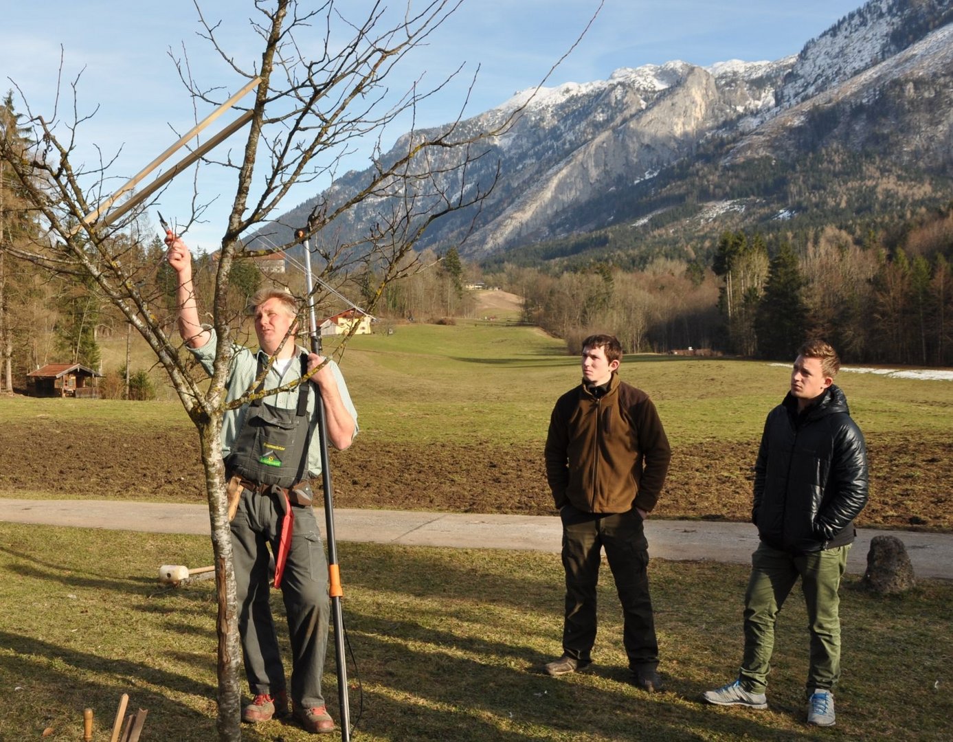 Vielfalt Regionalität – Salzburg und seine Qualität. Unter diesem Jahresschwerpunktthema startete das neue Bildungsprojekt „Altes Handwerk neu erleben“ mit der ersten Workshopreihe. Über 60 Landjugendmitglieder nahmen an den landesweiten Obstbaumschnittkursen teil. Salzburg ist bekannt für seine Traditionen und Bräuche. In jedem Bezirk Salzburgs werden andere regionale Bräuche und handwerkliche Besonderheiten gelebt. Viel Wissen über das alte Handwerk ist leider schon verloren gegangen. Im neu konzipierten Bildungsprojekt „Altes Handwerk neu erleben“ vermitteln ausgewählte Referenten traditionelle Themen. Wann ist der beste Zeitpunkt für den Baumschnitt? Wie werden frisch gesetzte und alte Bäume behandelt? Baumwart Josef Wesenauer, Landesobmann der Obst- und Gartenbvereine, vermittelte bei den landesweiten Obstbaumschnittkursen die Grundlagen des Baumschnitts, Schnitttechniken und Wuchsgesetze. „Josef informierte uns zuerst über die Grundlagen im Obstbau und dem Obstbaumschnitt. Dazu gehören zum Beispiel auch die Wahl der richtigen Sorte und die richtige Pflanzung von jungen Bäumen“, erzählt Landesobmann Stv. Sebastian Feldbacher.
