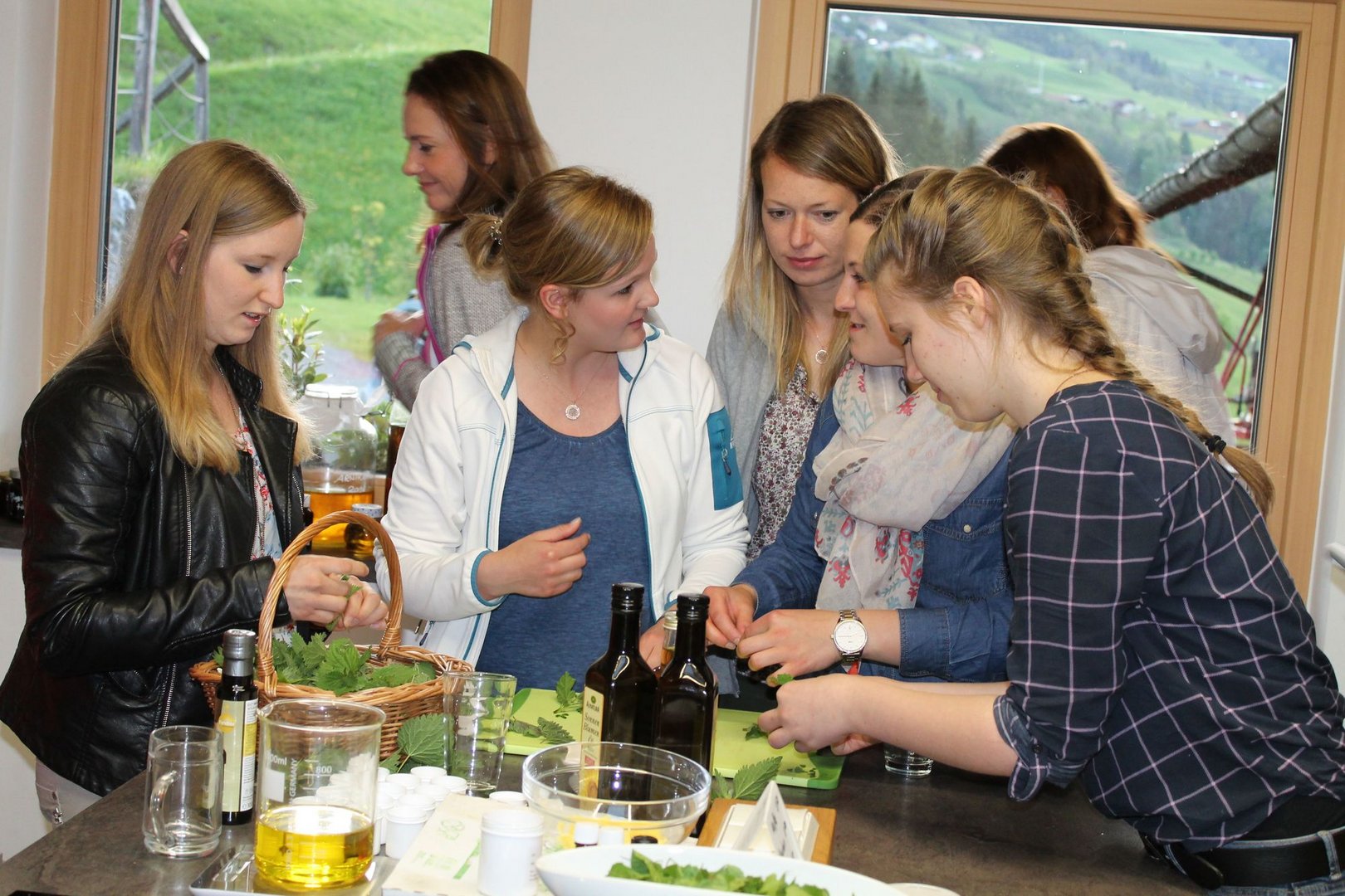 Als „bäuerliche Wildkräuterapotheke“ bezeichnet die begeisterte Kursleiterin die gesammelten Schätze und vermittelt den Wissbegierigen zu allererst den wichtigsten Aspekt: „Nur verwenden, was man auch kennt! Niemals mit unbekannten Kräutern arbeiten!“ Genau deswegen sind Kurse zum Kennenlernen und Erkennen der heimischen Wildkräuter so wichtig und wertvoll. Heidi Huber ist es ein Anliegen das Wissen über alte Hausmittel und deren Anwendung weiterzugeben. „Ich möchte aufzeigen, dass viele wertvolle Kräuter in unserer Umgebung wachsen, meistens genau jene, die wir gerade brauchen und noch dazu zum richtigen Zeitpunkt.“ Im Kurs durfte dann auch noch fleißig gearbeitet werden. So wurde eine Heilsalbe angefertigt, ein Erkältungssalz zubereitet und eine Kräutertinktur angesetzt. Nebenbei erklärte die versierte Kräuterpädagogin die Heilwirkung der Pflanzen auf den Körper. Besonders beeindruckt zeigte sich Landesleiterin-Stv. Christina Deutinger davon, dass direkt in der naheliegenden Natur so viele Heilmittel für alle Lebenslagen zu finden sind: „Sei es für Müdigkeit, Lustlosigkeit, Verletzungen oder verschiedene Krankheitssymptome. Nicht etwa spezielle Pflanzen, sondern vor allem uns heimische und bekannte Gewächse wie z.B. Löwenzahn und Brennnessel, weisen eine vielfältige Heilwirkung auf!“ Für nähere Informationen zu den nächsten Workshops, Datum und Ort stehen die Bezirksbildungs- und Agrarreferenten zur Verfügung. Alle Daten und Kursorte sind auch auf hier zusammengefasst. Das Projekt wird mit Unterstützung von Bund, Land, und Europäischer Union (LEADER) realisiert.