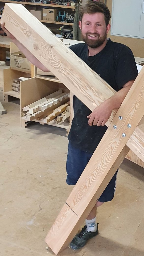 Anfang September wurde es ernst. Die Landjugend schritt zur Tat und fällte die vom Grundbesitzer gespendete Lärche im sogenannten „Mentnaibe“. Der zirka 25 Meter hohe Baum wurde anschließend geschnitten und in der Werkstadt der Firma Wieland Treppenbau in Unternberg abgebunden.