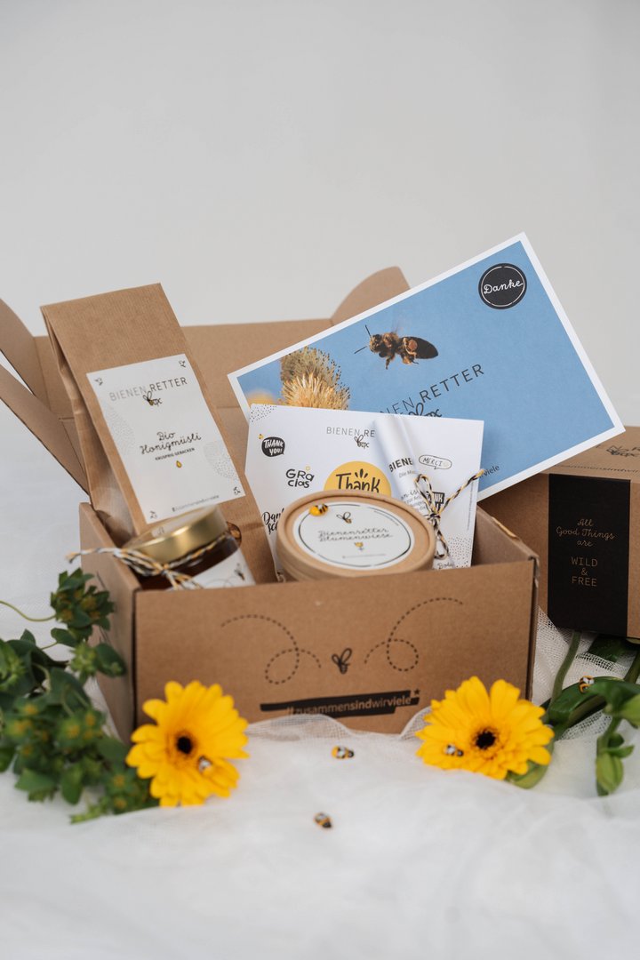 Rechtzeitig zum Weltbienentag 2024 gibt’s die Bienenretter Box nun auch gebrandet als Corporate Gift