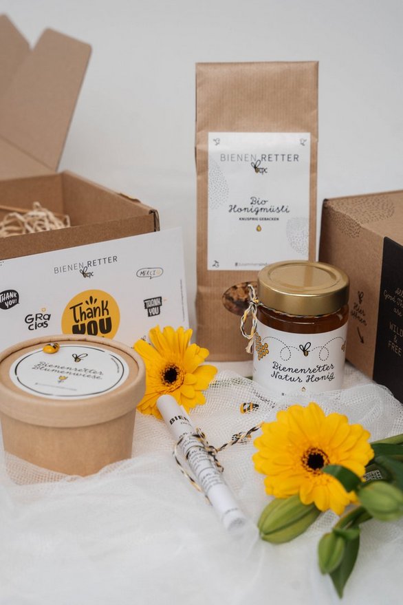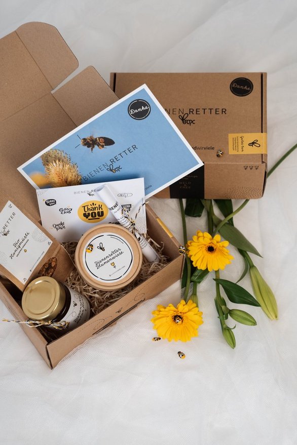 Mit jeder Bienenretter Box wird quasi Zukunft verschenkt – in Form eines Beitrags für den Umweltschutz sowie für soziale Gerechtigkeit. Zudem sind in der Box ausschließlich regionale und ehrliche Produkte enthalten.