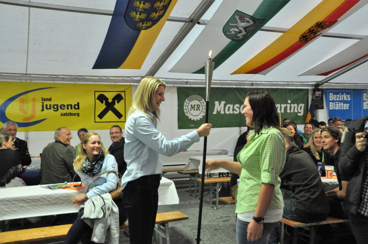 „Mit der Leistung unserer Teams sind wir mehr als zufrieden. Unsere TeilnehmerInnen sind noch relativ jung und trotzdem schon richtige Experten in ihrem Fach“, bilanzierte Landesleiterin Elisabeth Huber die Bundes Agrar- & Genussolympiade aus Salzburger Sicht. Beim anschließenden Siegerfest der Landjugend Bruck wurden die siegreichen Teams gebührend gefeiert. Die „Olympische Fackel“, die im Rahmen der Eröffnungsfeierlichkeit entzündet und von Steiermark an Salzburg übergeben wurde, reichte Landesobmann Maximilian Brugger seinem Kärntner Amtskollegen Herwig Drießler weiter. Dort findet der Bewerb im nächsten Jahr statt.