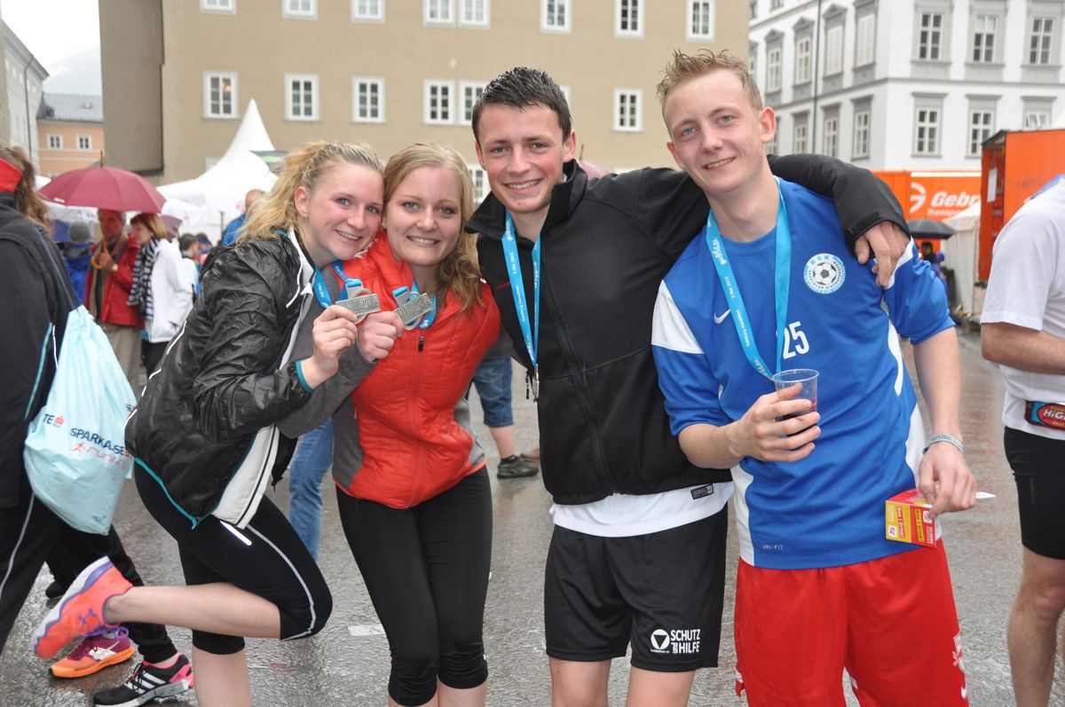Mit dem Start um 8:45 Uhr direkt vor dem Freibad Leopoldskron „Lepi“ eröffnen die 10-Kilometer-Läufer den Marathon-Sonntag in Salzburg. Du läufst dabei die zweite Hälfte der Halbmarathon-Strecke und passierst einige der historischen Schönheiten der Stadt. Immer im Blick hast du die Festung Hohensalzburg, die über die gesamte Distanz die majestätische Kulisse des Salzburger Nachrichten 10K City-Run bildet und durch ihre Nähe zum Ziel einen Ansporn für dich darstellen kann. Die Ziellinie ist identisch mit der der anderen Bewerbe. Als Einzelstarter des Salzburger Nachrichten 10k City-Run wird dir zusätzlich die Möglichkeit geboten, gemeinsam mit Freundinnen und/oder Freunden im Team an den Start zu gehen. Ein Team besteht aus vier Läufer/innen. Besonders reizvoll sind hierbei die gemeinsamen Vorbereitungen und das gemeinsame Loslaufen in Leopoldskron sowie das Wiedersehen im Ziel. Natürlich könnt ihr auch die gesamte Strecke zusammen absolvieren. Denn Laufen in Gesellschaft bringt zusätzliche Motivation und fördert den Teamspirit!